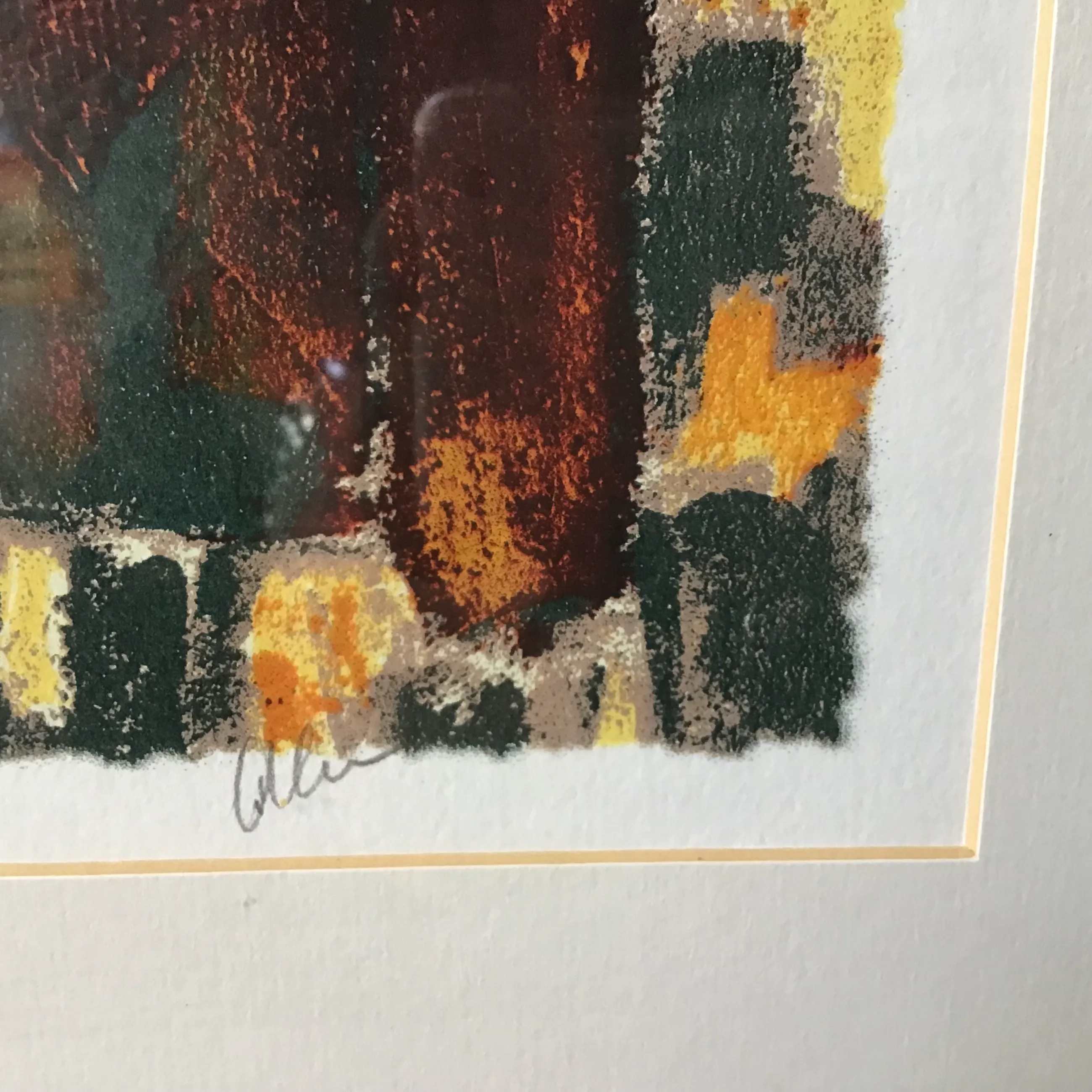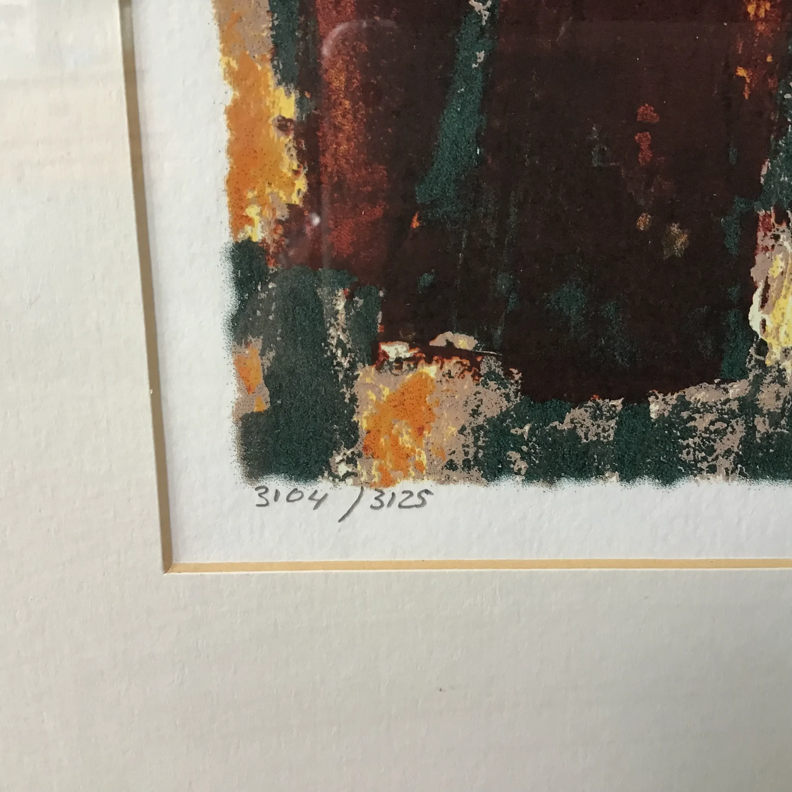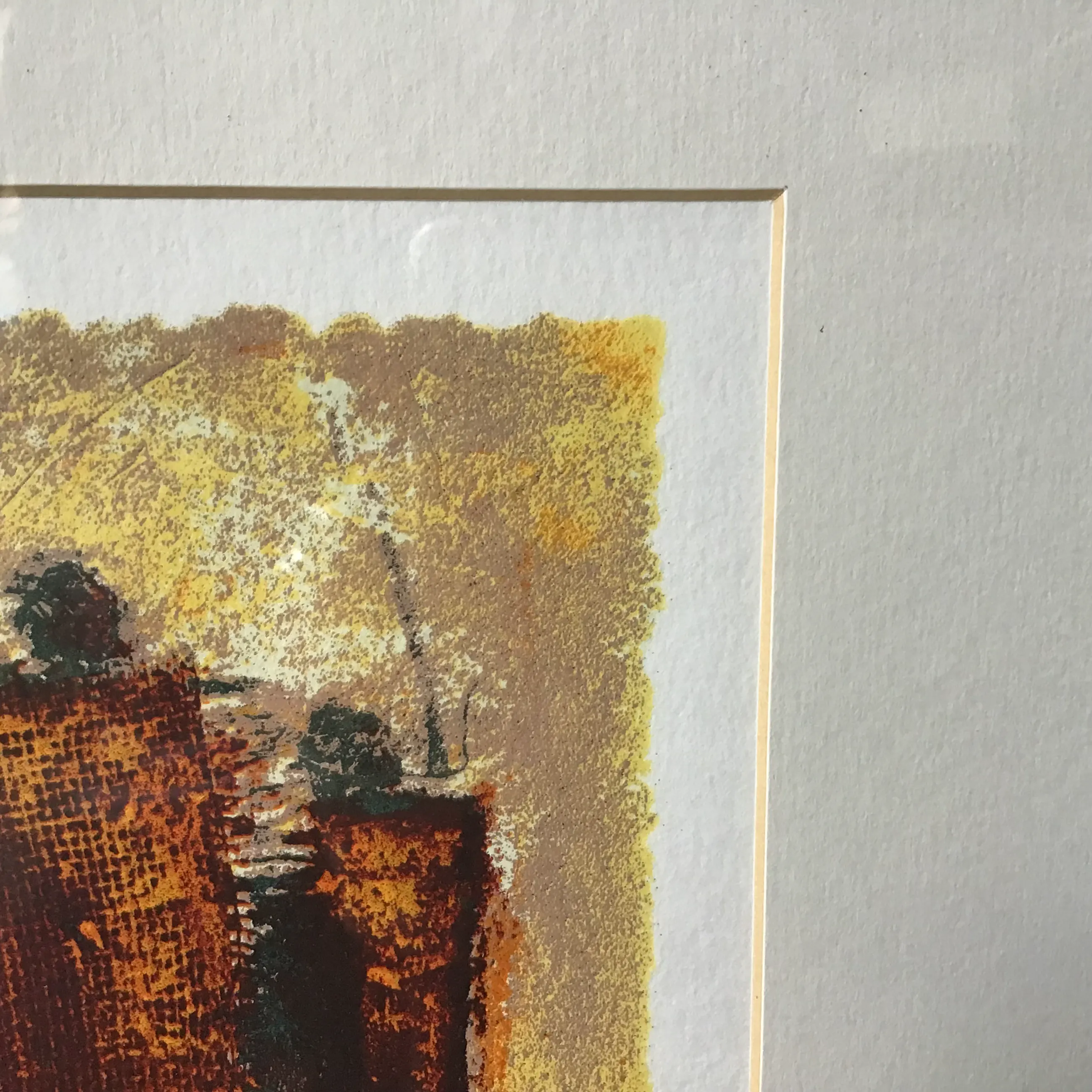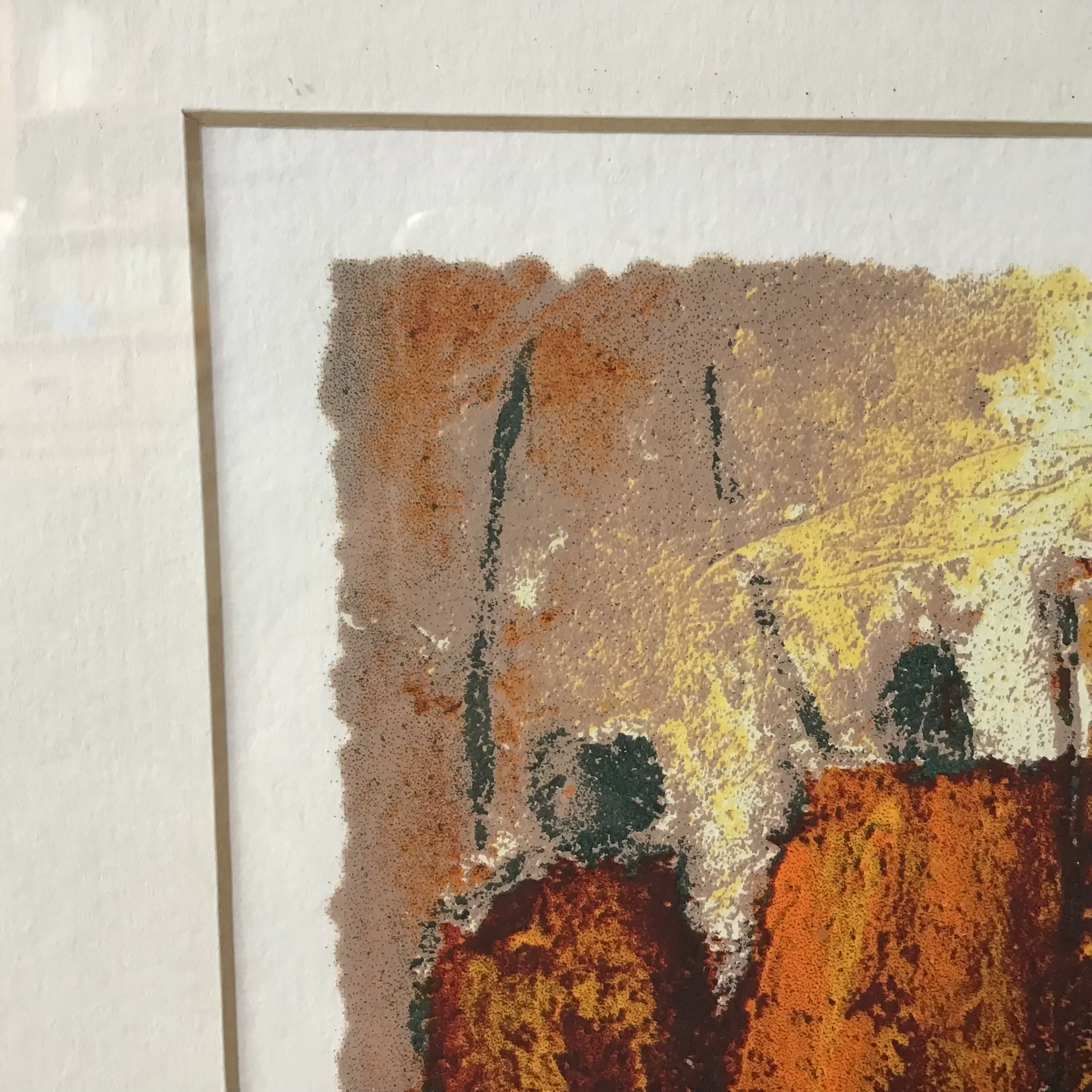 Bekend bijna abstract werk van Alie Kruse-Kolk. Vijf gestileerde mensenfiguren in aarde tinten. Alie Kruse is een veelgevraagde kunstenares. Haar werk is internationaal bekend. In Overdinkel is een permanente tentoonstelling van haar werk.