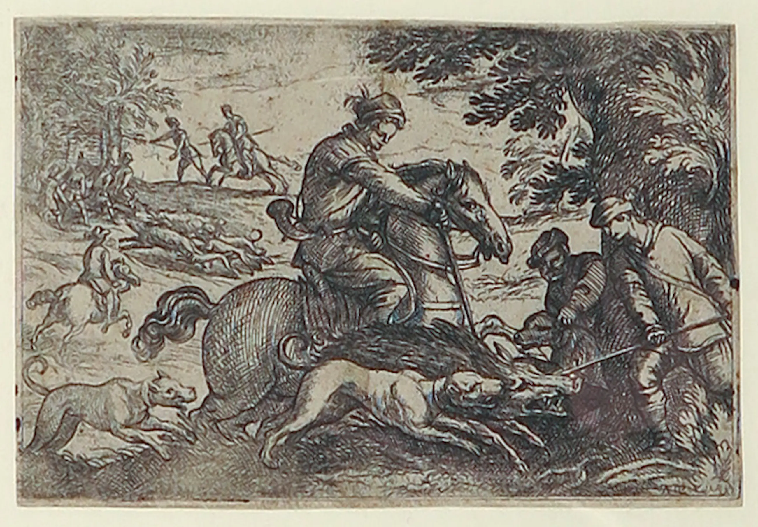 | Zeer goede staat gezien de leeftijd. Enkele vlekjes/vegen in het passe-partout. | |||