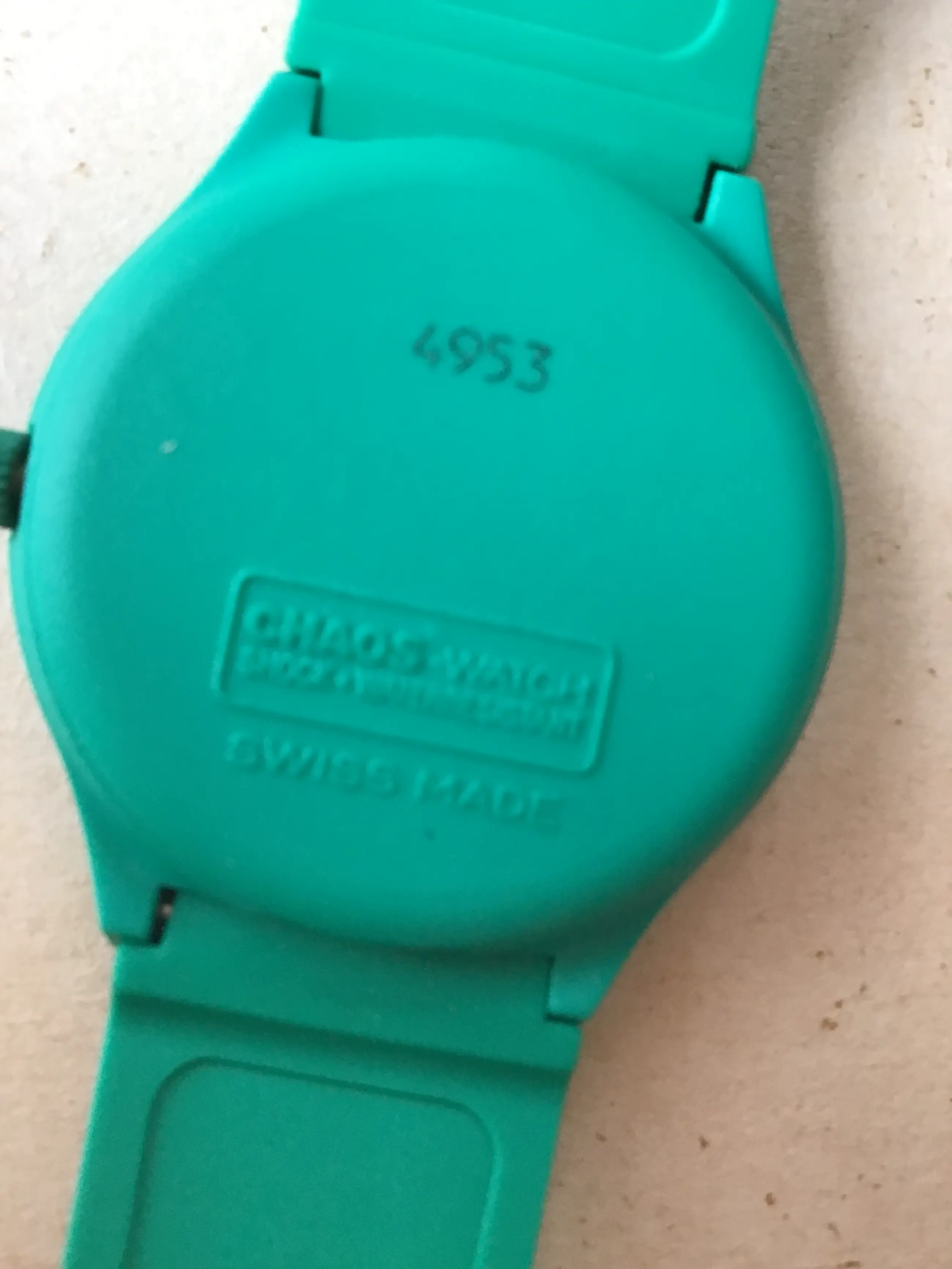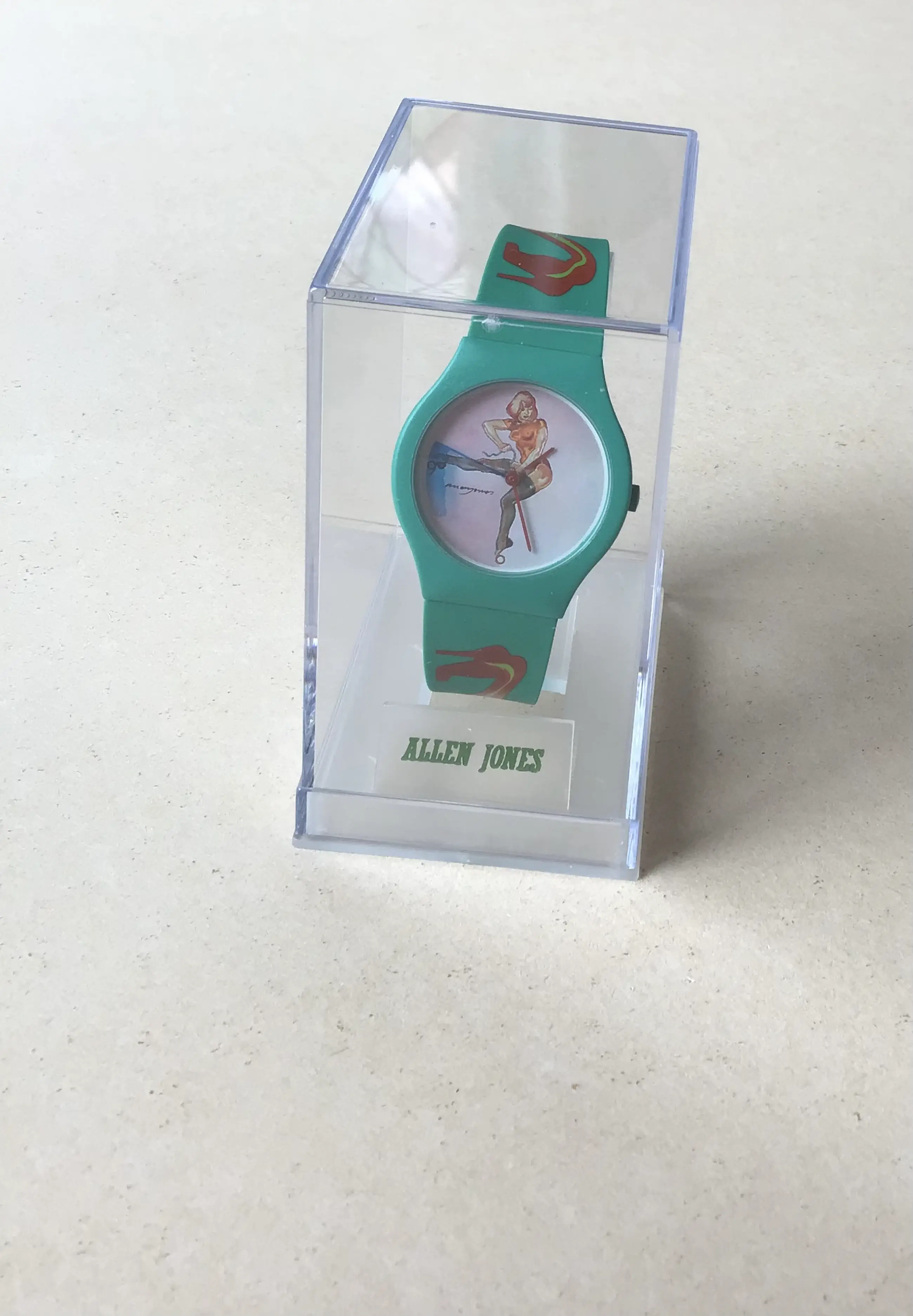 Dit horloge is no. 5 In een serie van Chaos horloges, door kunstenaars ontworpen in opdracht van de fabrikant T.S.T. AG Zwitserland in de vroege jaren 90. Het is gesigneerd op de wijzerplaat Dit exemplaar is ontworpen door de Britse pop art kunstenaar Allen Jones (1937) Het is vervaardigd in 1991/1992 in een oplage van 4999 exemplaren, waarvan dit nummer 4953. Afgedrukt op achterkant van het horloge. Conditie nieuw en in oorspronkelijke verpakking