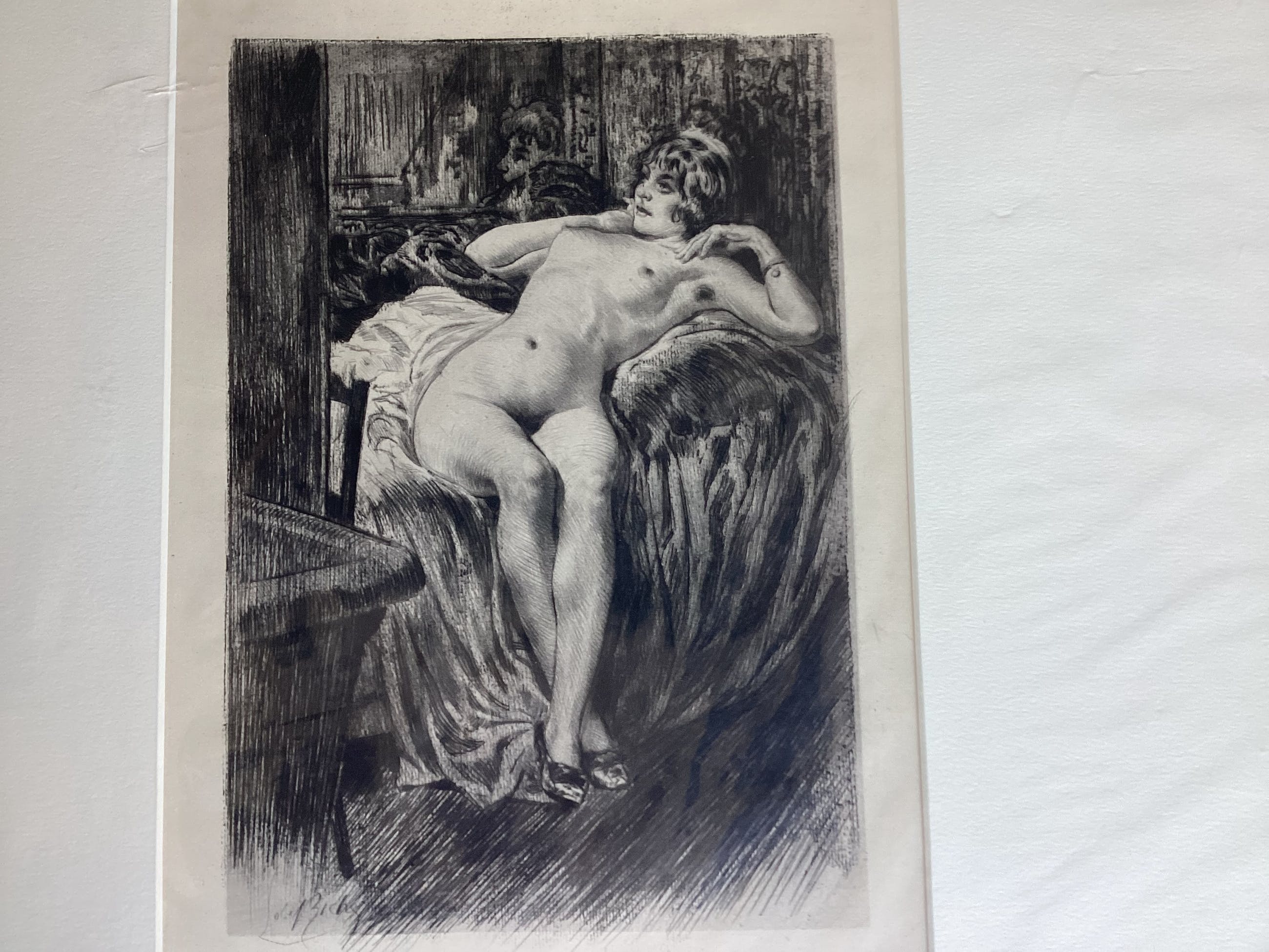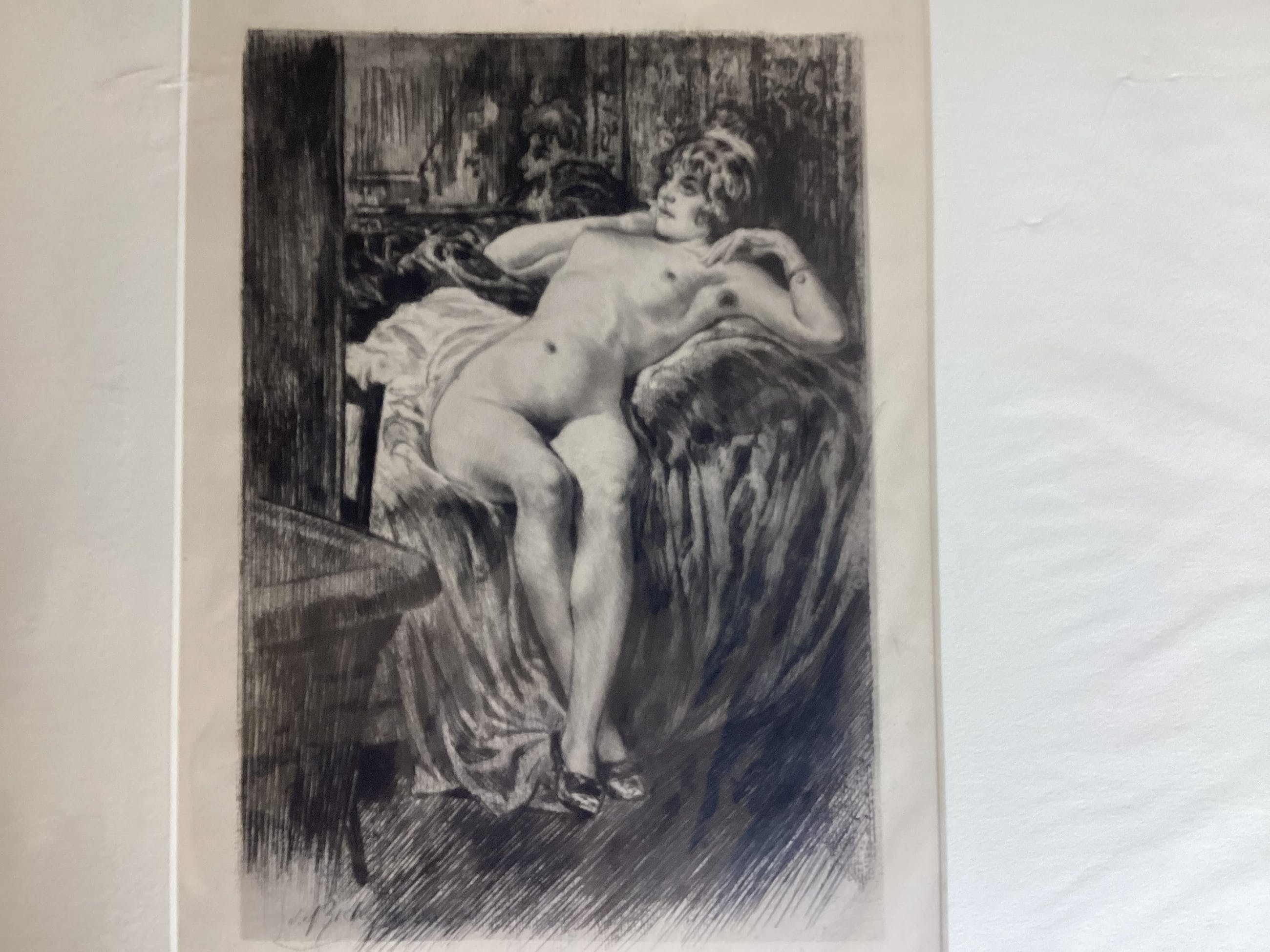 Almery Lobel Riche3 x Erotische gravures in zeer goede staatAfmeting Kader passepartout :51x 41 cmAfmeting gravure. :33x23Alle 3 de gravures zijn in plastic hoes ingepakt(foto’s)Zijn in goede staat(zeer geringe gebruikerssporen)