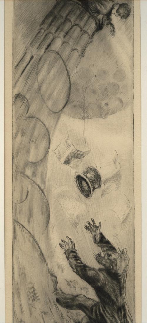 Radierung auf gelblichem Papier. Unten rechts signiert. Links :Herzlichen Neujahrsgruß 1930. Im Rand etwas vergilbt.Rückseitig mit zwei Papierstreifen unter Passepartout montiert. Plattengröße etwa11,5 mal 34,5 cm.Privatverkauf.Versand 8 Euro.