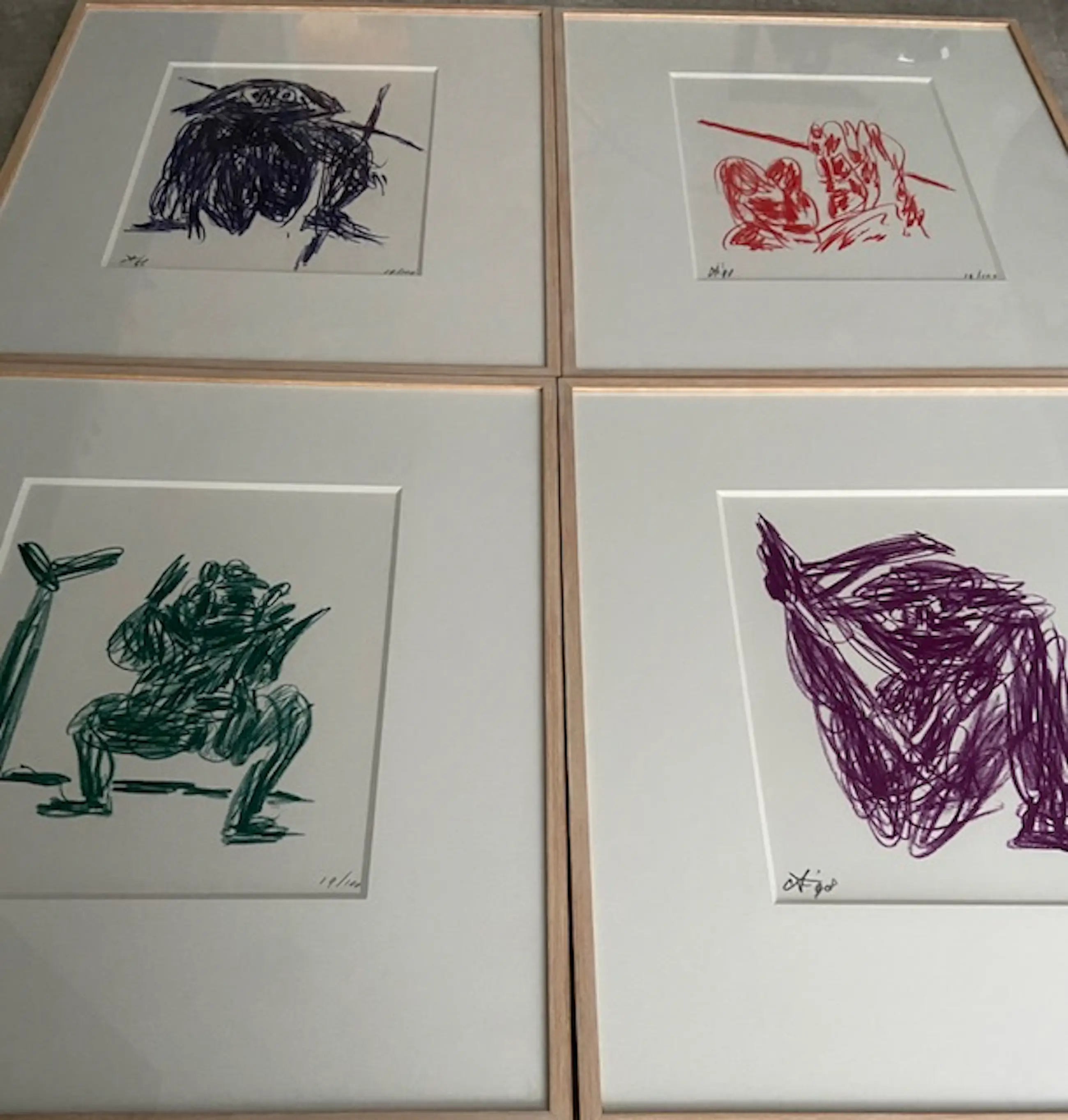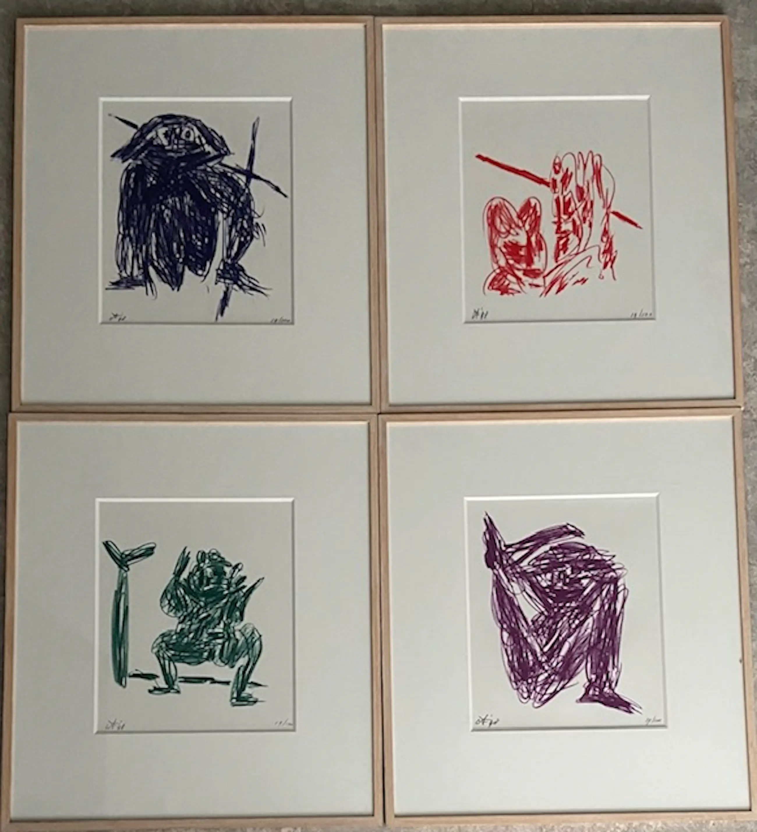 Een kavel van vier zeefdrukken door Alphons Freijmuth allen gesigneerd en genummerd 19/100. Vier stuks mooi achter glas ingelijst. Tevens een hardcover boek bij dit kavel toegevoegd.