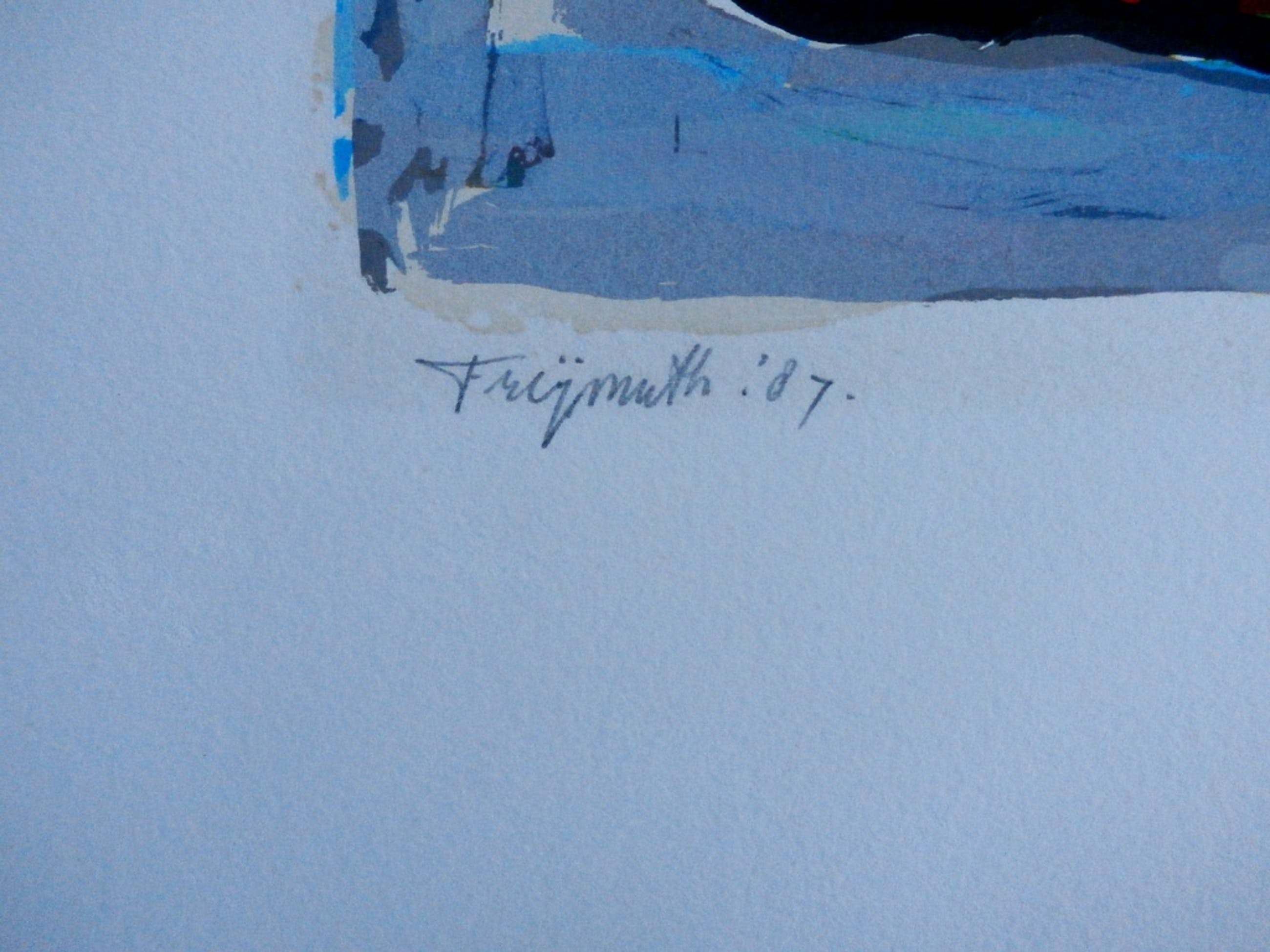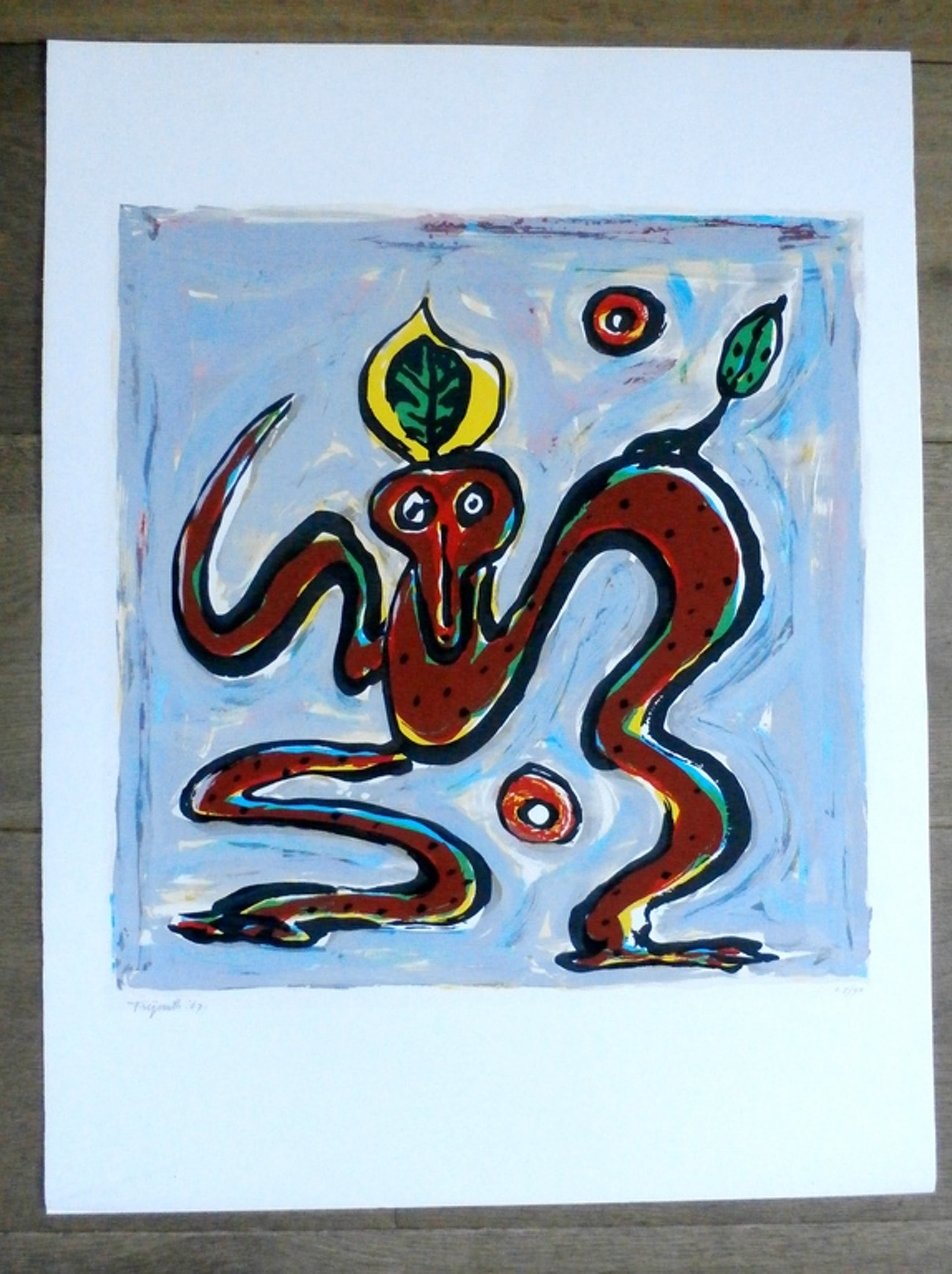 Alphons Freymuth - zeefdruk: Slangen. Jaar: 1987. Afmetingen blad: h65 x b50 cm; Afmetingen voorstelling: h44x b43 cm. rechtsonder, met potlood, gesigneerd door de kunstenaar. De authenciteit van dit werk wordt volledig gegarandeerd. Een certificaat van echtheid kan, op aanvraag, worden meegestuurd.