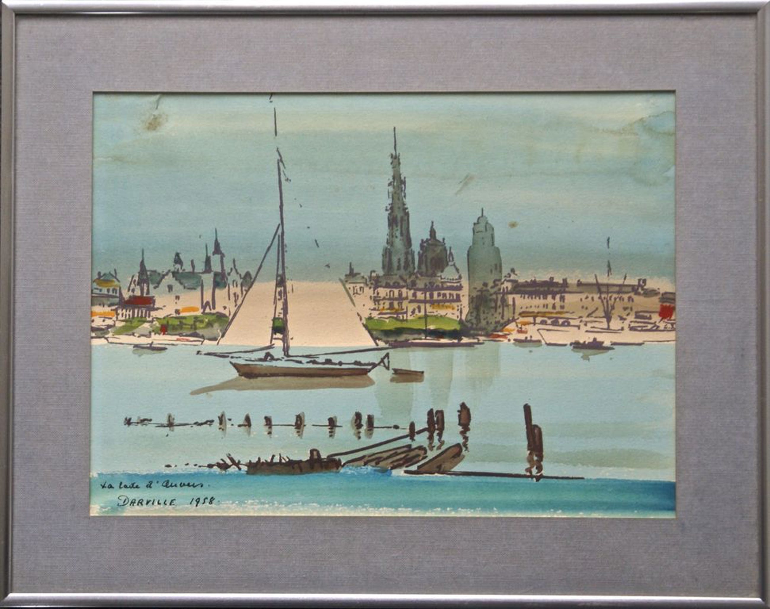 Antwerpen. Verder in aquarel uitgewerkt. Voorzien van goede passe