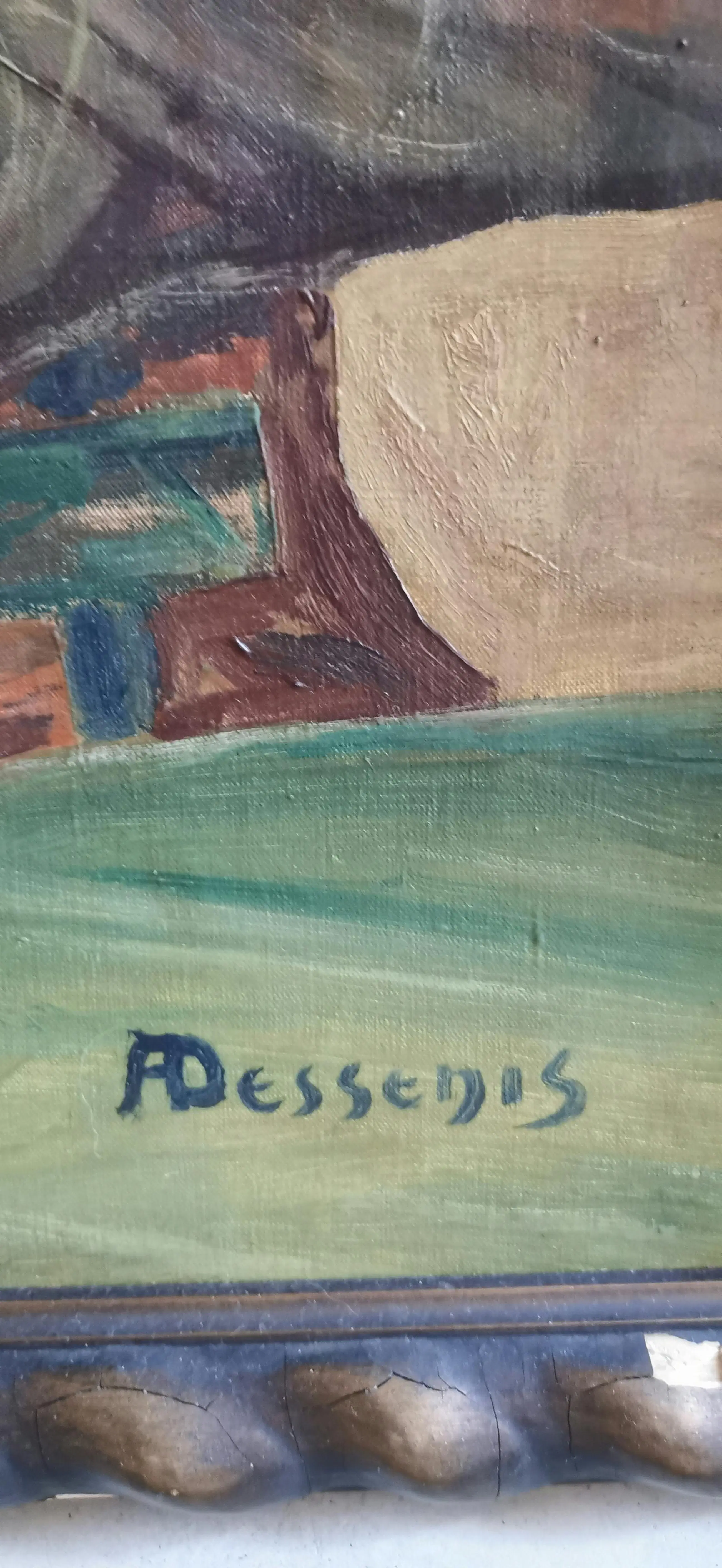 Schilderij in perfecte staat. Het toont een peinzende oude man die zit, met zijn armen rustend op de rugleuning van een stoel. Veel charme en een gevoel van nostalgie.