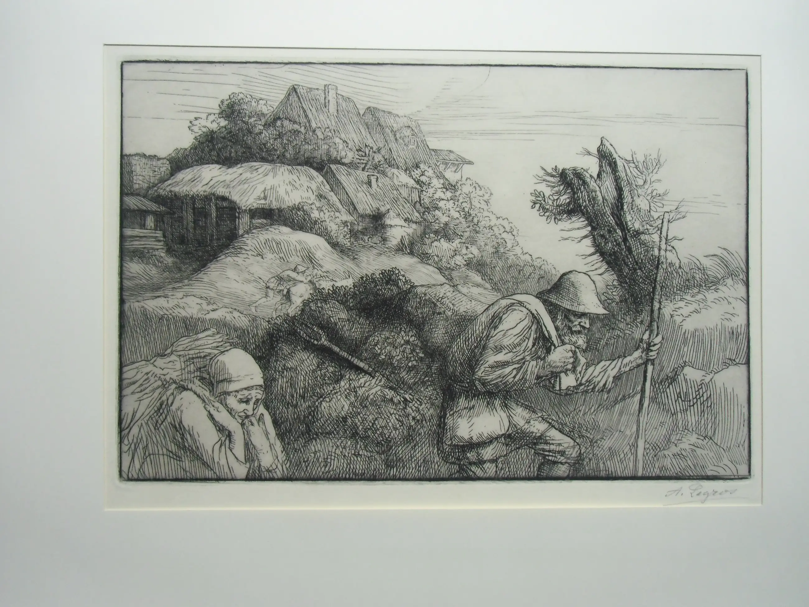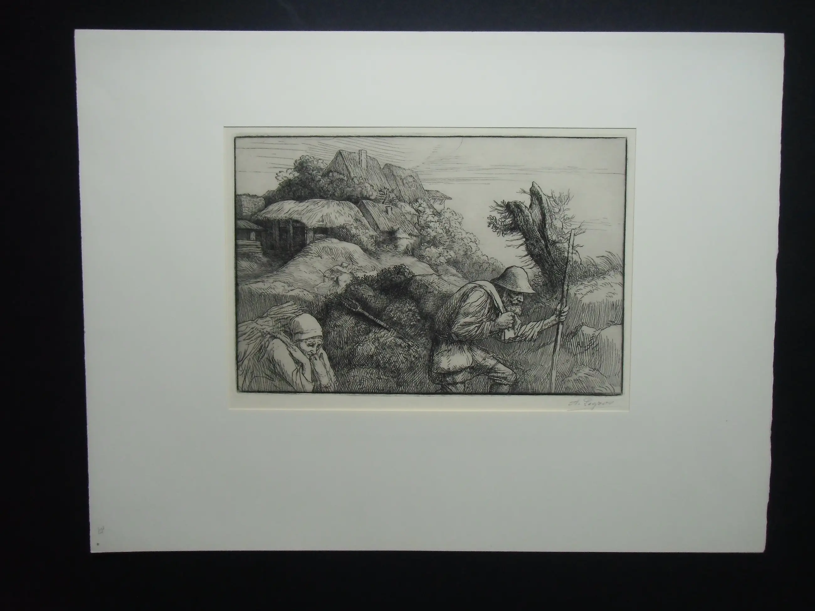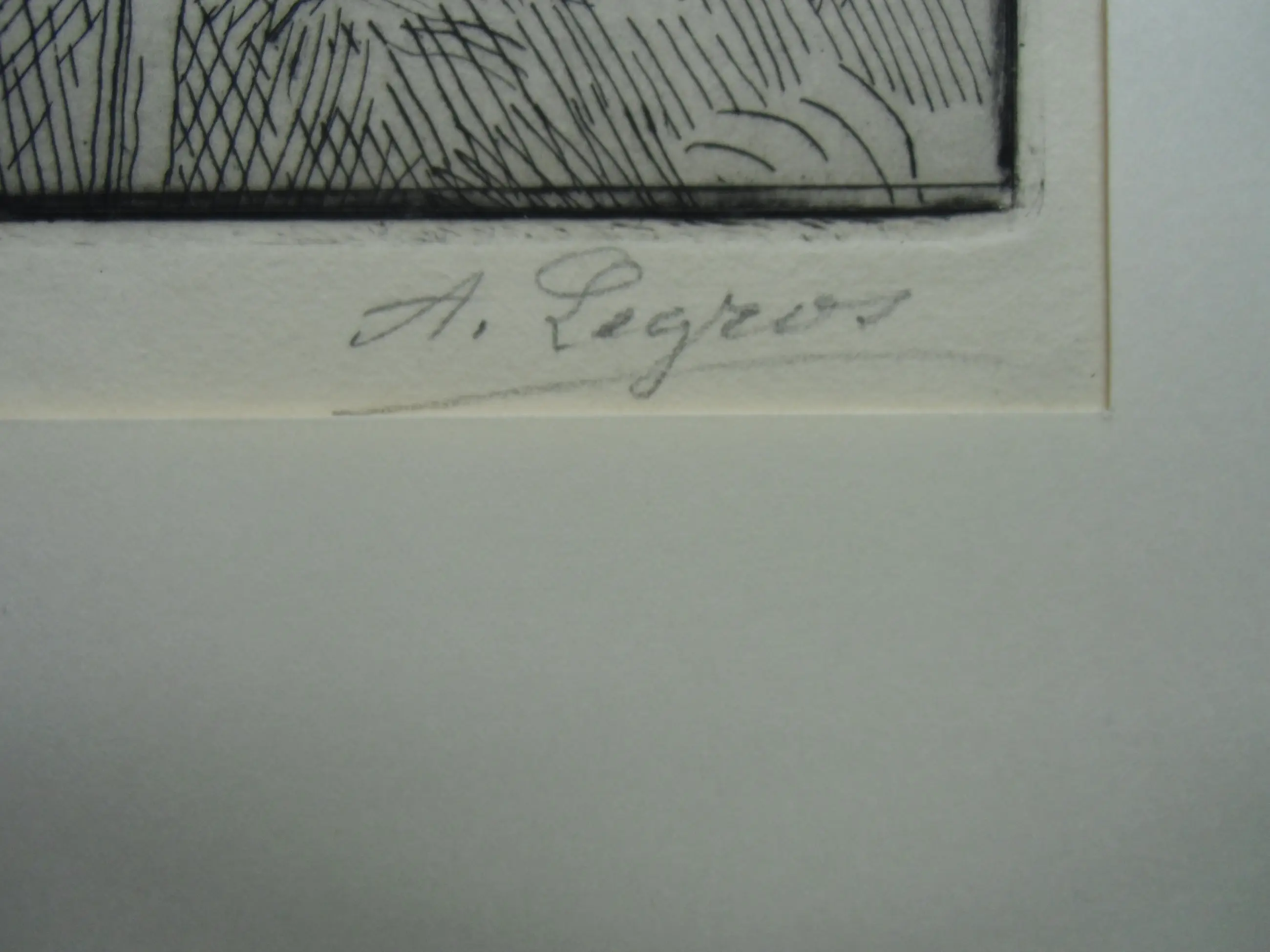 Fraaie ets van onberispelijke kwaliteit van de internationaal werkende Belgische kunstenaar Alphonse Legros uit het laatst van de 19e eeuw. Gesigneerd met potlood r.o. Los opgenomen in passepartout met achtervel uit de voorraad van Borzo.