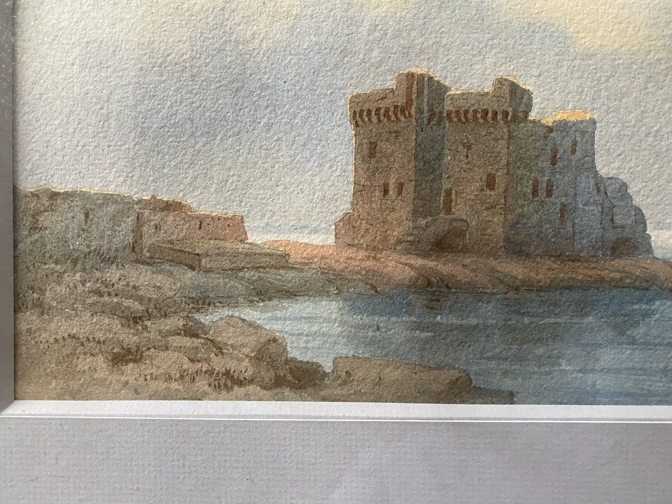 aquarel op stevig papier ingekaderd gesigneerd onderaan en in goede staat. afmetingen zichtbaar aquarel 33 cm x 16 cm met kader . 31 cm x 48 cm professionele inkadering.