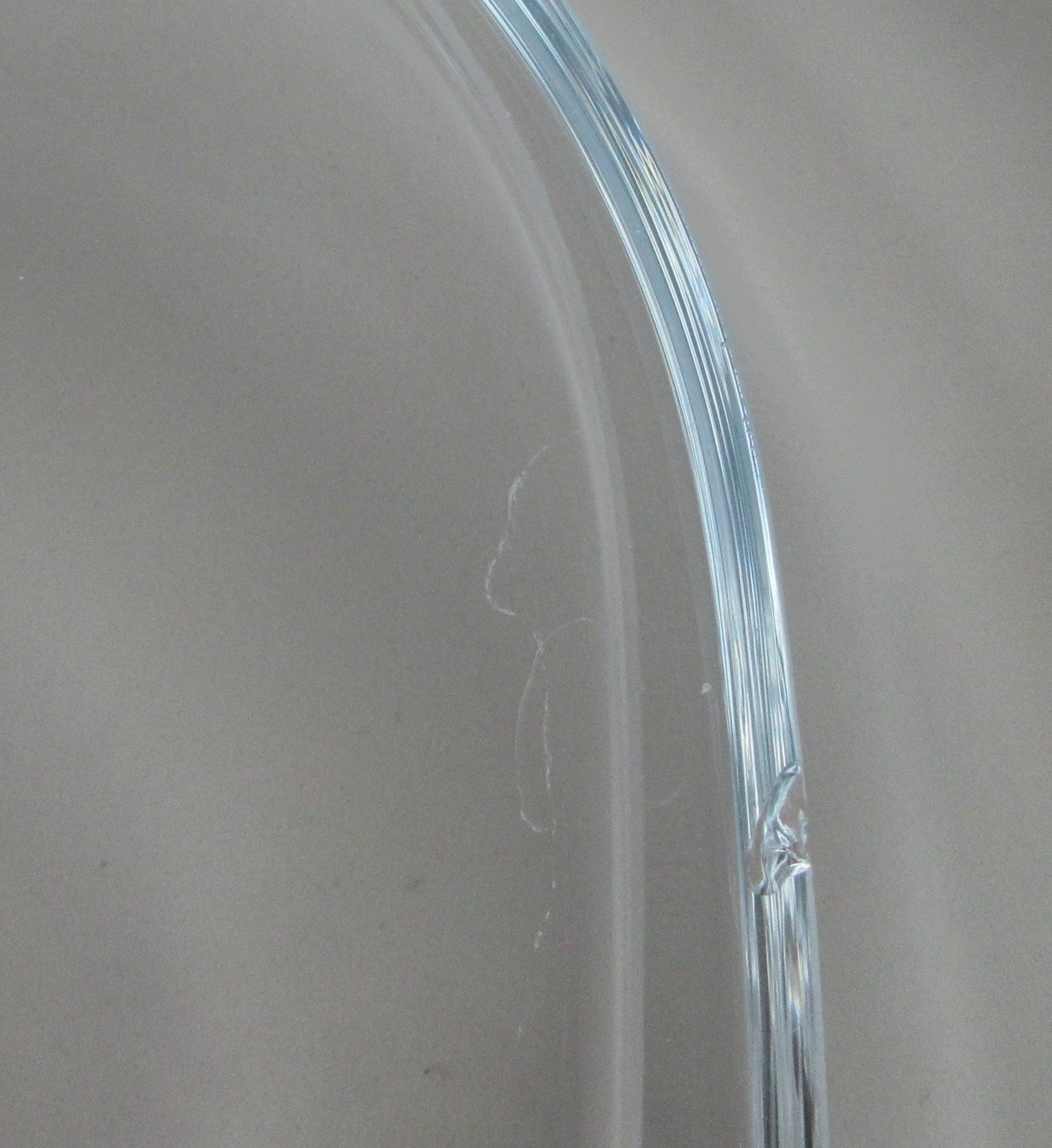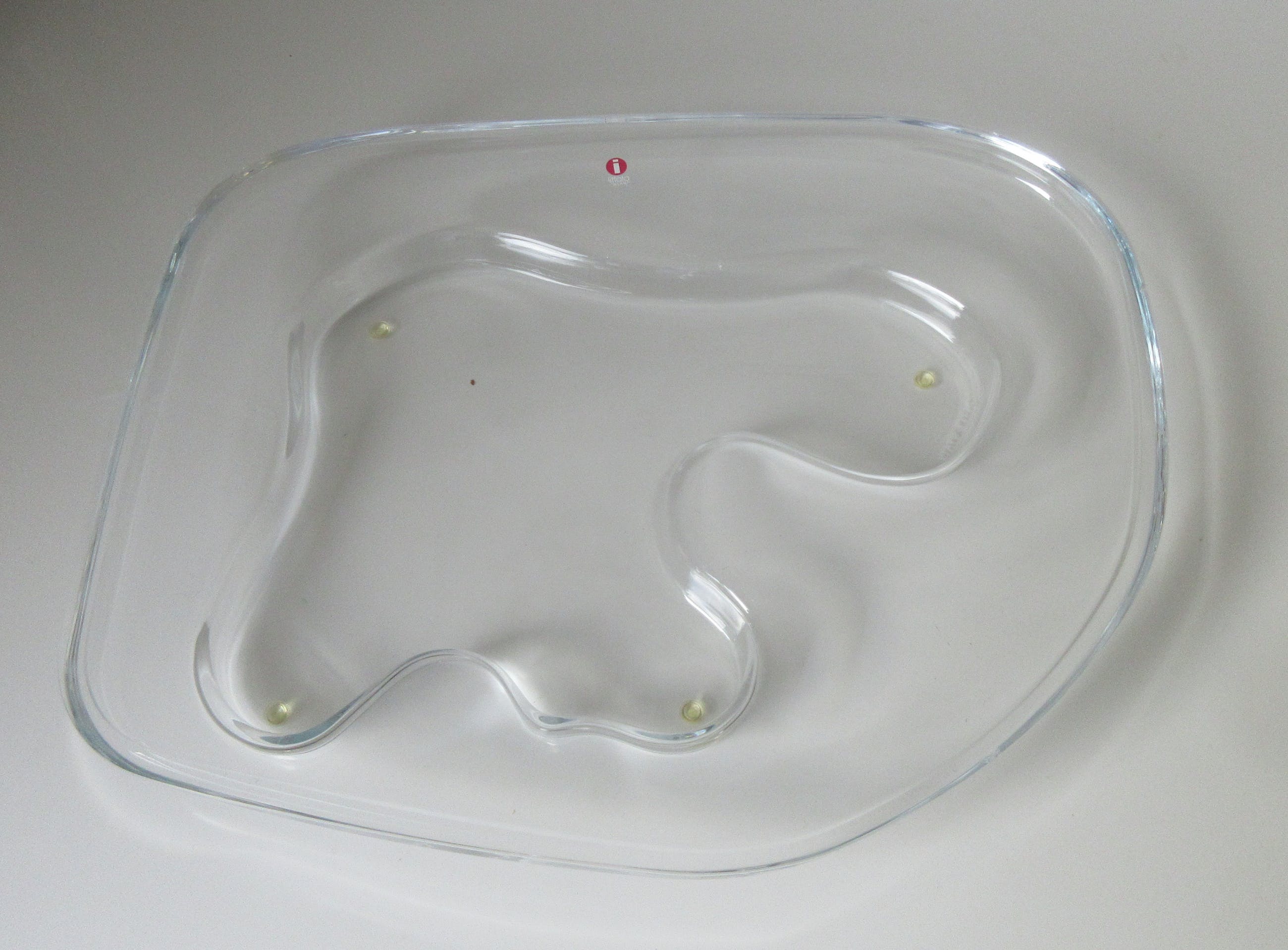 Grote glazen schaal Savoy - Iitala - Het wereldberoemde ontwerp van Alvar Aalto. Helaas beschadigd. Aan de onderzijde gets gesigneerd en voorzien van merksticker.