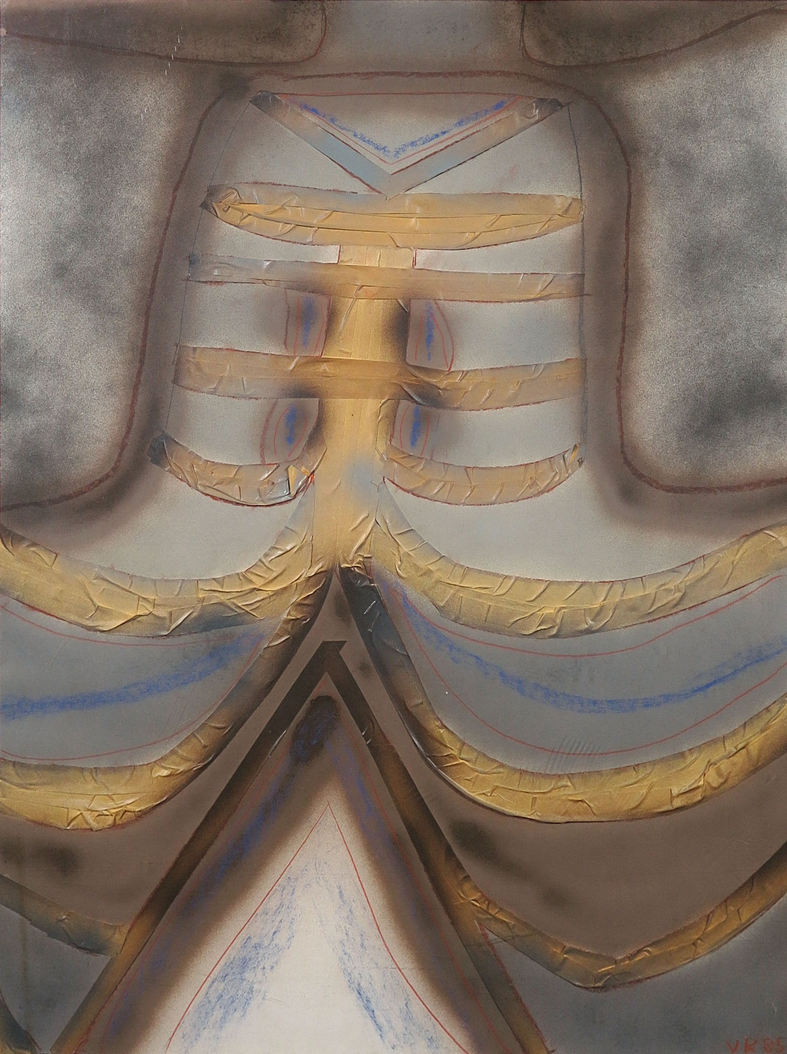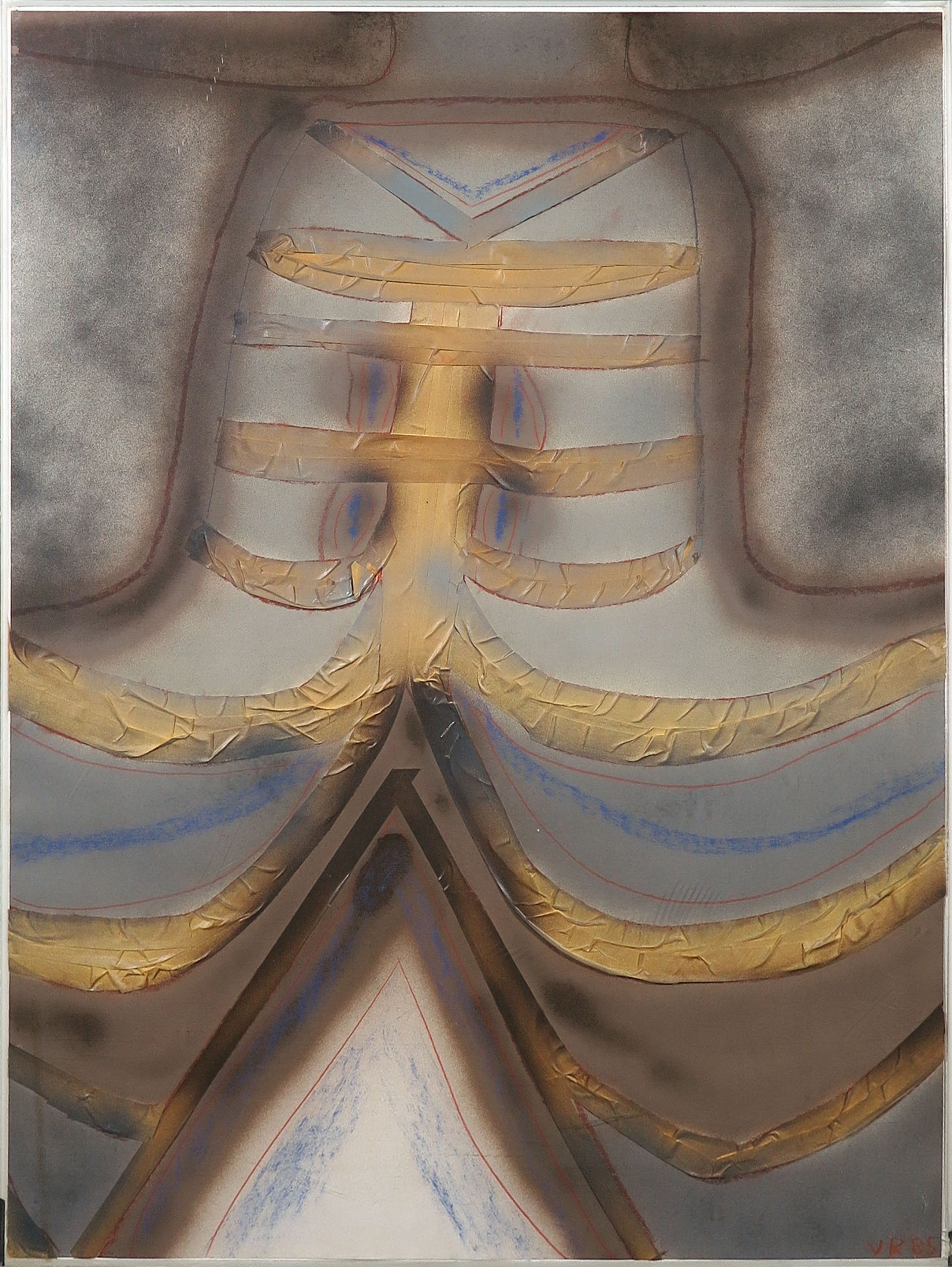 Gemengde techniek: o.a. collage, pastelkrijt en airbrush