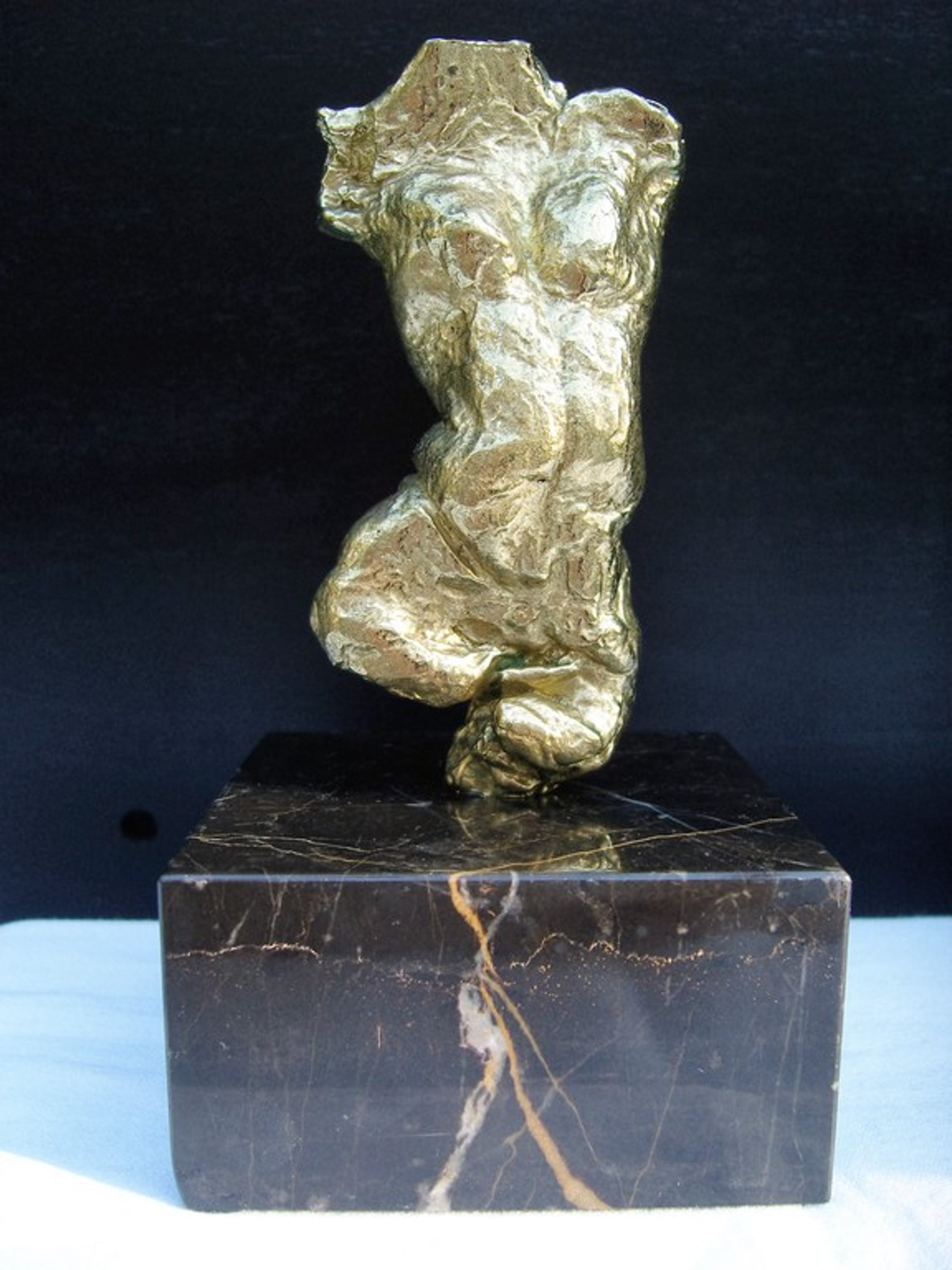 Zeldzaam goudverguld bronzen beeldje van Amanda Lear. Amanda Lear was tijdens de laatste 15 jaar van Salvador Dali 's leven zijn partner, zijn muze en zijn lievelingsmodel.