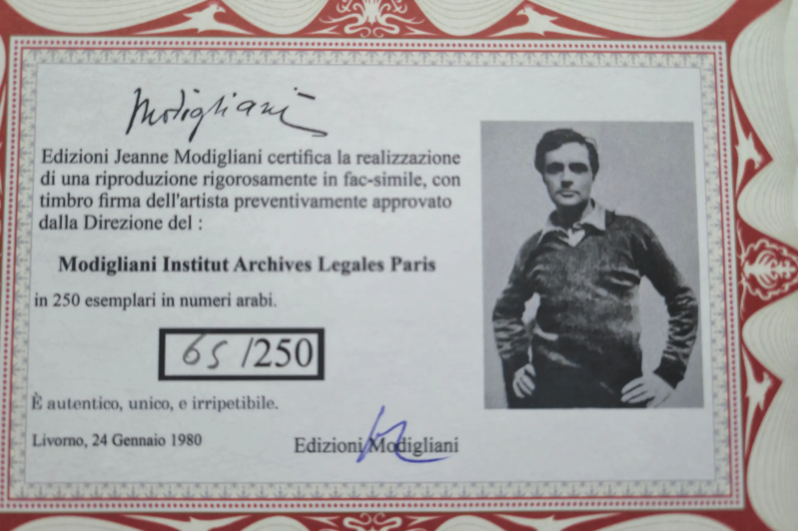 Formaat: ca. 50 x 70 cm Gelimiteerde editie: Nummer 65 van 250 Met echtheidscertificaat (uitgegeven in 1980 in Livorno) Ongekaderd Conditie: zeer goed