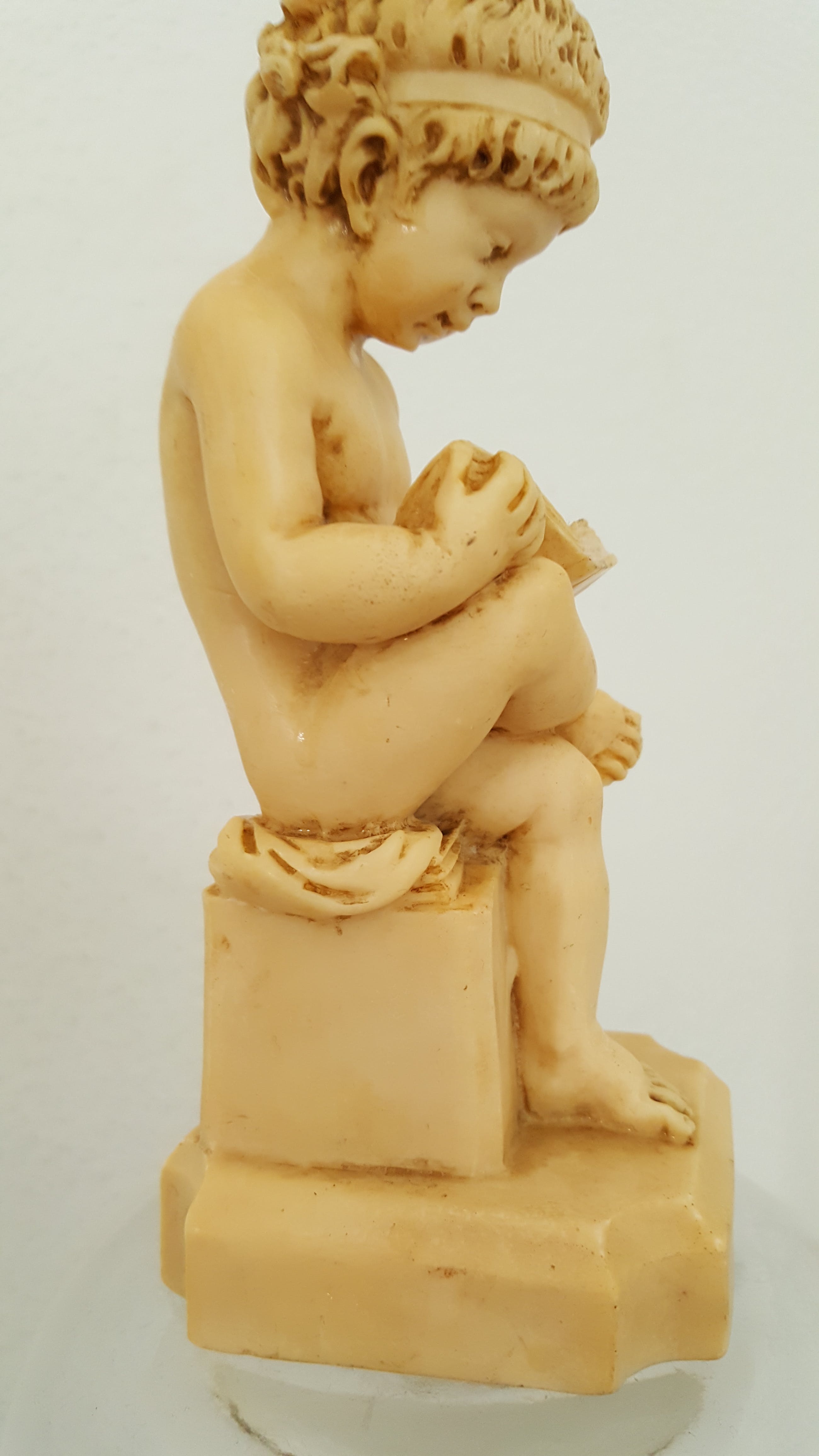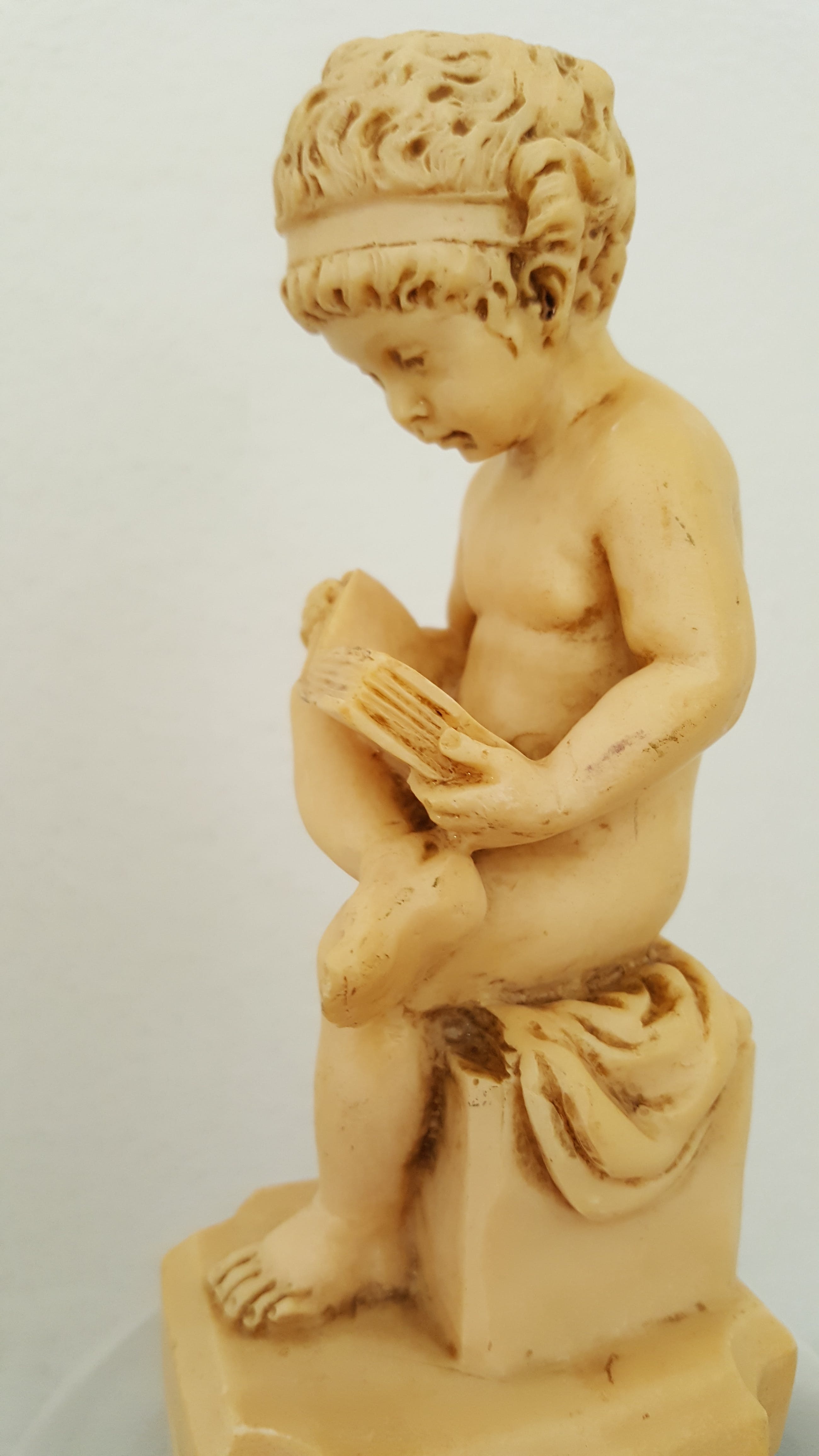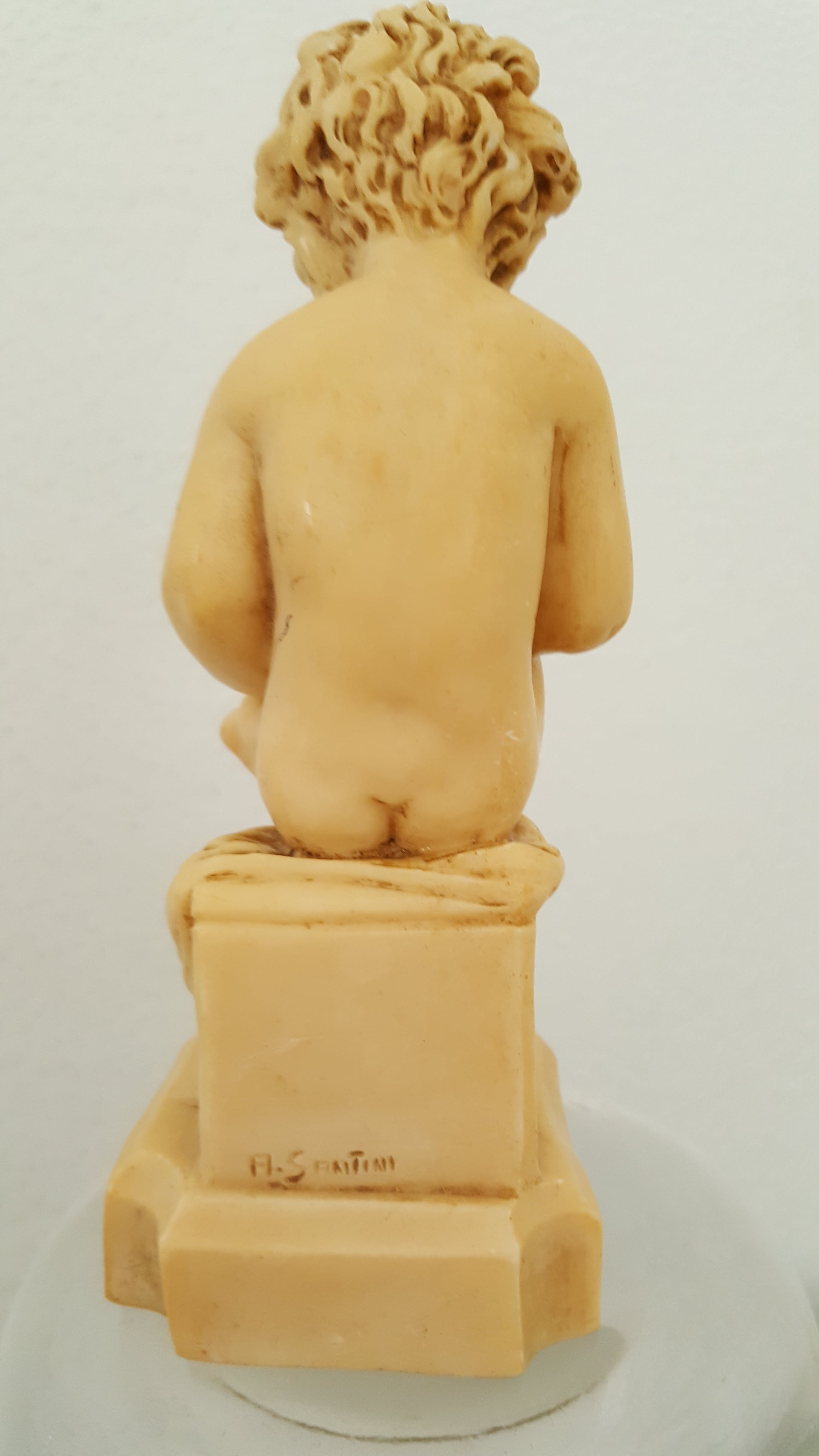 Vintage Ital.Beeld A.Santini geboren 1910 Cecina(Livorno) overleden 1975 Voorstelling: Naakt Meisje leest een boek op Consol Hoogte 16 cm Breedte 6 cm Gewicht 450 gram Geheel Gaaf Beeld is gesigneerd(zie foto)