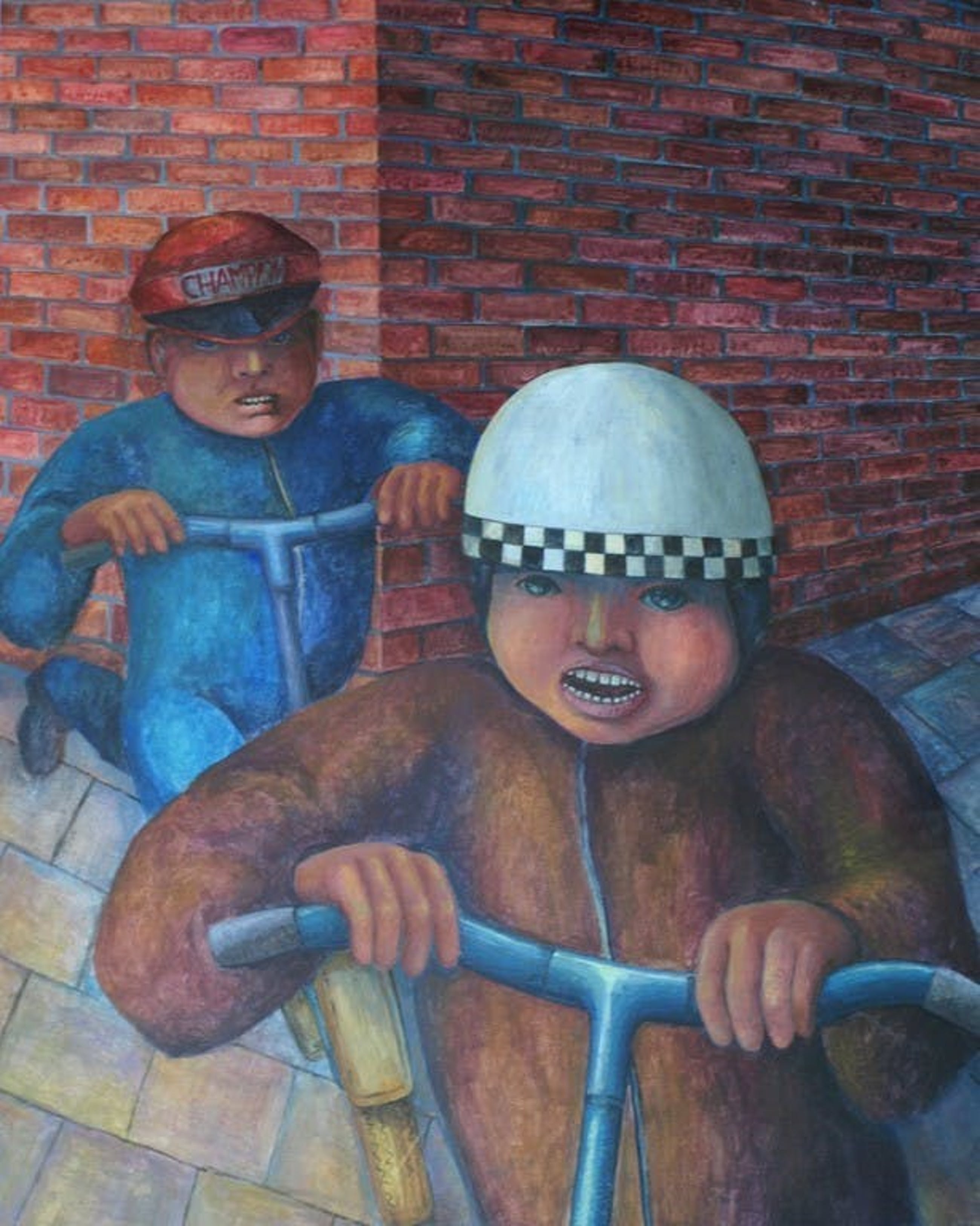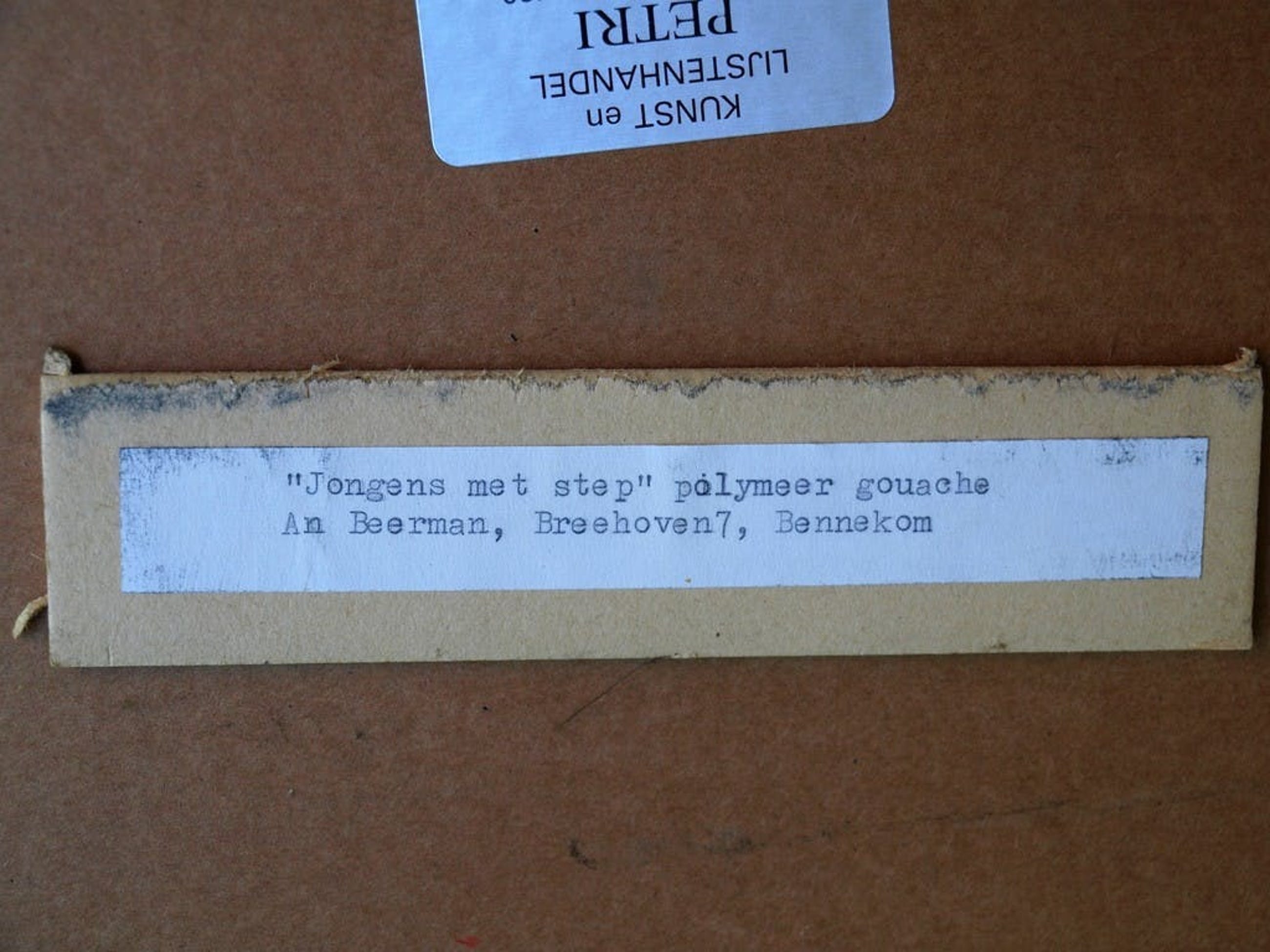 Titel: "Jongens met step". Staat vermeld op de achterkant.