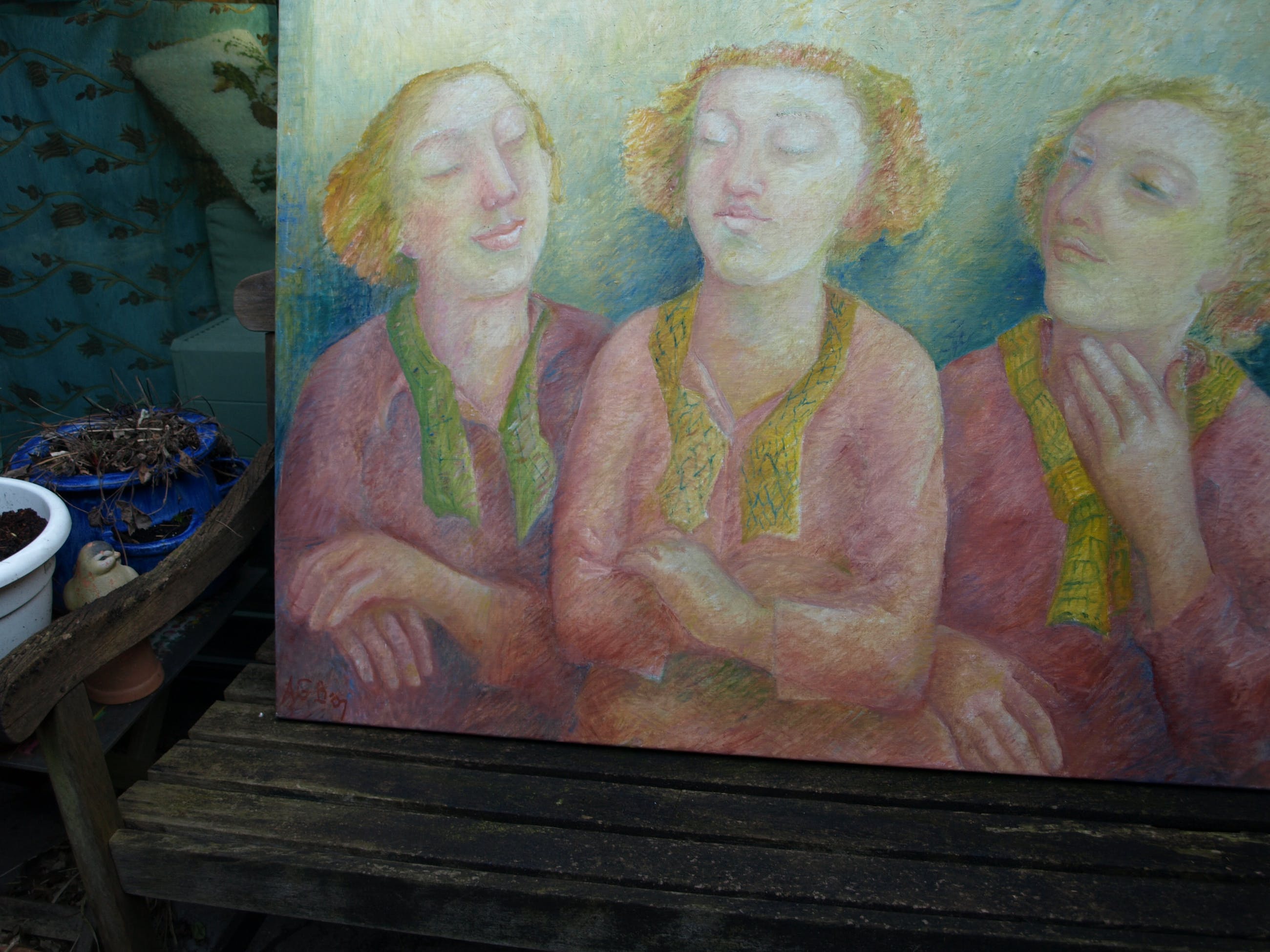 Informatie over de kunstenares: An Goedewagen-Beerman, geboren 09-12-1928 te Teloek Bajoer (Borneo, Indonesië) en overleden 10-07-2014 in Andelst (Overbetuwe, Gelderland), schilder. -Opleiding: Rijksnormaalschool, Amsterdam (1946) en de Rijksakademie van Beeldende Kunsten Amsterdam (1947-1950). -Stijl: Haar werk wordt wel getypeerd als poëtisch realisme of poëtisch expressionisme. Ze schilderde figuratief met een poëtische penseelvoering haar geheel eigen verstilde en indringende werkelijkheid. An Beerman liet zich inspireren door het dagelijks leven. In haar werk vormden kinderen, volwassenen, dieren en het landschap het verhalende karakter van haar schilderijen. De scènes lijken uit het leven gegrepen maar in haar verbeelding krijgen ze iets wonderlijks. Vaak spreekt uit haar kunstwerken een humoristische ondertoon, maar vaker nog overheerst een sfeer van verstilling en melancholie. Door de uitdrukking van de gezichten lijkt het alsof An Beerman de toeschouwer wil laten meekijken in haar blikveld, op zodanige wijze dat de sfeer invoelbaar wordt. -Een selectie van haar oeuvre was in april en mei 2015 te zien in het Museum voor Moderne Kunst in Arnhem. -Literatuur: Jacobs 1993.