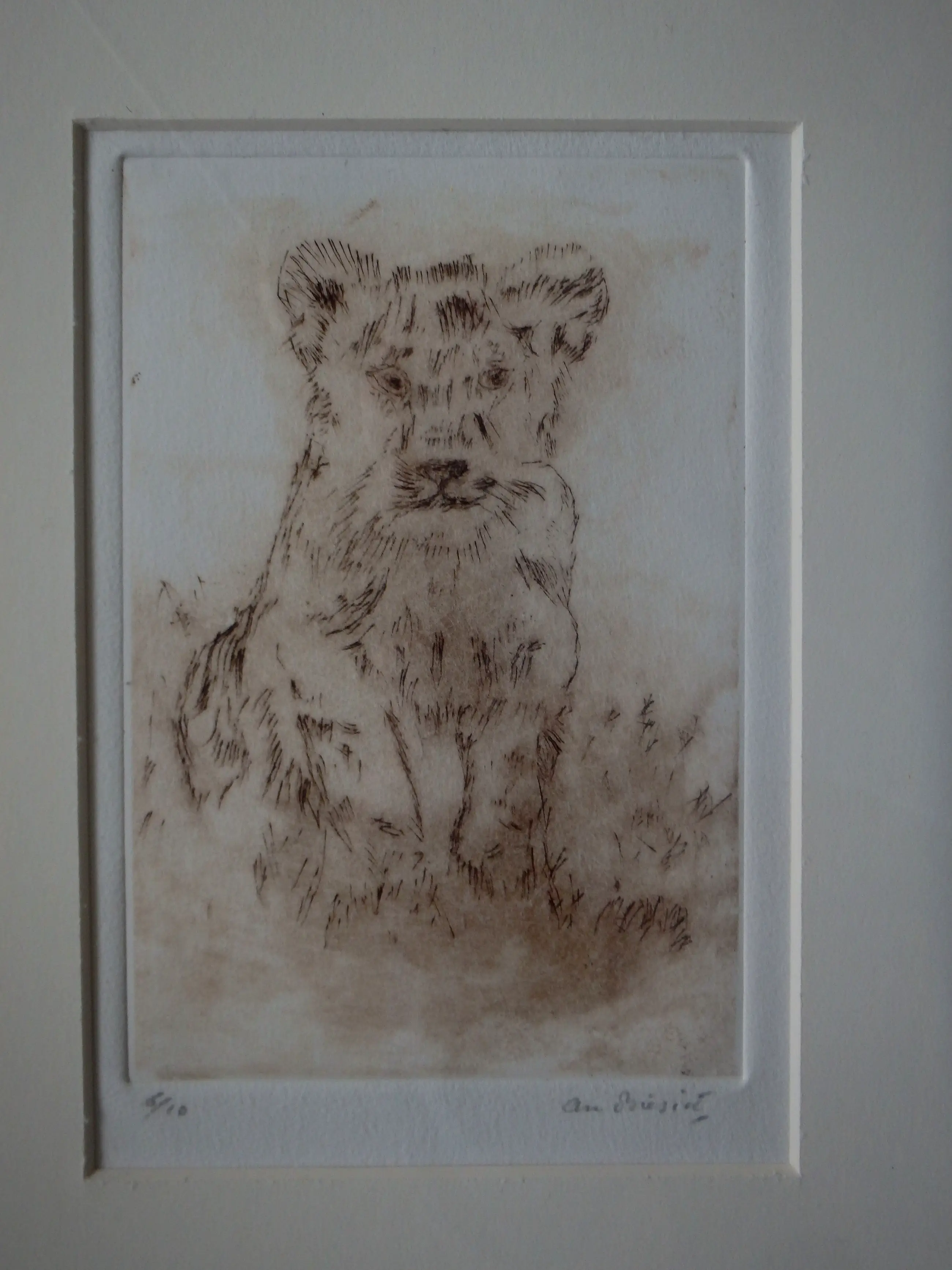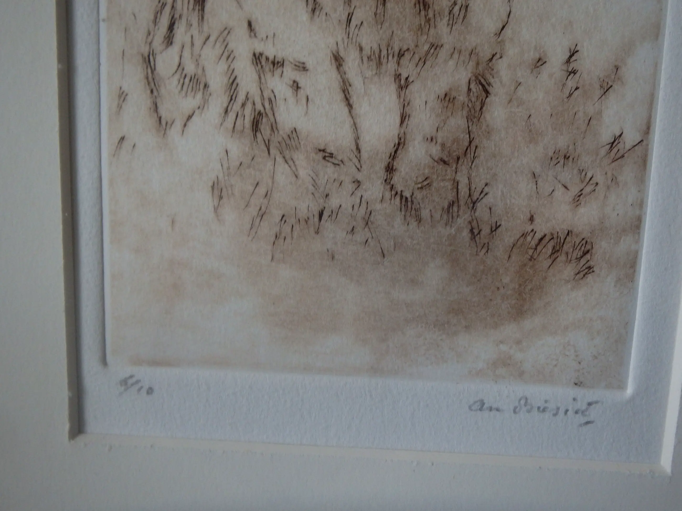 Ets in bruin 17x11, rechtsonder met potlood gesigneerd An Biesiot en linksonder genummerd 6/10, keurig ingelijst in passe-partout en achter glas.
