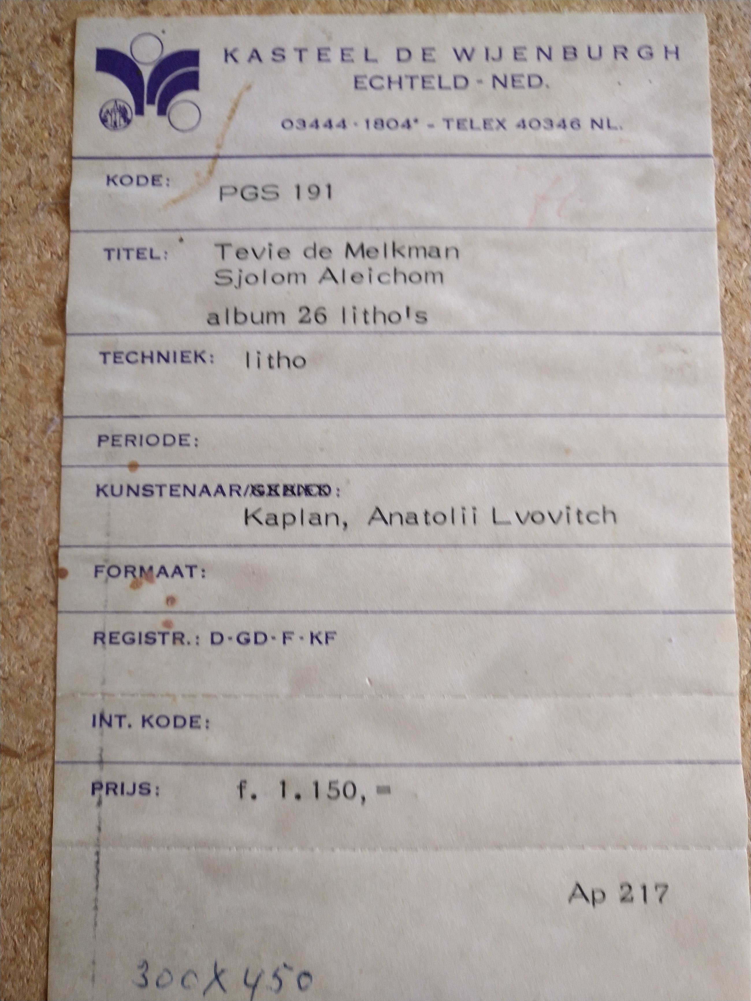 Anatoli Kaplan 1902-1980 (Russian) Sholem Aleichem. Tevye the dairyman (portfolio of 26 lithographs), 1966 lithographs, published by Artist of the RSFSR, Leningrad, 1966 62 x 46 cm (24 x 18 in.)