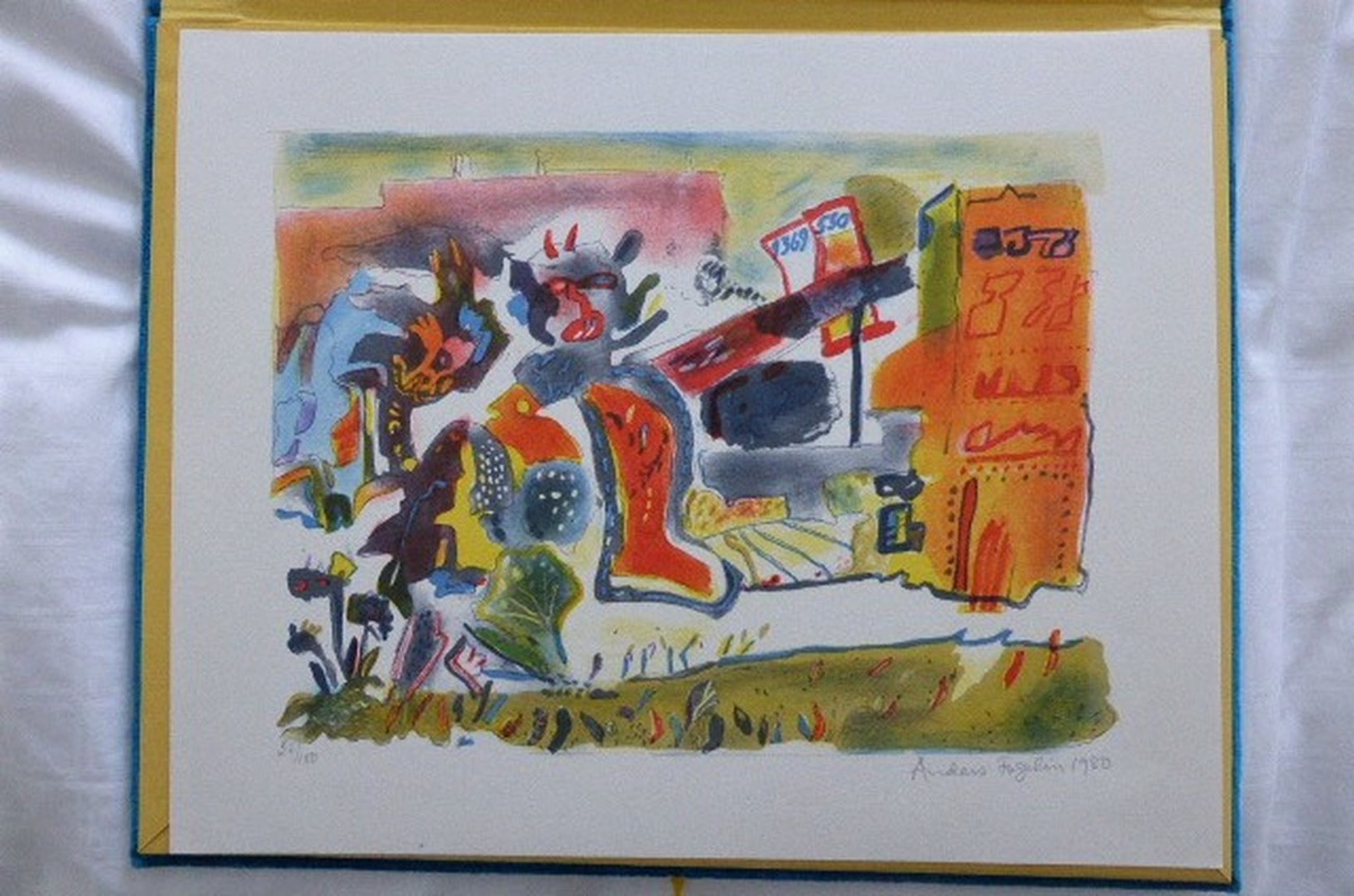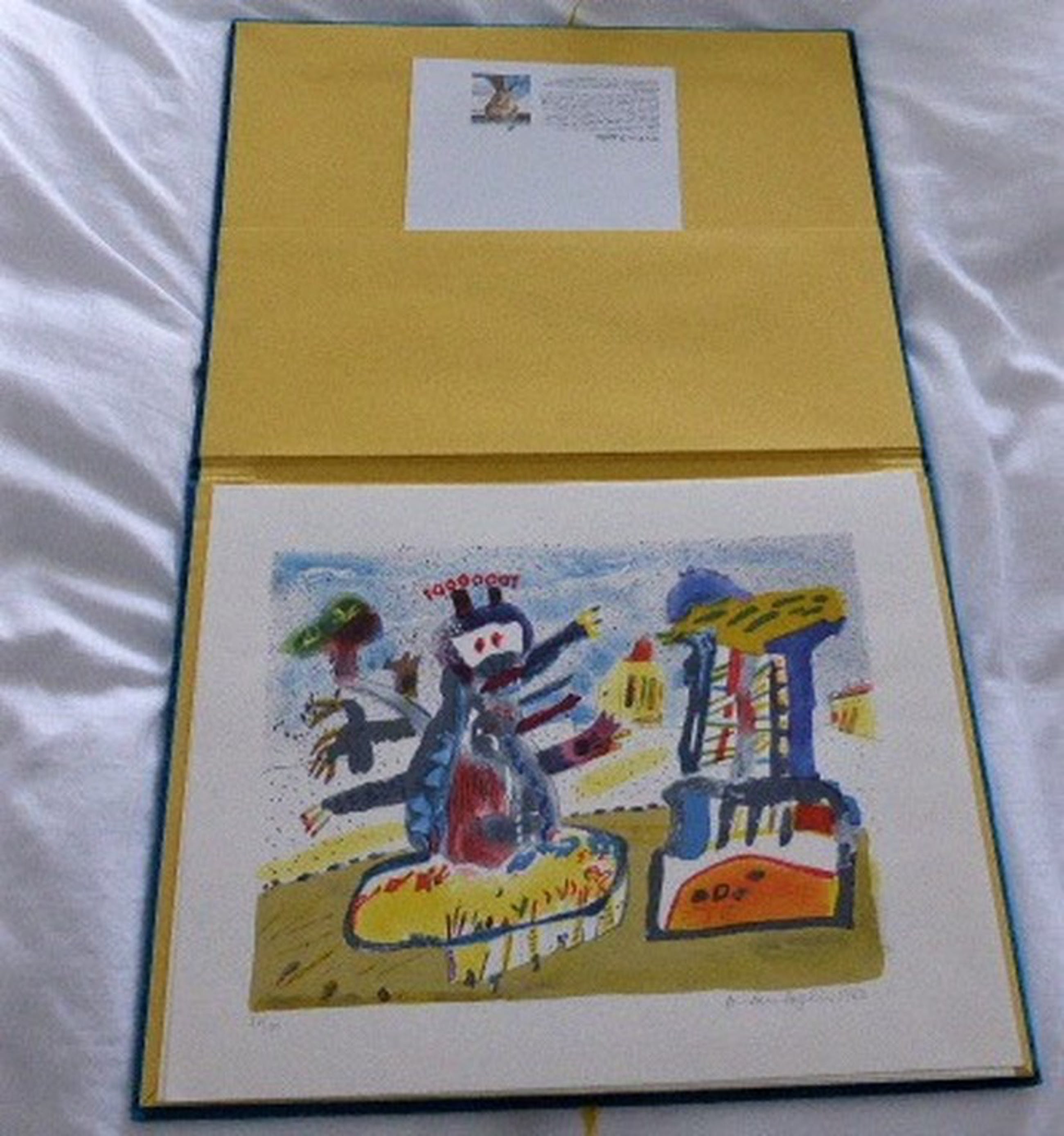 Mooie uitgave. Map in blouw velours met een orginele litho op de omslag en drie losse lithos in de map.