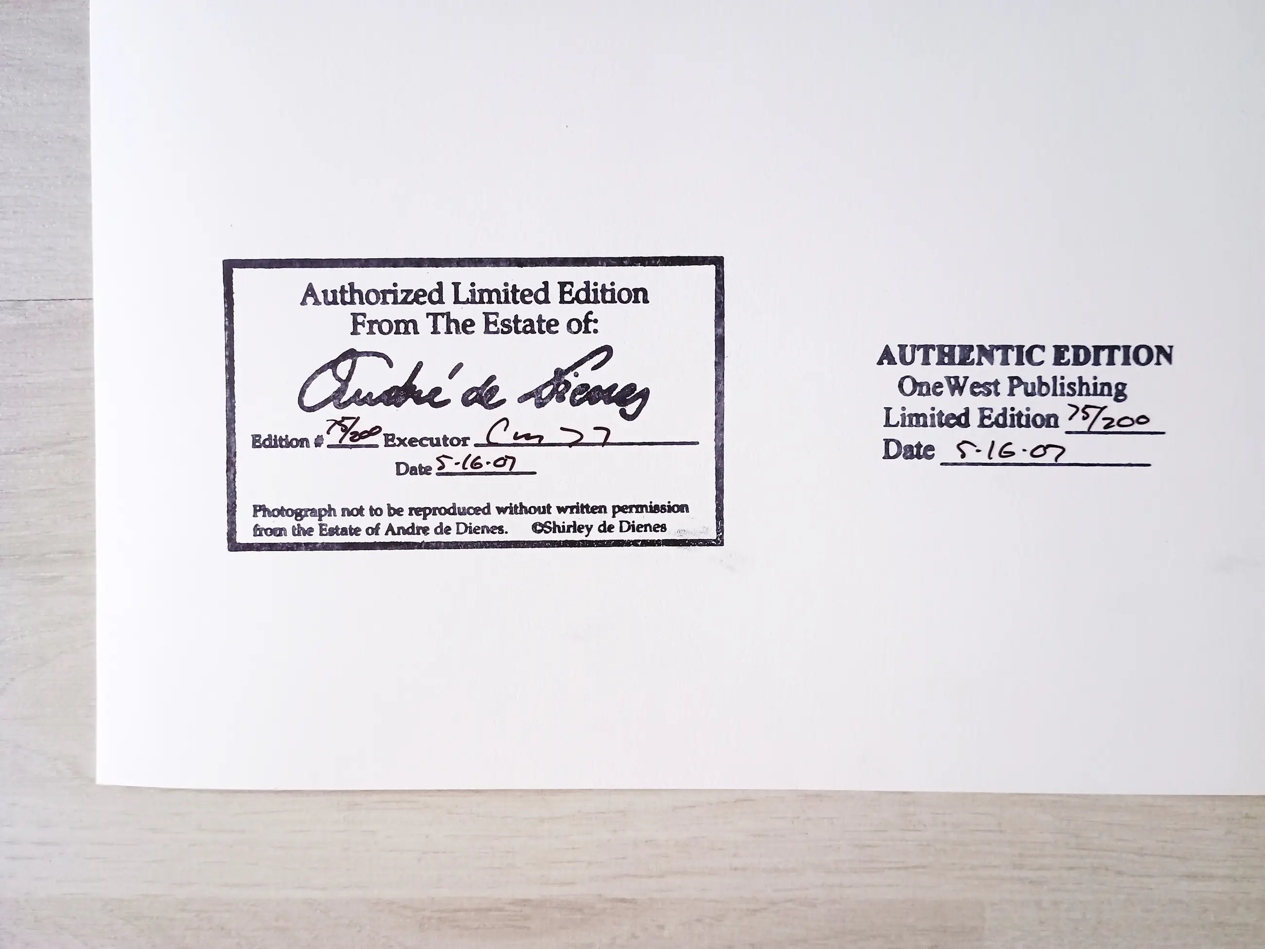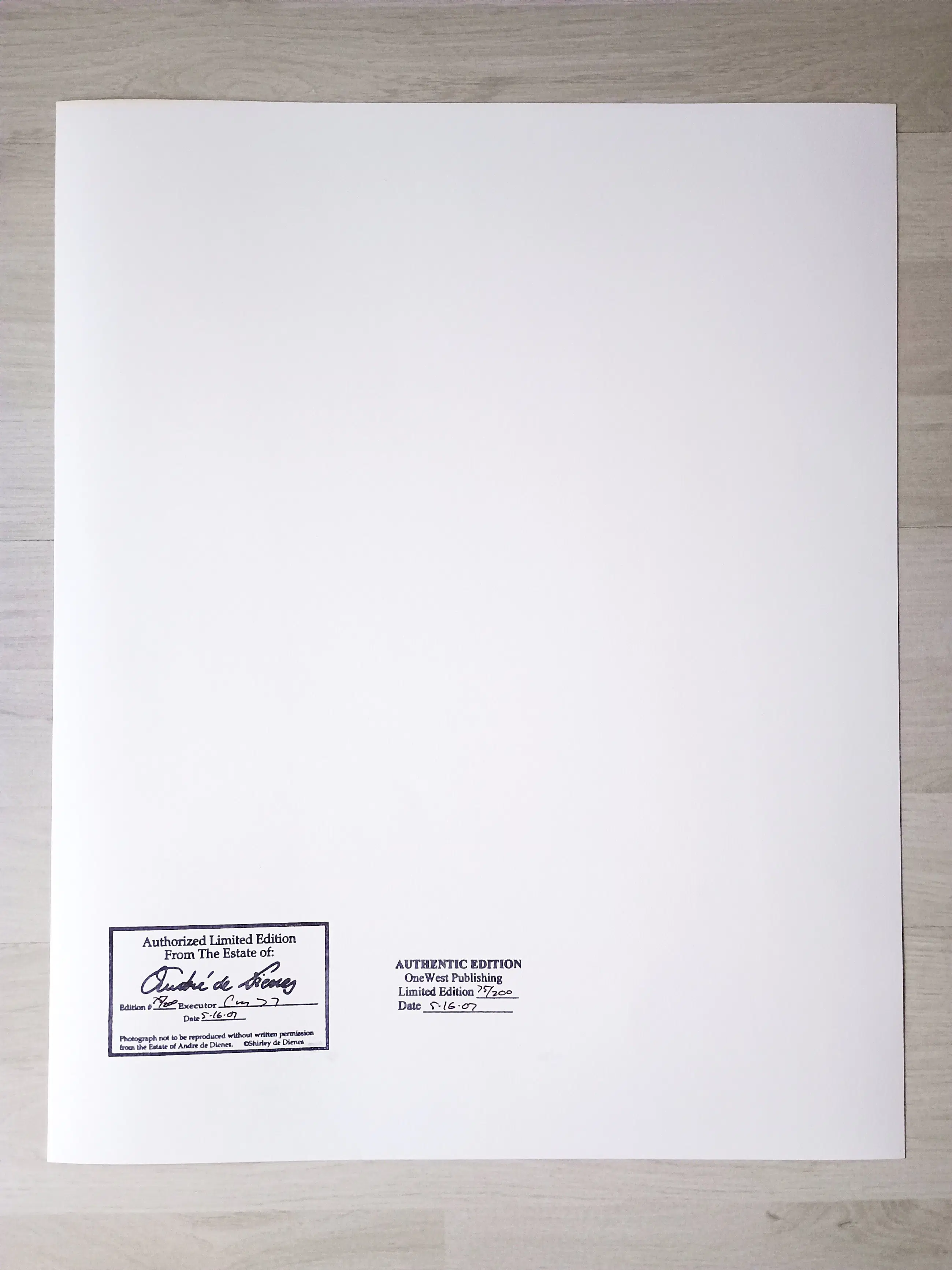 Deze kunstprint in beperkte oplage (200 exemplaren) werd uitgegeven in 2007, is rechtstreeks afkomstig van OneWest Publishing en is nooit ingelijst geweest.