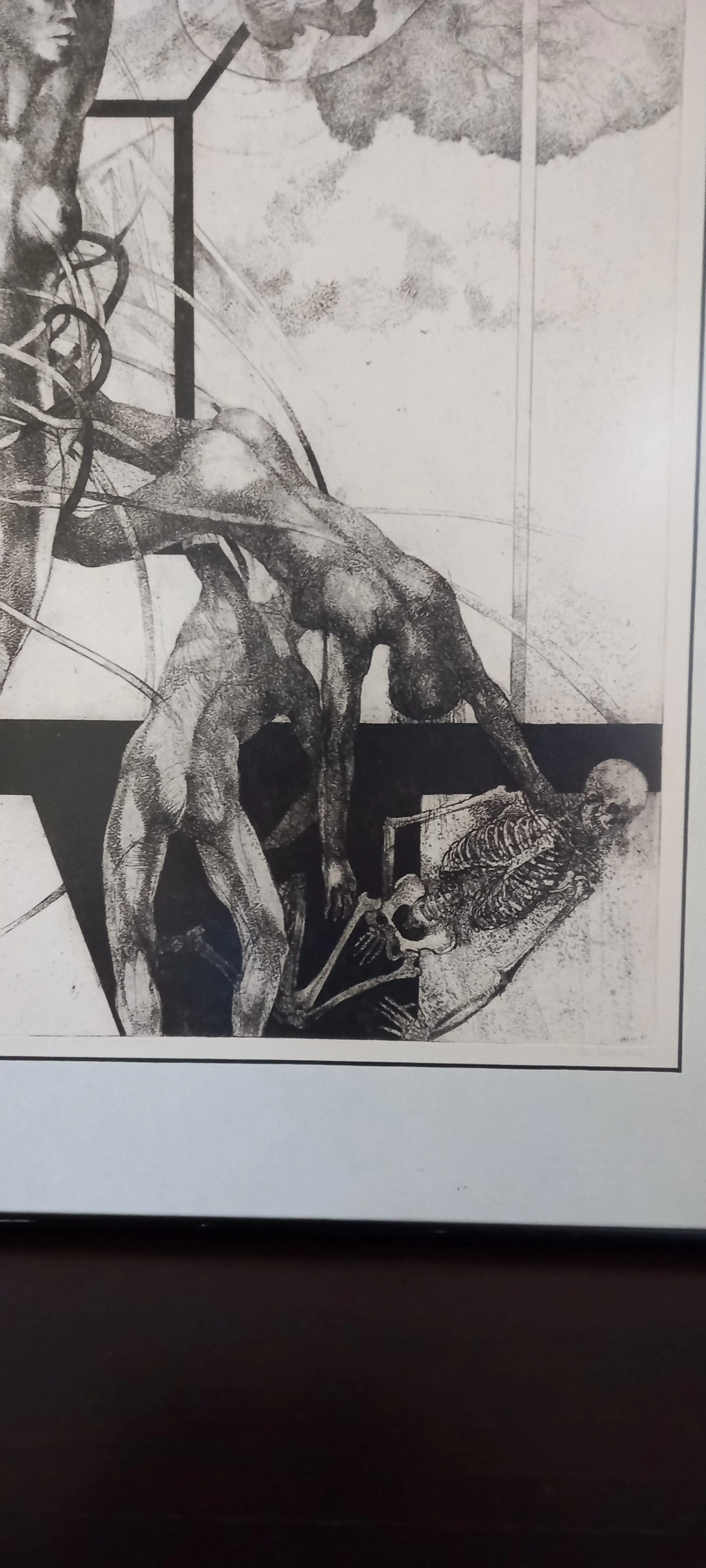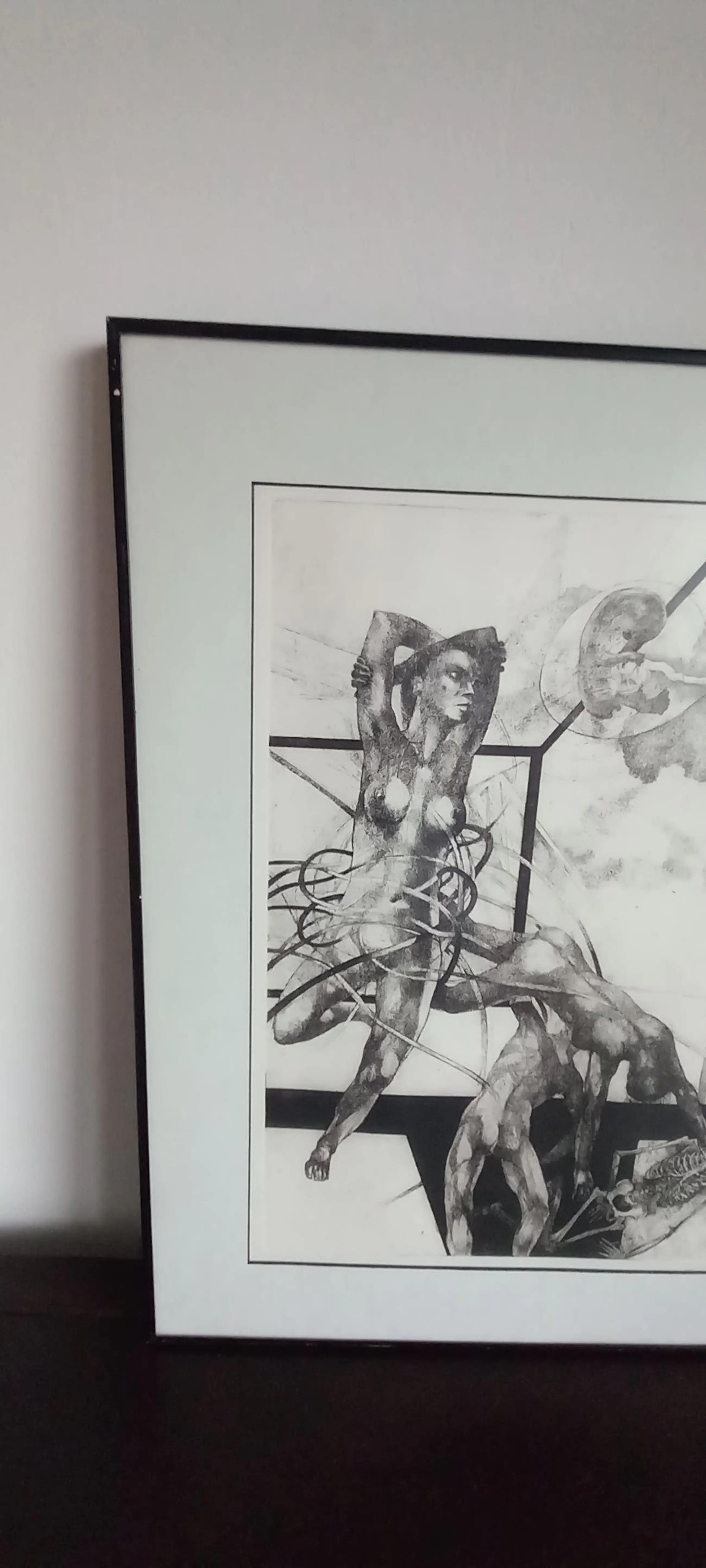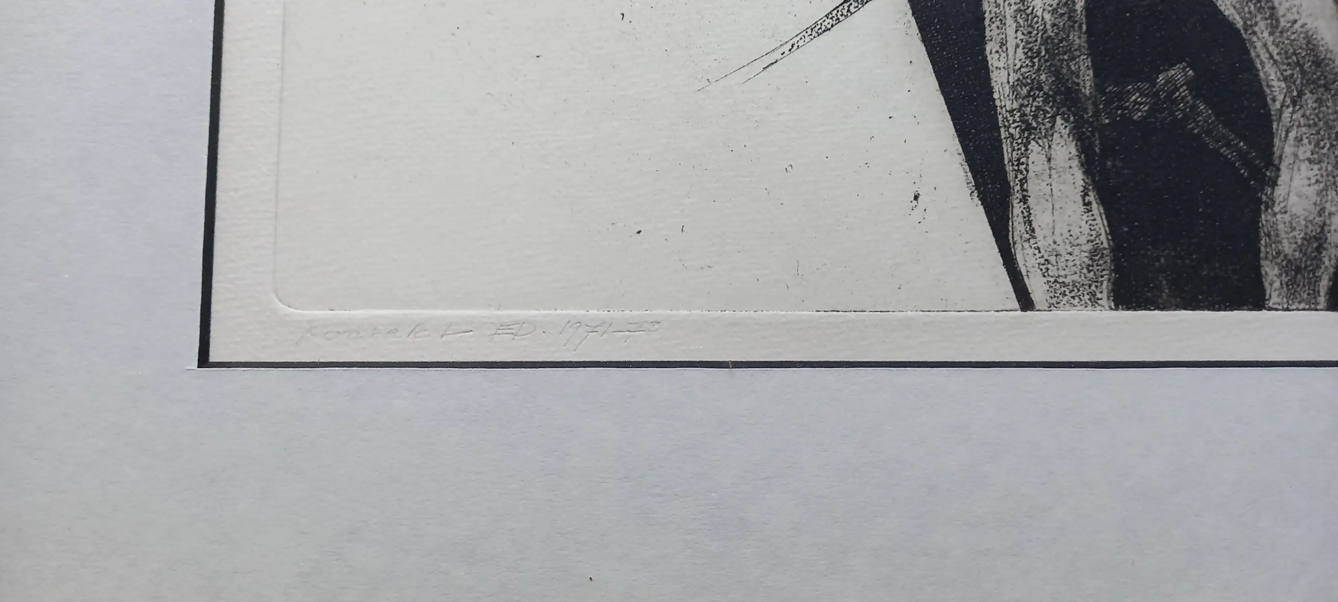 -Gesigneerd rechtsonder. oplage 1/73 -Ingelijst :- lijst met glasplaat.