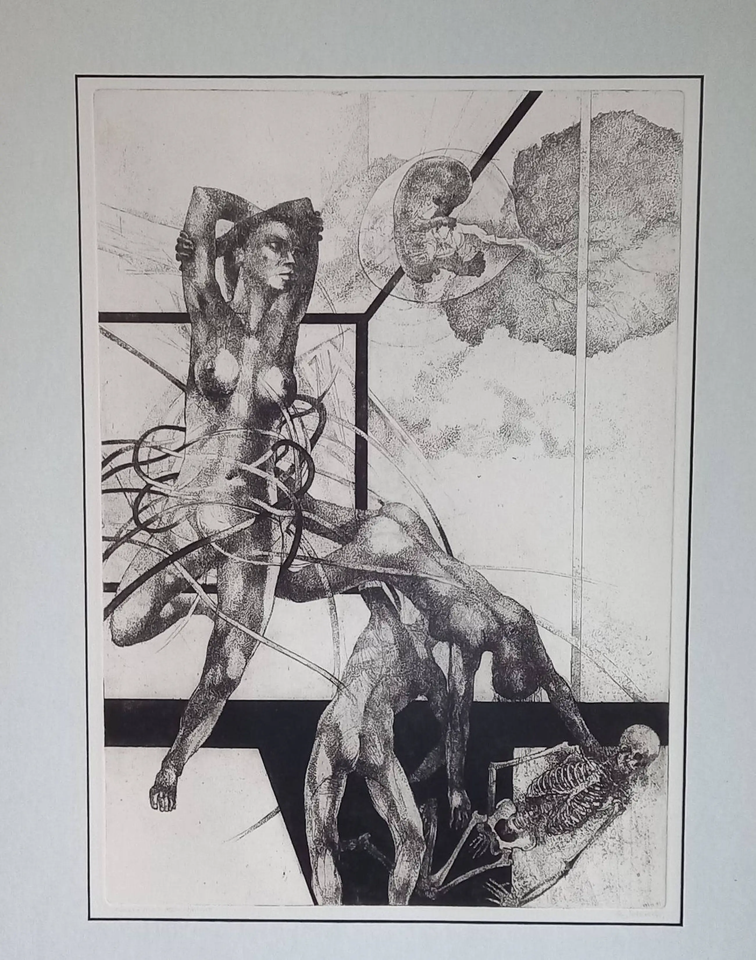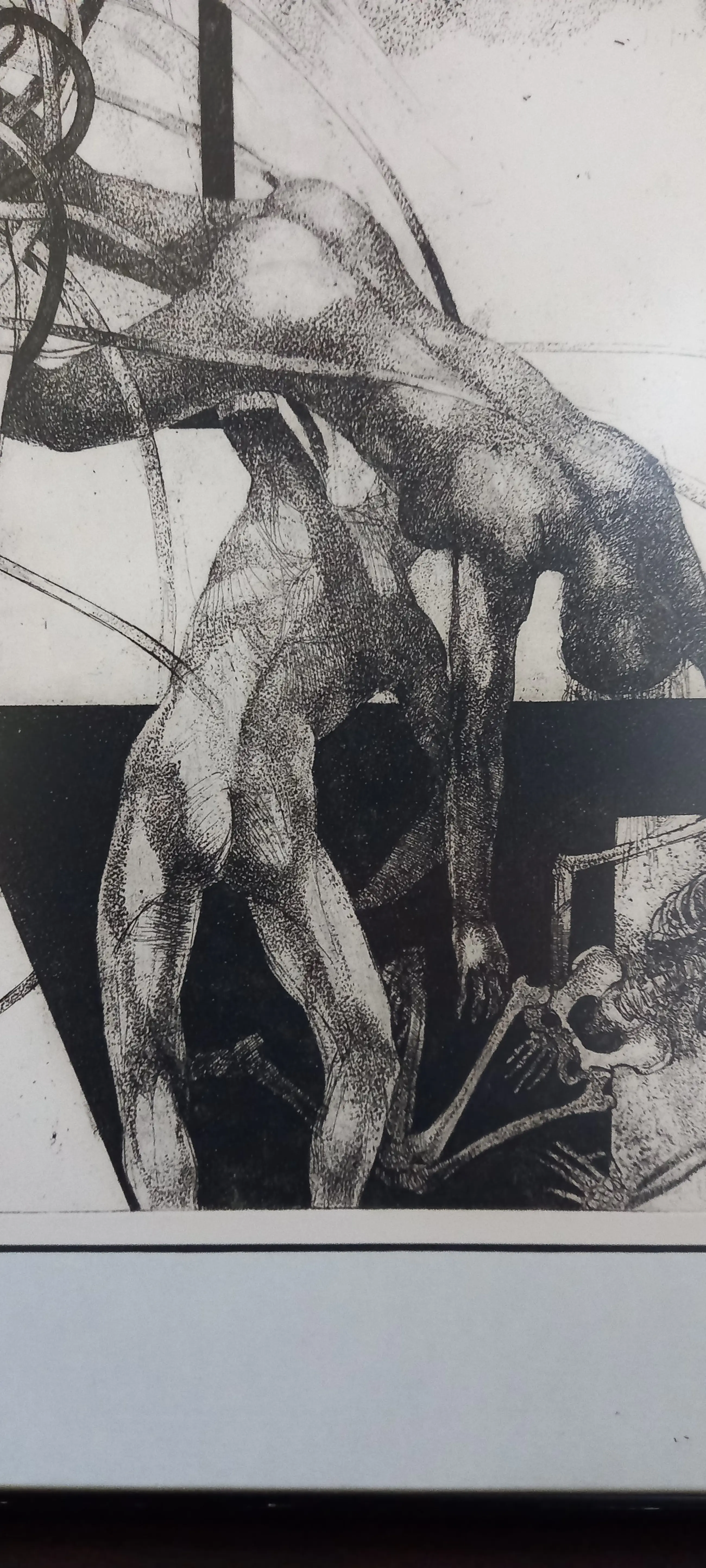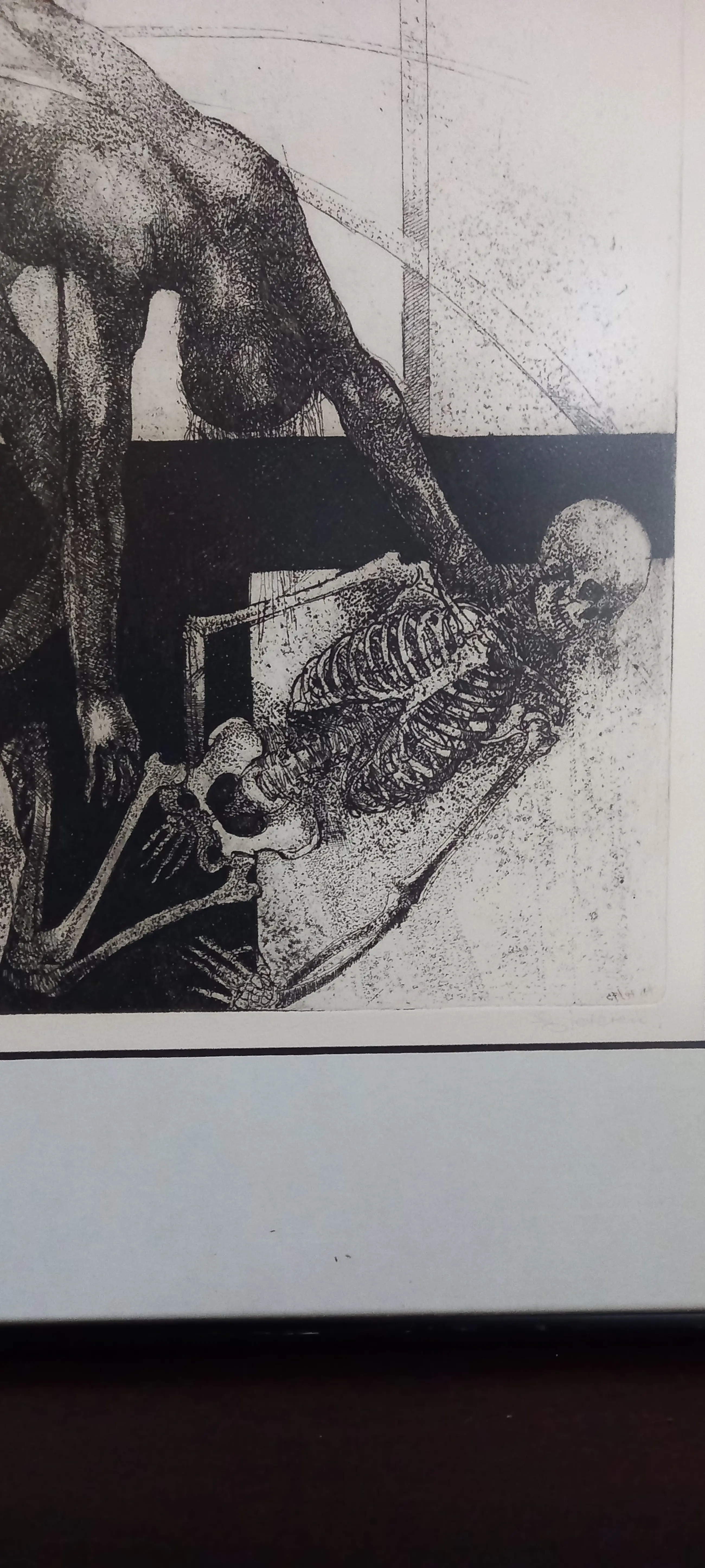 -Gesigneerd rechtsonder. oplage 1/73 -Ingelijst :- lijst met glasplaat.
