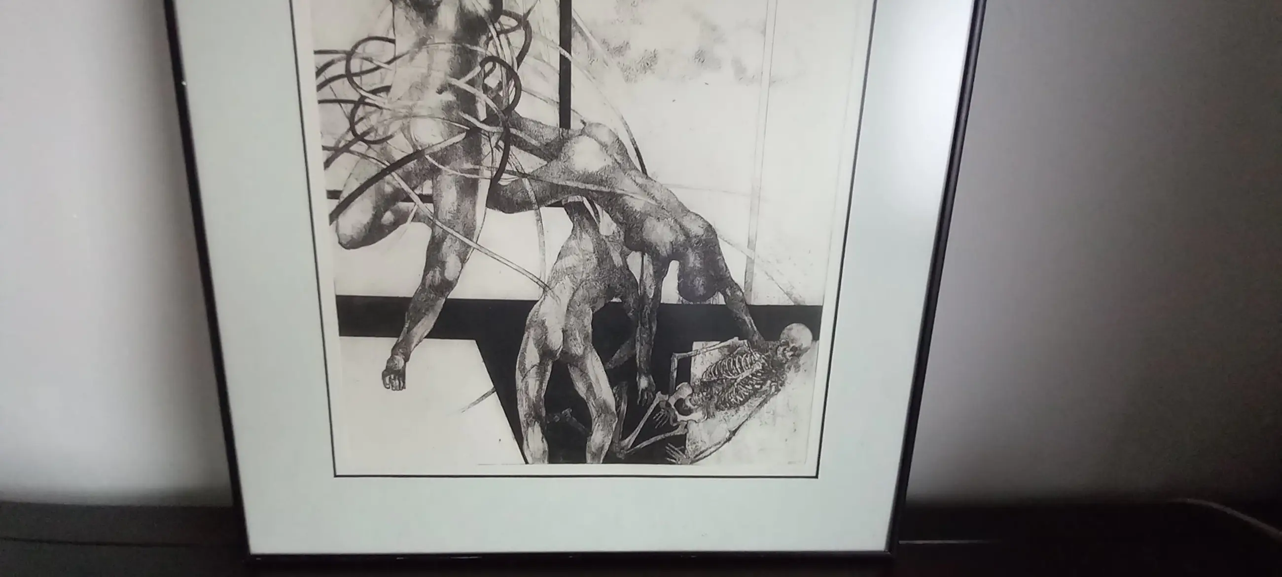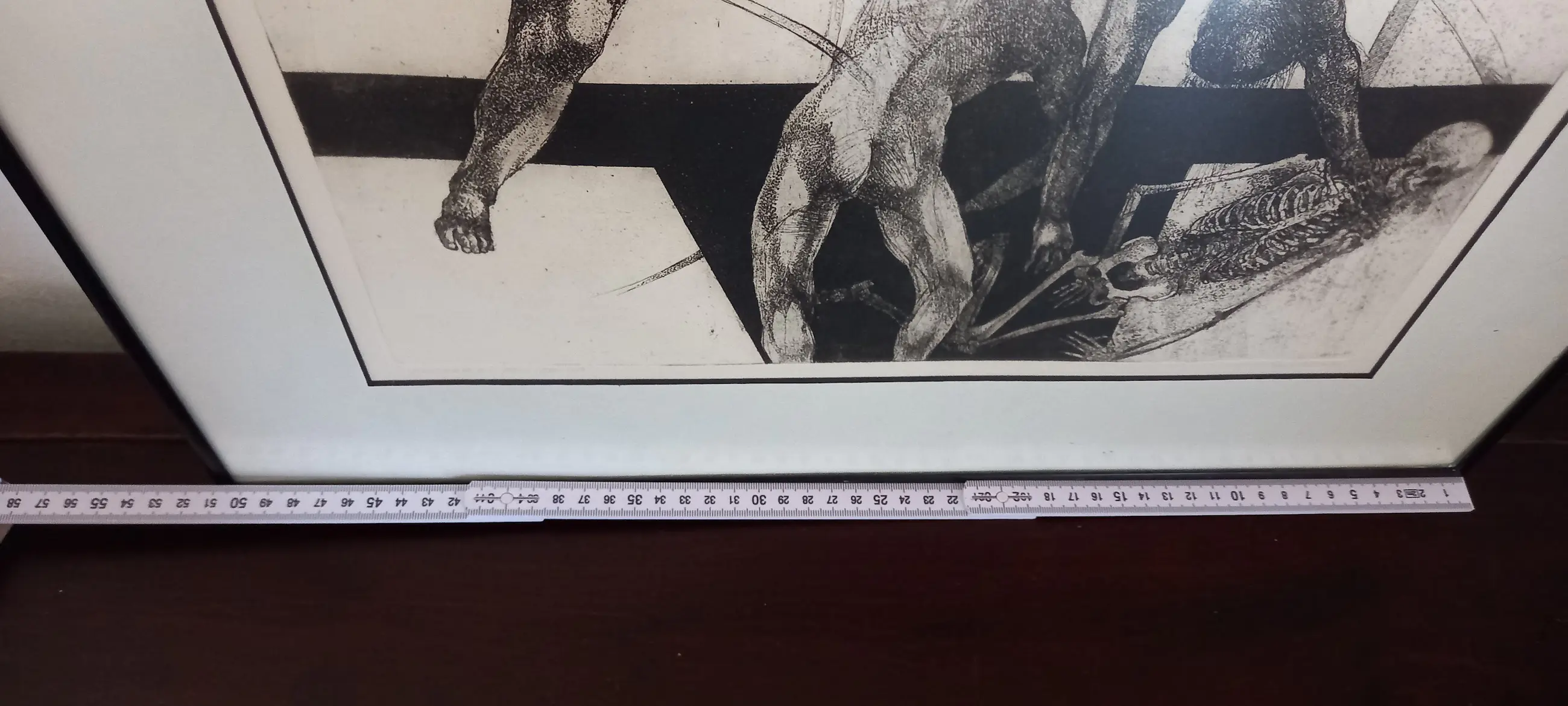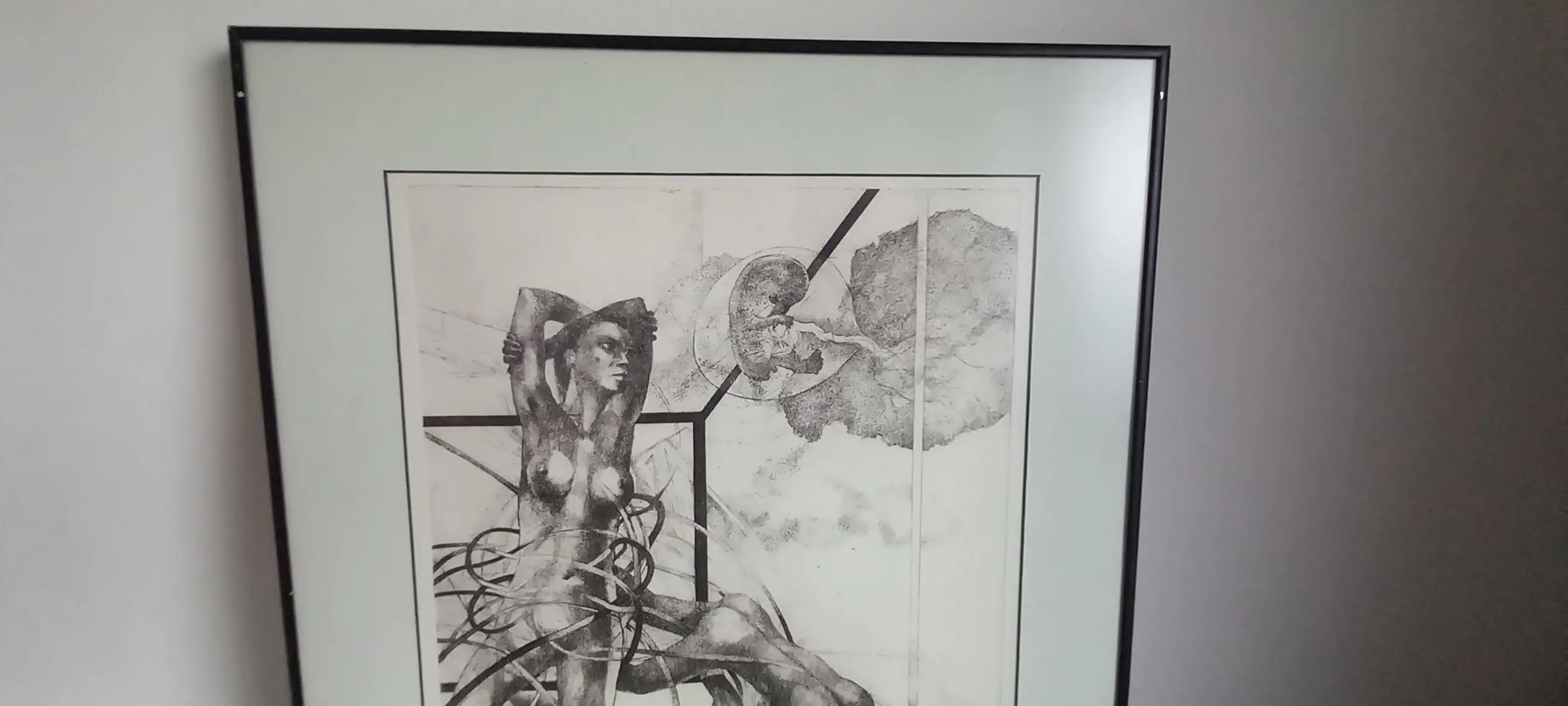 Een ingelijste Ets uit 20e eeuw van een ons onbekende kunstenaar of kunstenares.