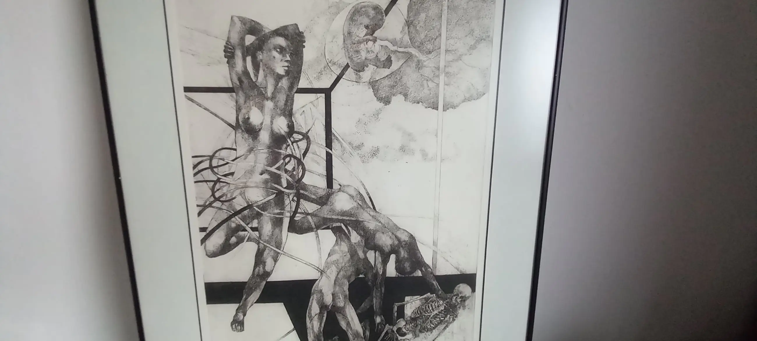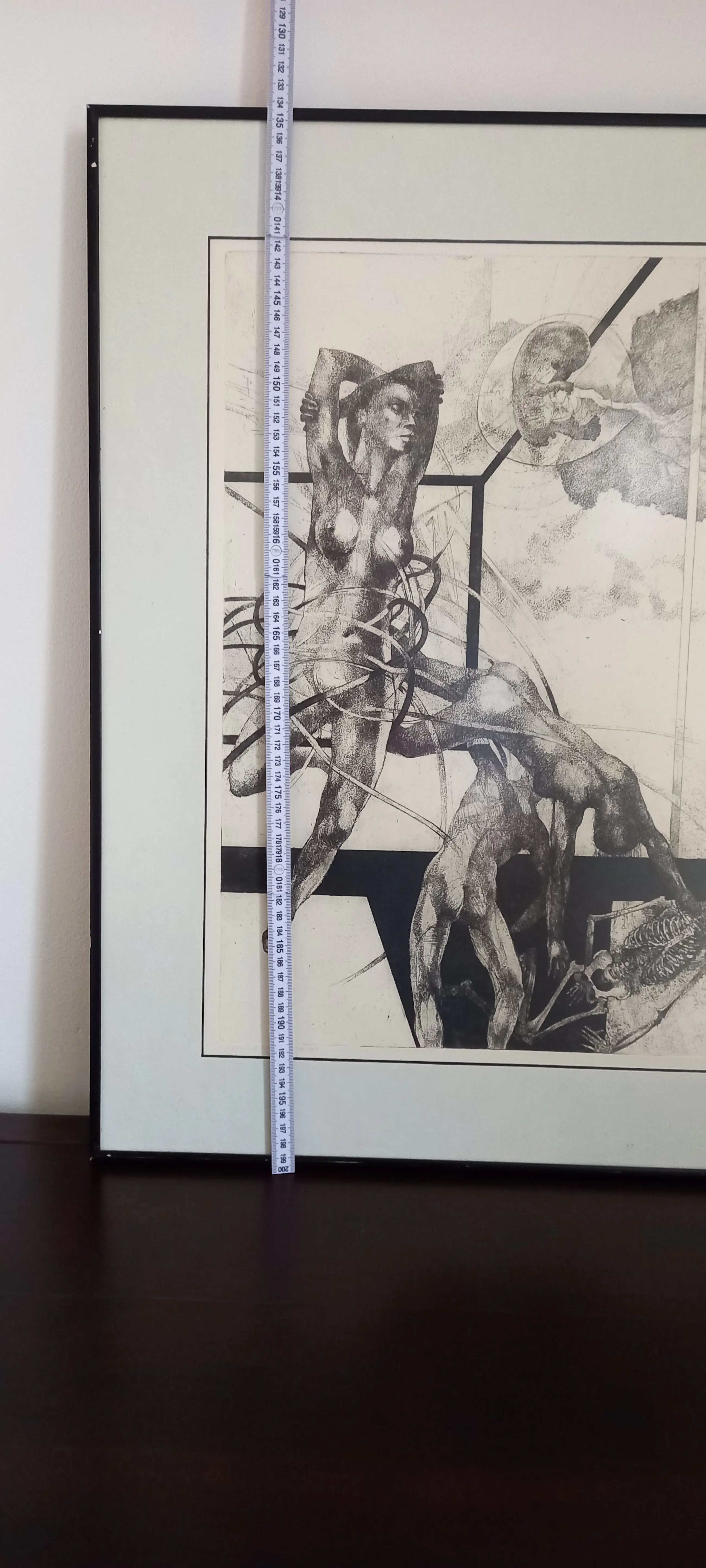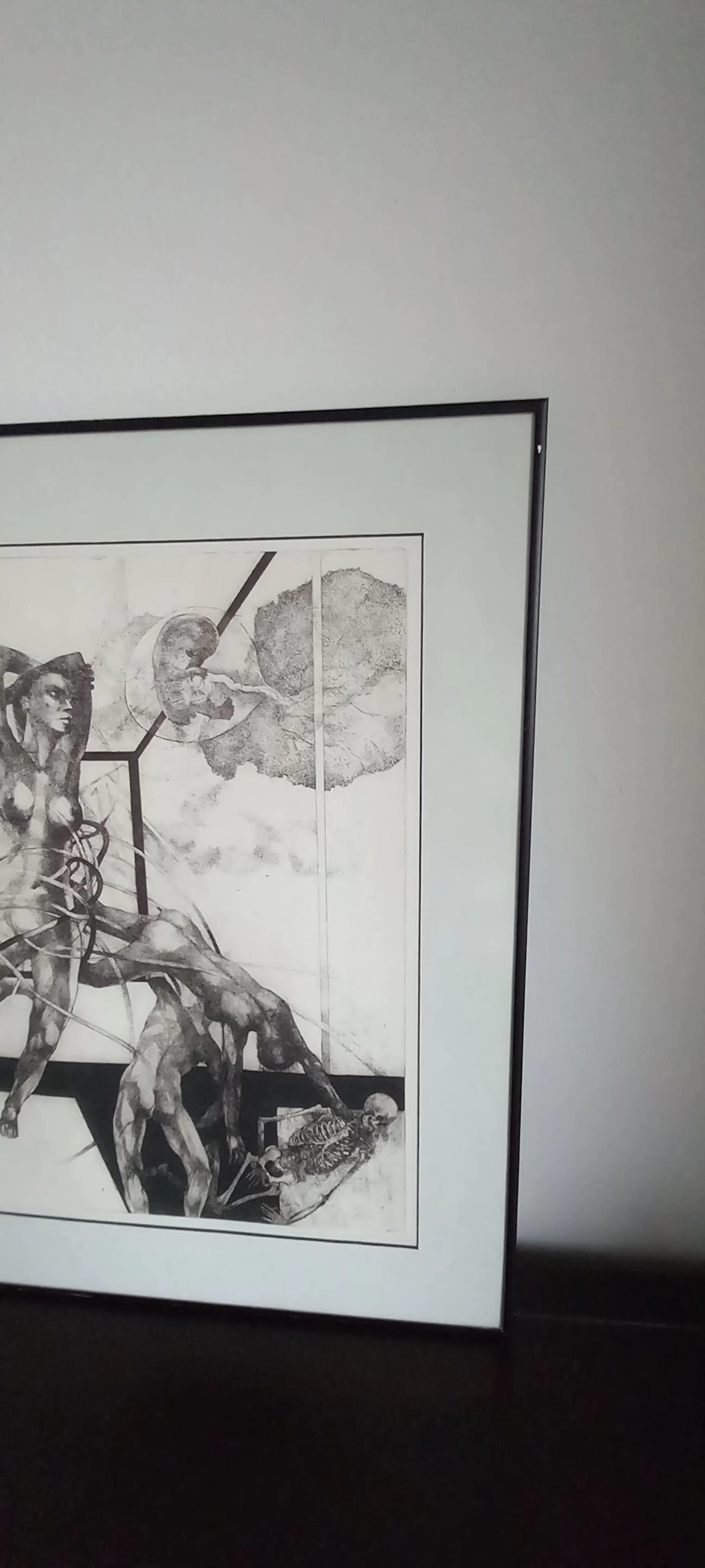 Een ingelijste Ets uit 20e eeuw van een ons onbekende kunstenaar of kunstenares.
