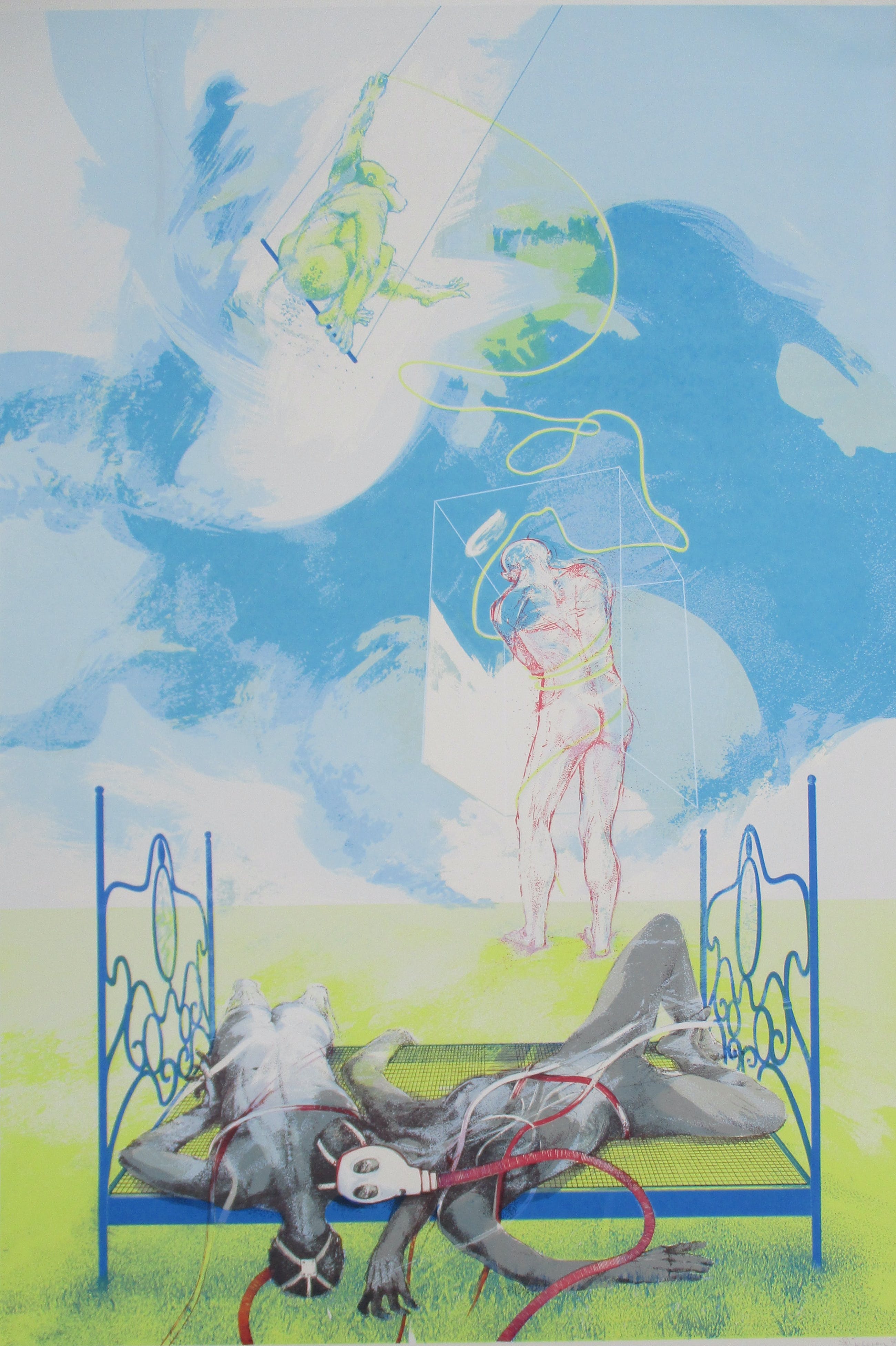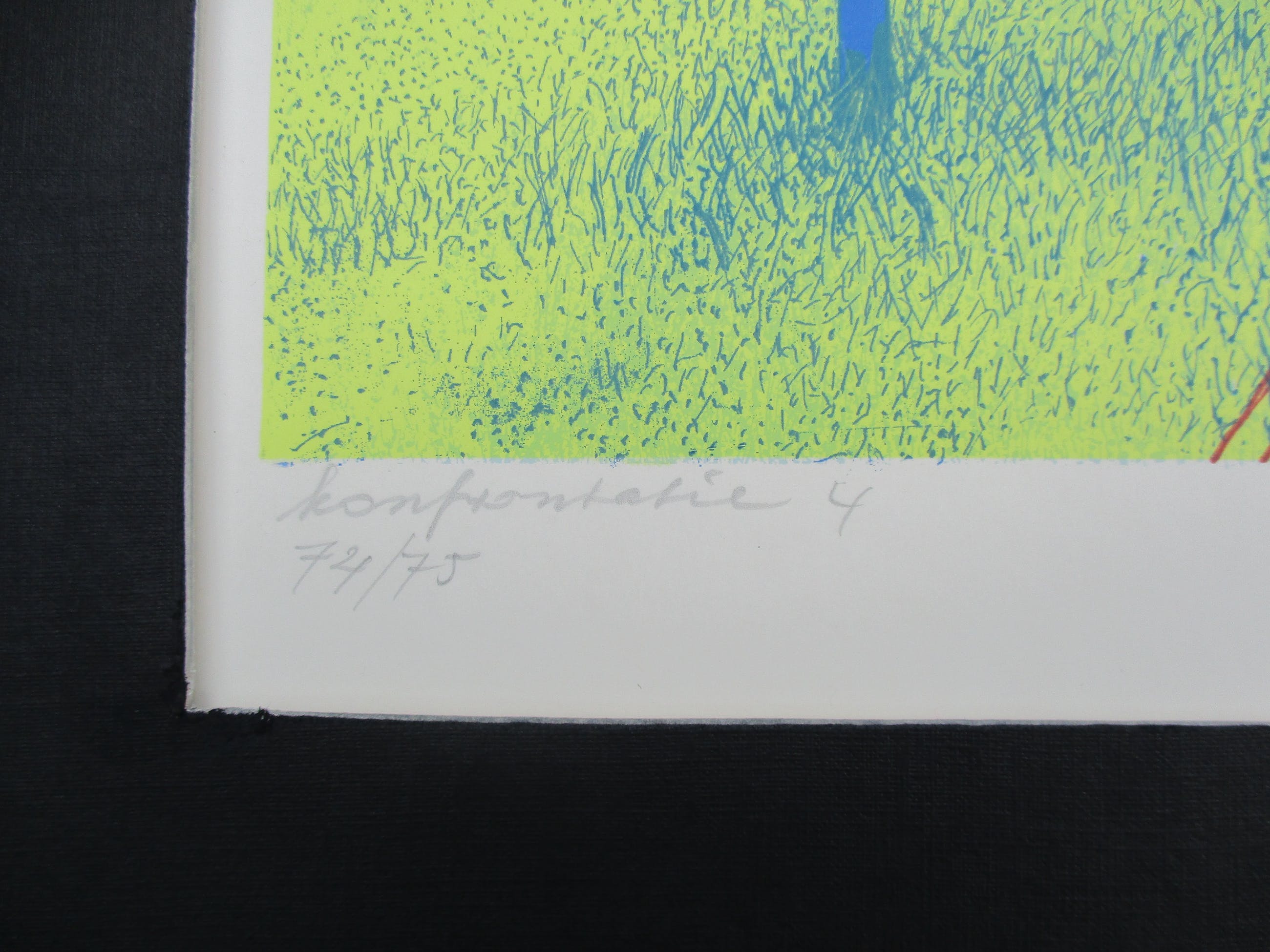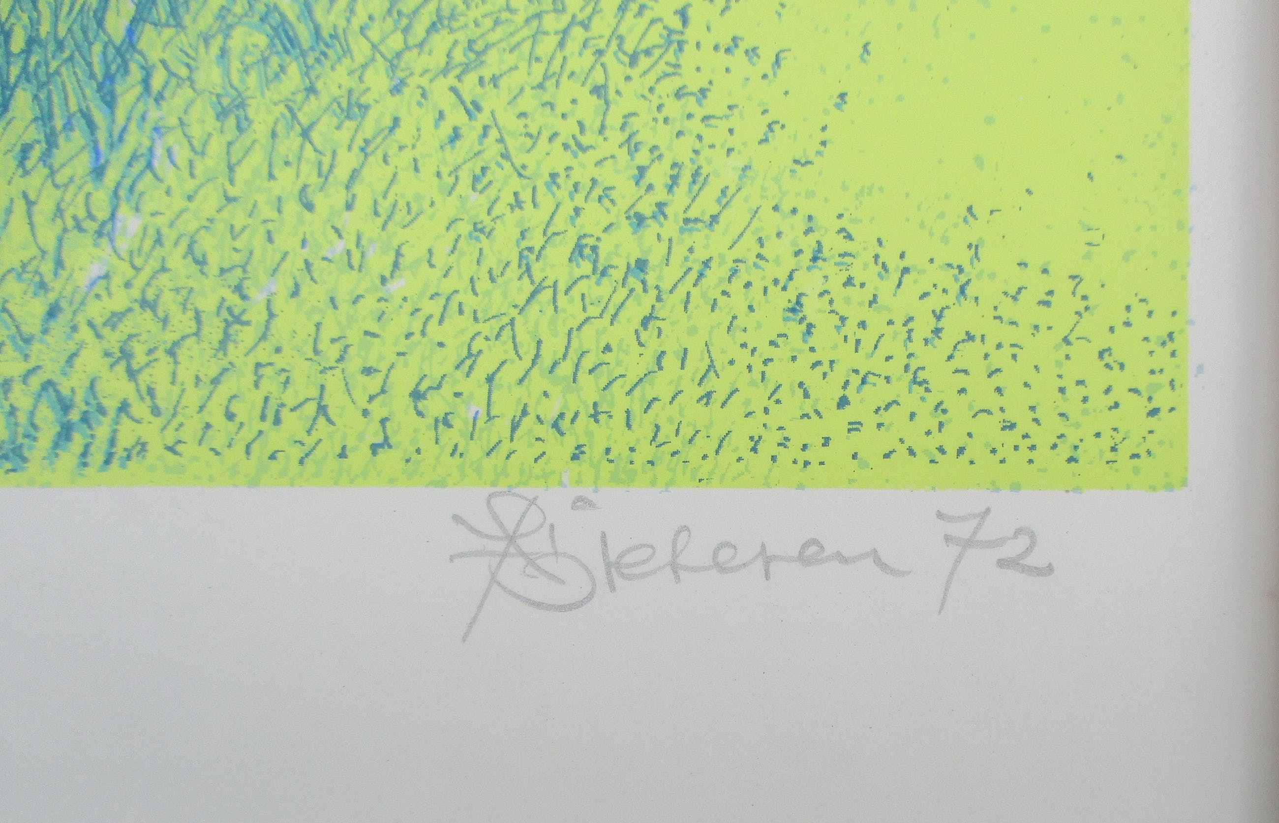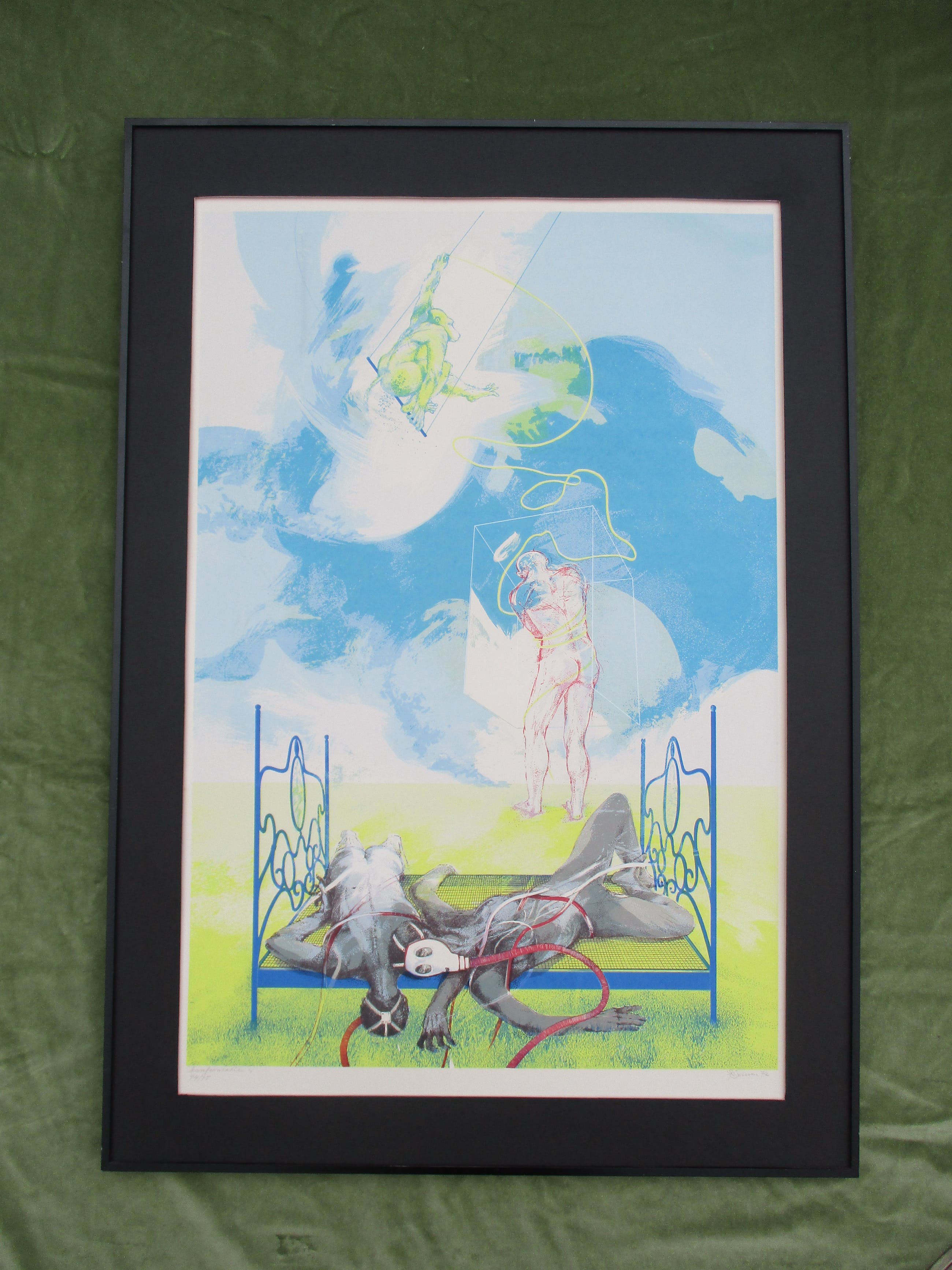 Deze litho is rechtsonder gesigneerd. Het werk is ingelijst met passe-partout en zit achter glas.