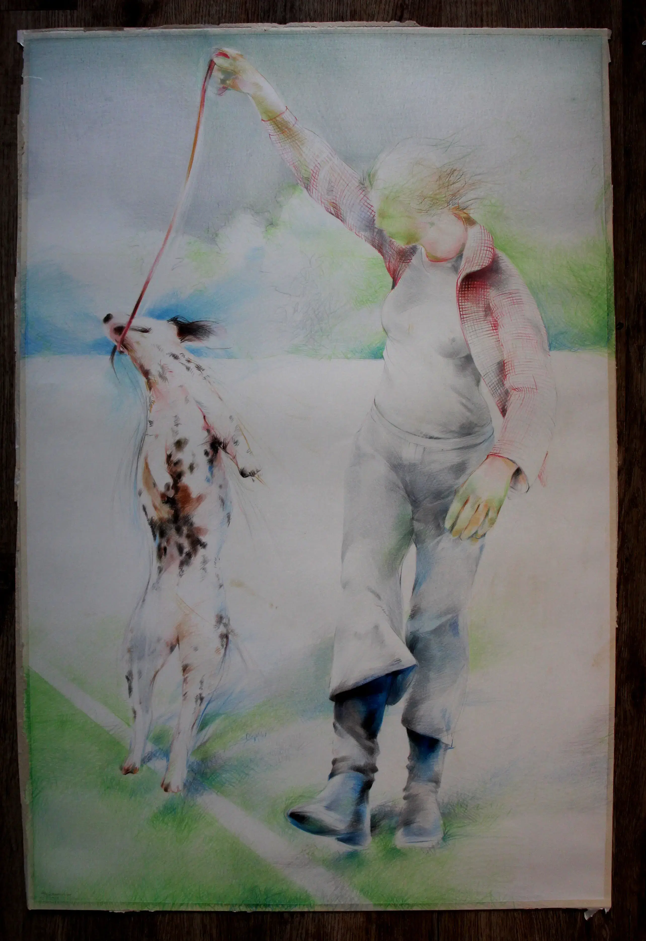 Tekening van Andre Dieteren. Titel: Het kunstje. Jaar: 1971. Afmetingen blad: H110 x b73.5cm. Het werk is, links onderaan, gesigneerd door de kunstenaar. De authenticiteit van het aangeboden werk wordt volledig gegarandeerd. Een certificaat van echtheid kan, op aanvraag, worden gemaild.