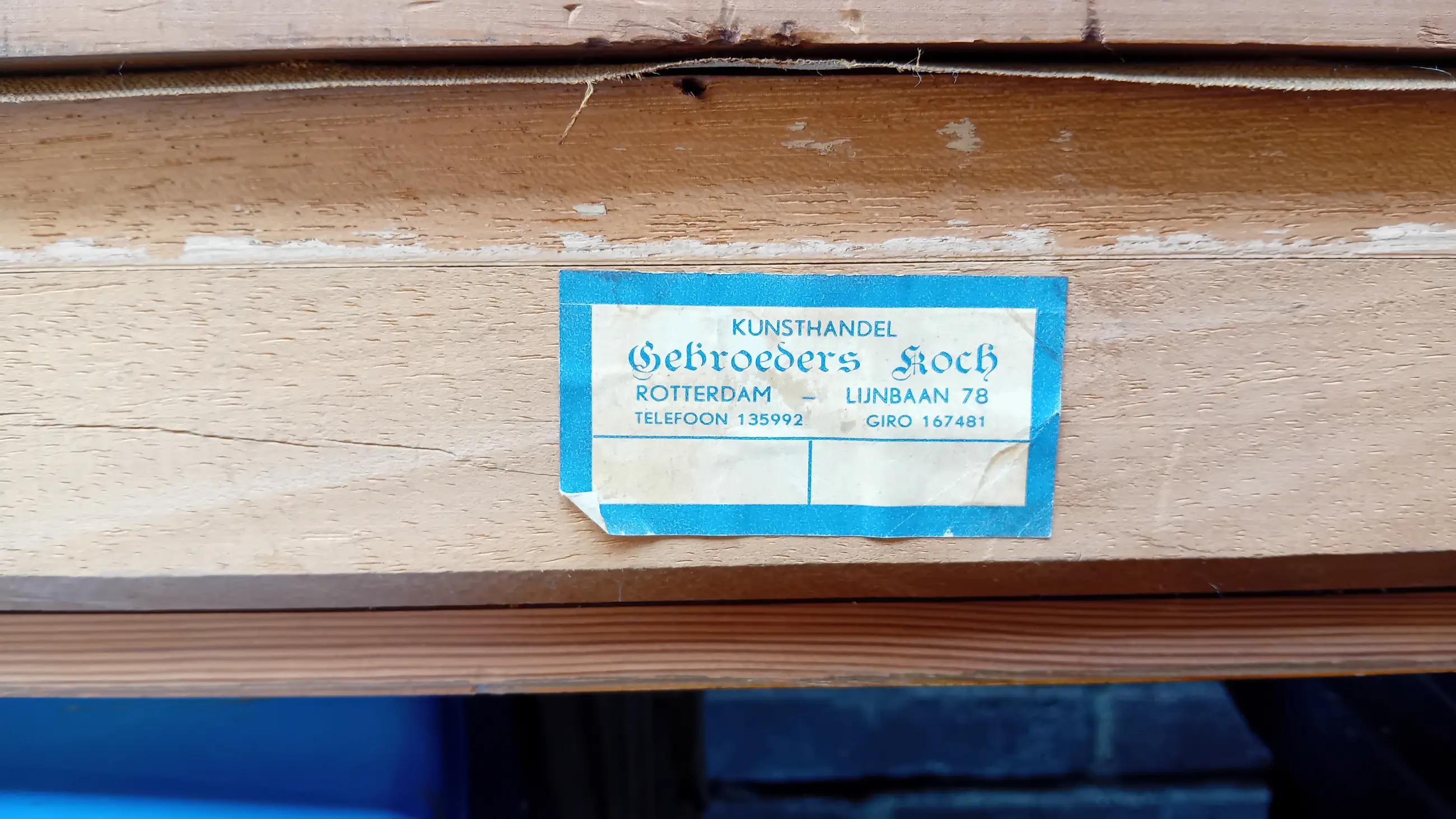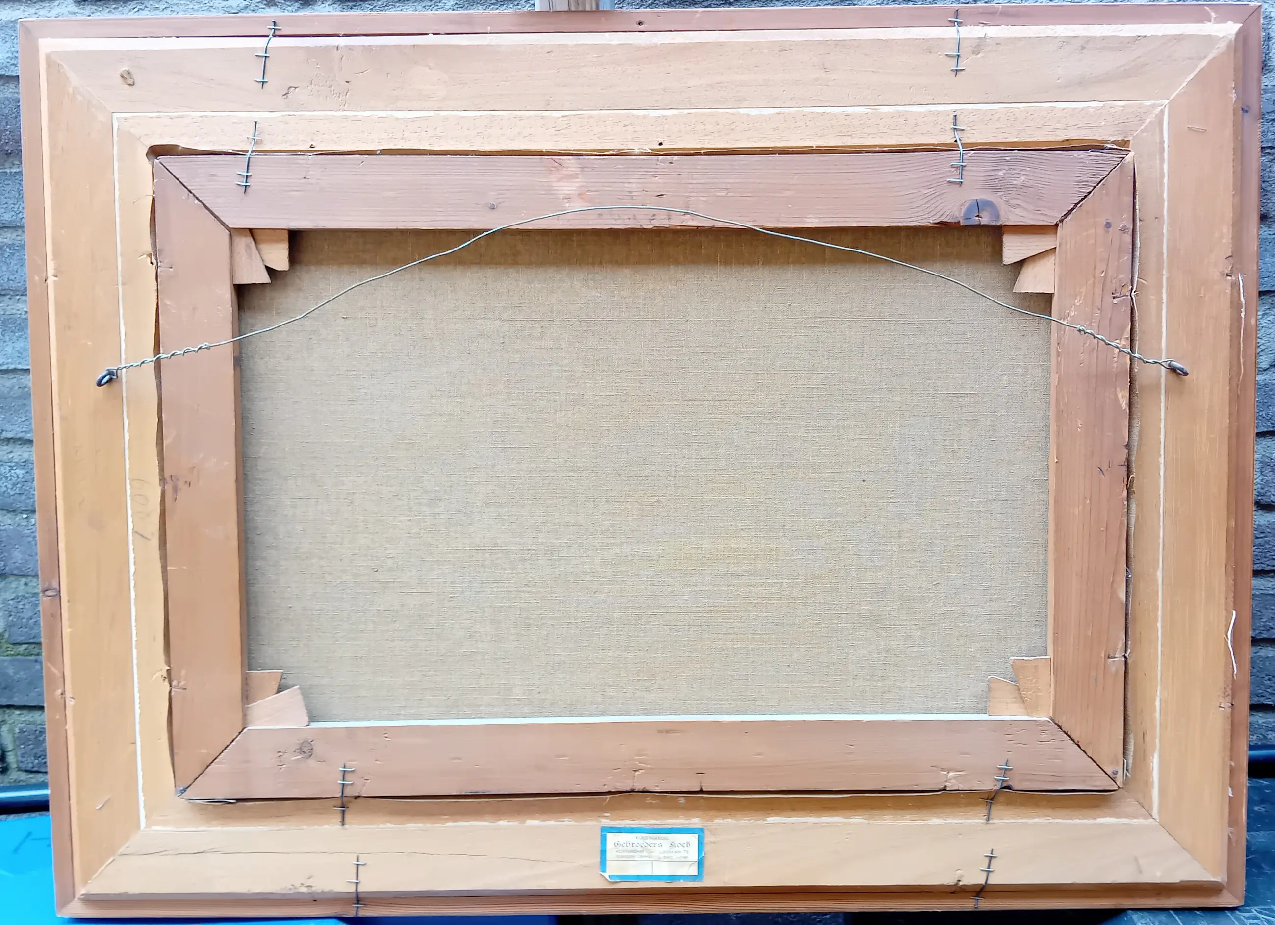 Aan de achterzijde bevindt zich het originele etiket van de gerenommeerde Kunsthandel Gebroeders Koch (Lijnbaan 78, Rotterdam). Dit etiket onderstreept de kwaliteit en de authenticiteit van het werk, aangezien deze kunsthandel decennialang een begrip was in de Nederlandse kunstwereld.