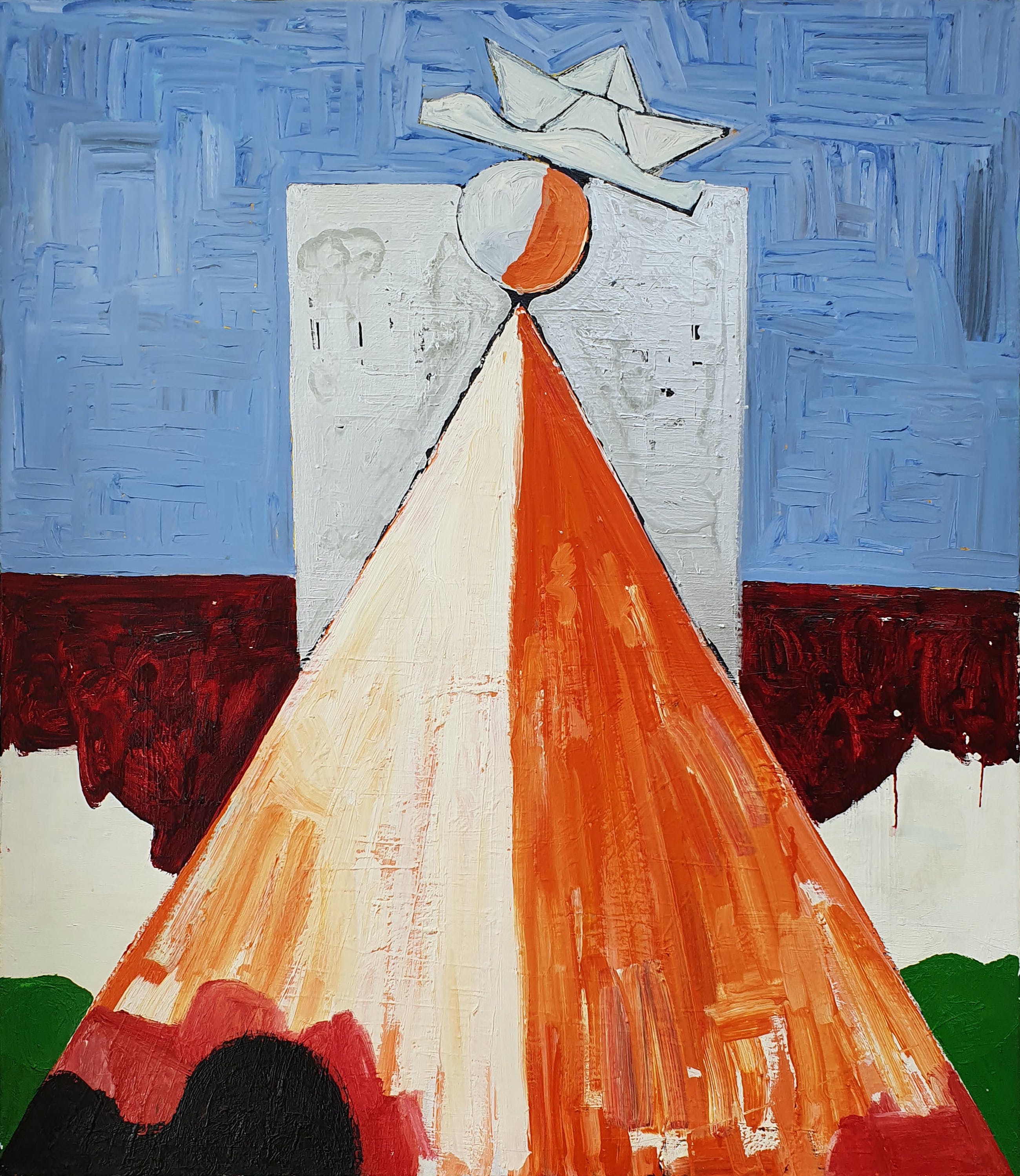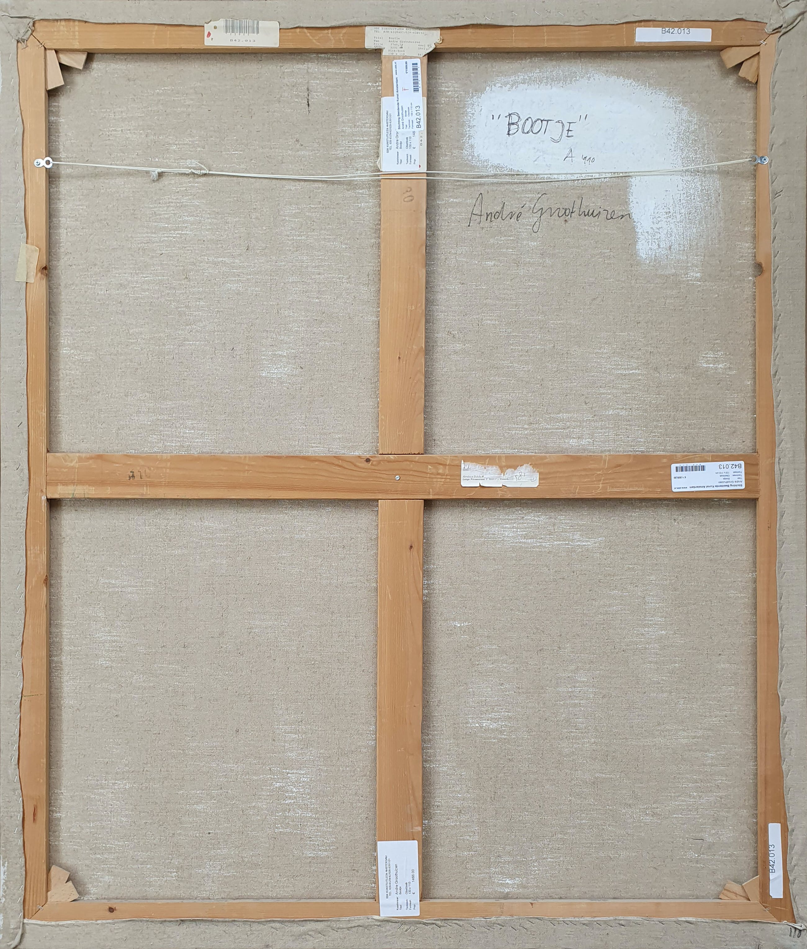 Kunstenaar: Andre Groothuizen Techniek: Acryl op doek Oplage: Unicum Gesigneerd: Verso Afwerking: Niet ingelijst Afmeting voorstelling (HxB): 130 x 110 cm Conditie werk: Goed Referentie: 00892