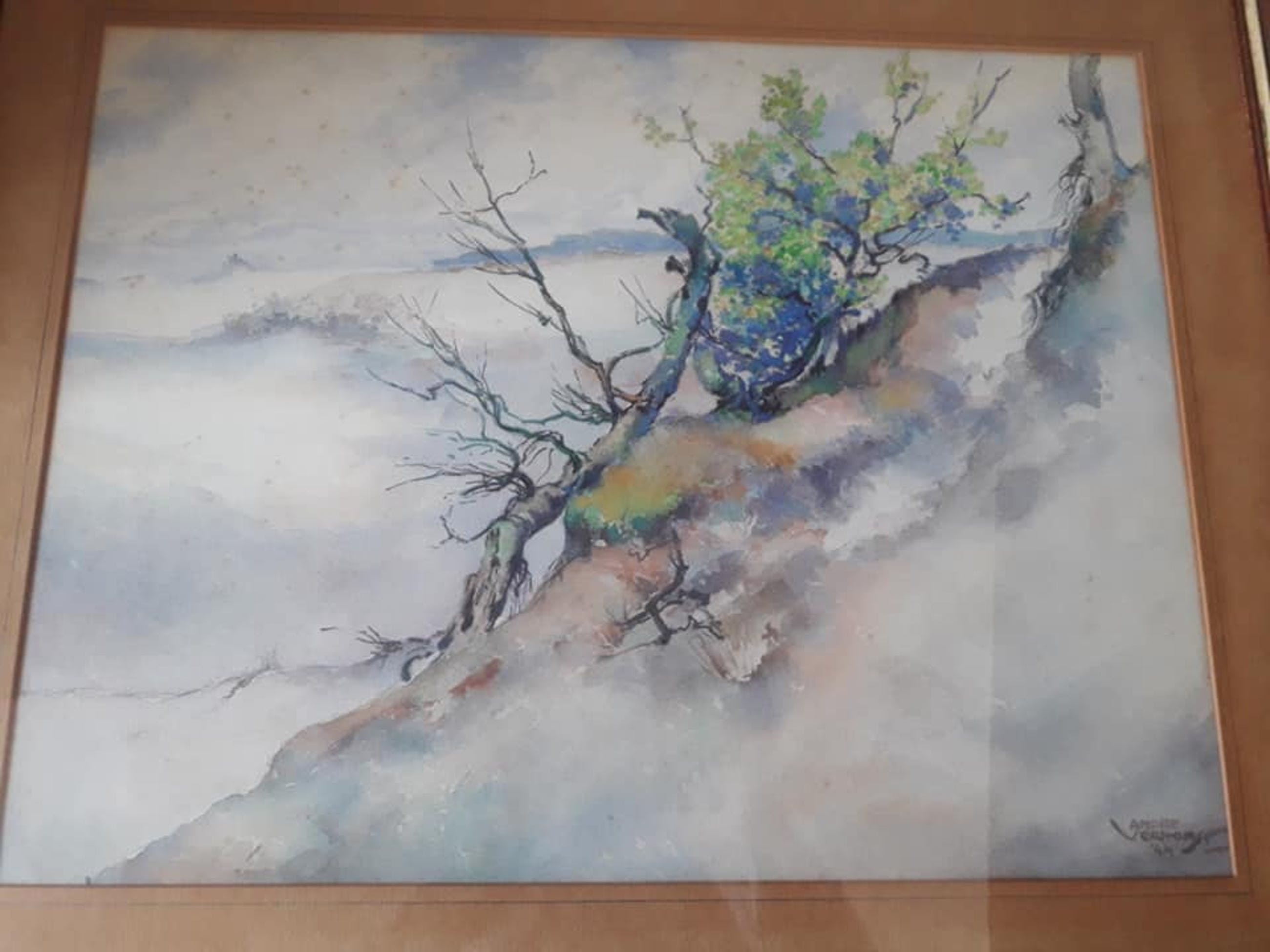 Oude aquarel van Andreas Jacobus (André) Verhorst (1889-1977). Gedateerd 1944. Zit nog in de originele lijst achter glas. Een aquarel van deze schilder kost bij Simonis en Buunk 1750,- euro!Door het formaat en de glasplaat is ophalen in Bodegraven of IJmuiden de beste optie. Bezorgen kan in overleg. Opsturen is ook mogelijk maar dan is glasbreuk voor de koper. Wordt dan wel verzonden in een op maat gemaakte kist om beschadiging te voorkomen.