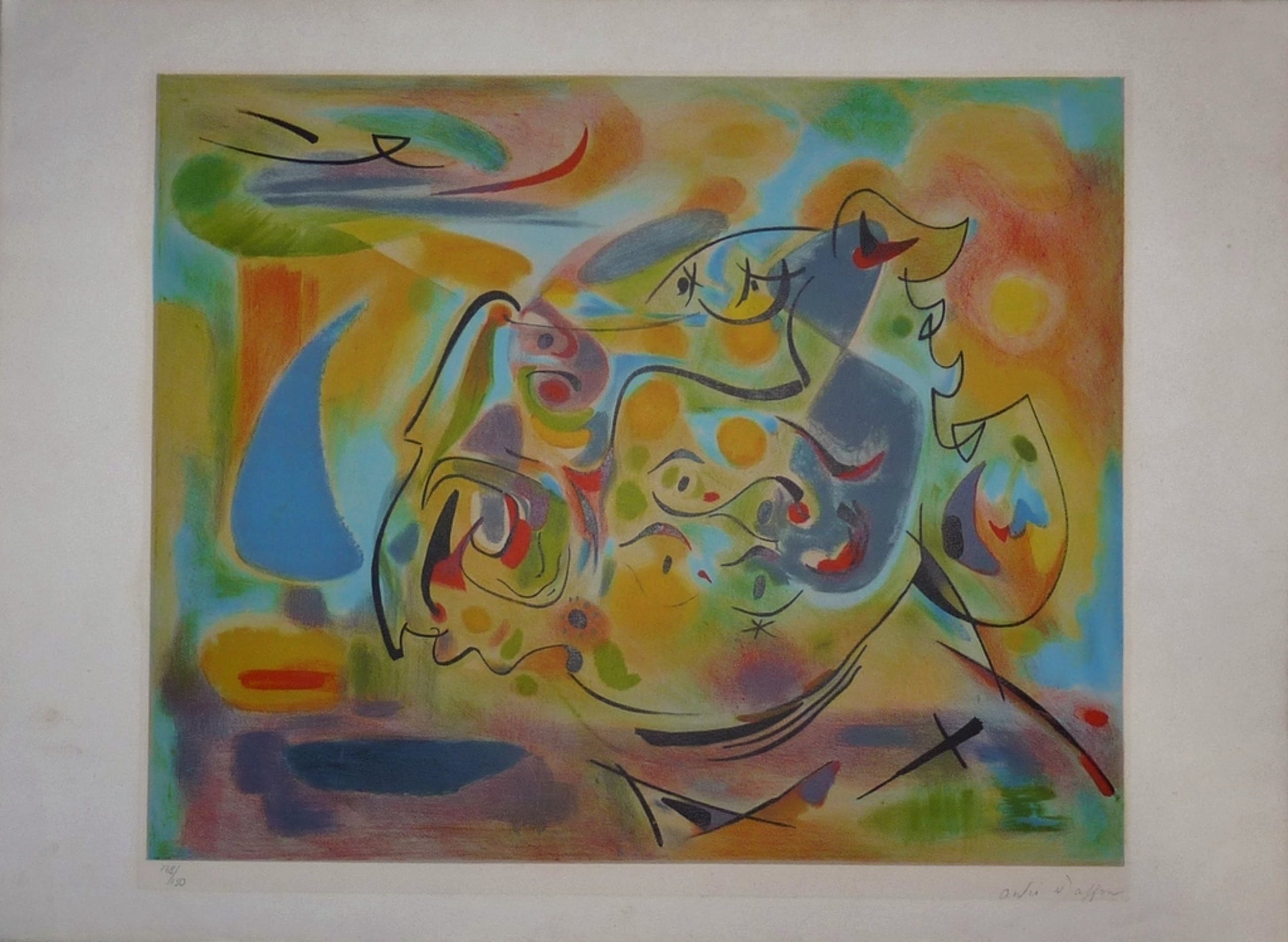 * Zeer fraaie lithografie van de kunstenaar Andre Masson. Een van de betere werken van deze kunstenaar. Het werk is gesigneerd en genummerd met 128 in een oplage van 150 stuks. Jaartal is mij niet bekend.