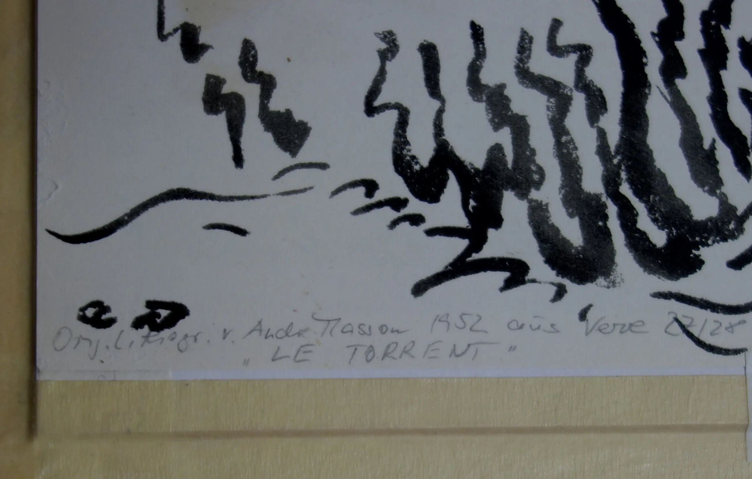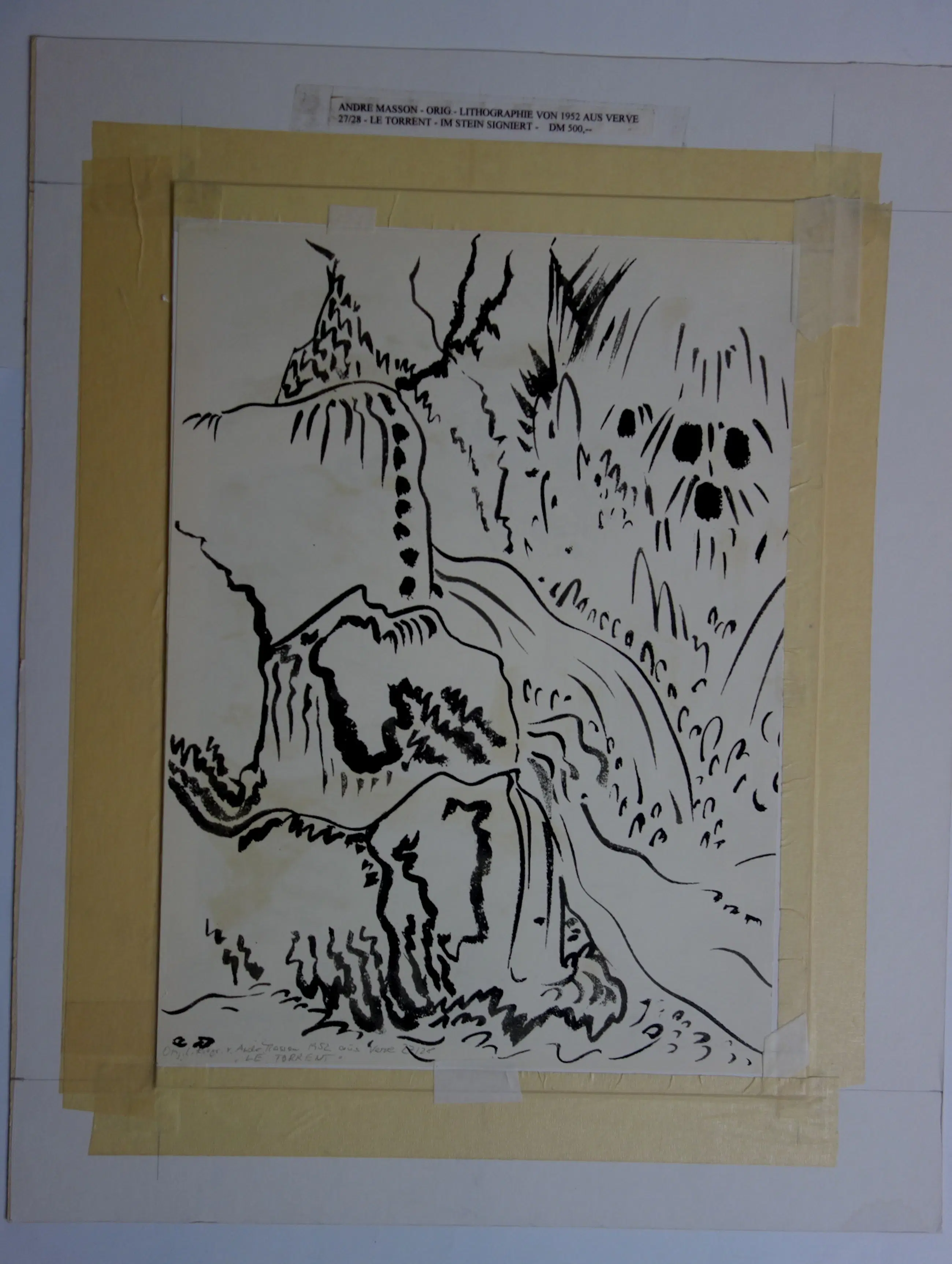 Originele lithografie uit 1952 van Verve, Le Torrent. Gesigneerd in de steen 27/28. De totale afmetingen zijn 54 cm x 40 cm. De afmetingen van de afbeelding zijn 28 cm x 27,5 cm.