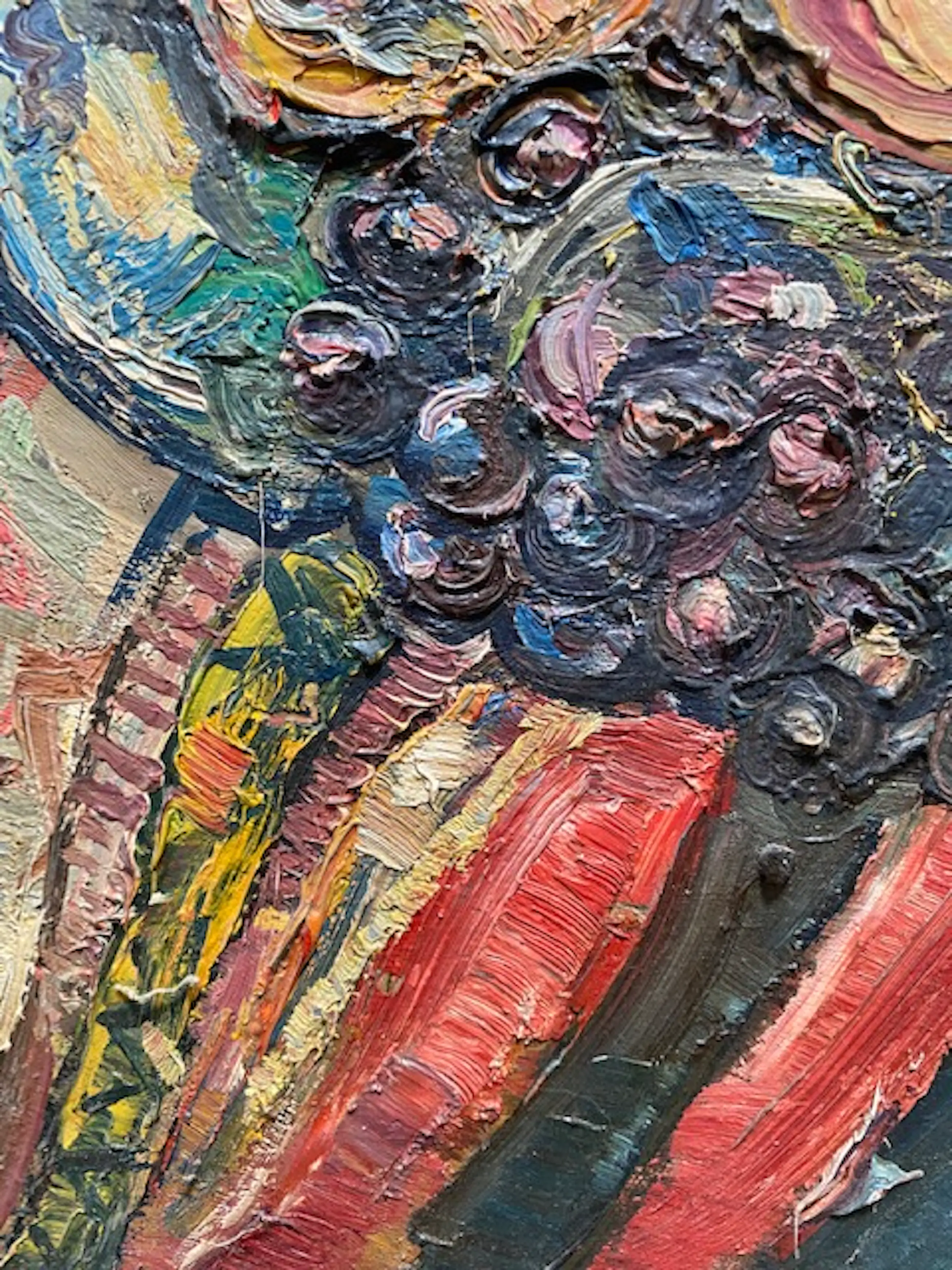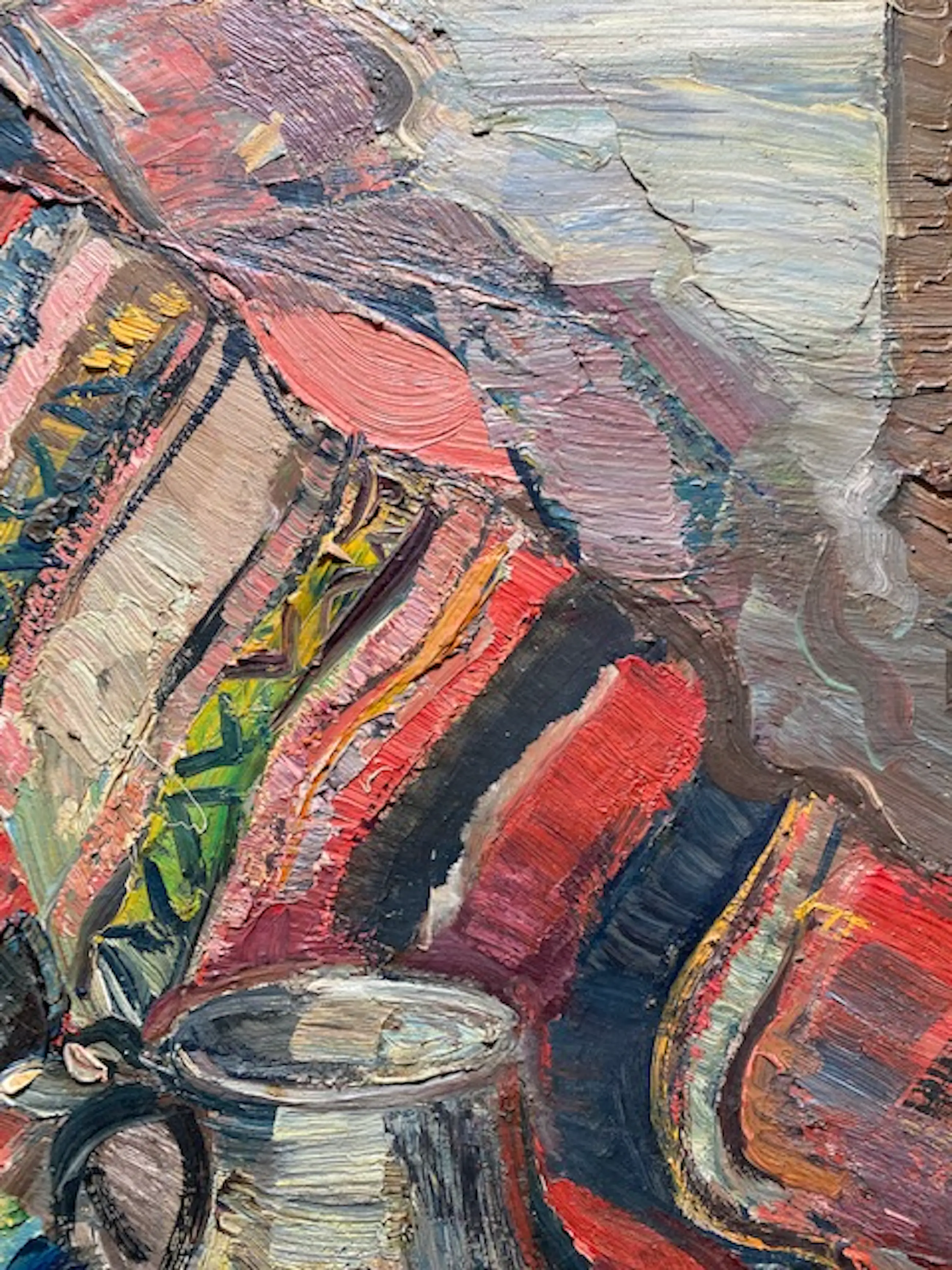 Zowel het paneel als de originele lijst zijn in goede staat maar vertonen wel de gebruikelijke sporen van ouderdom. Het werk is zeer expressief , pasteus en kleurrijk geschilderd.