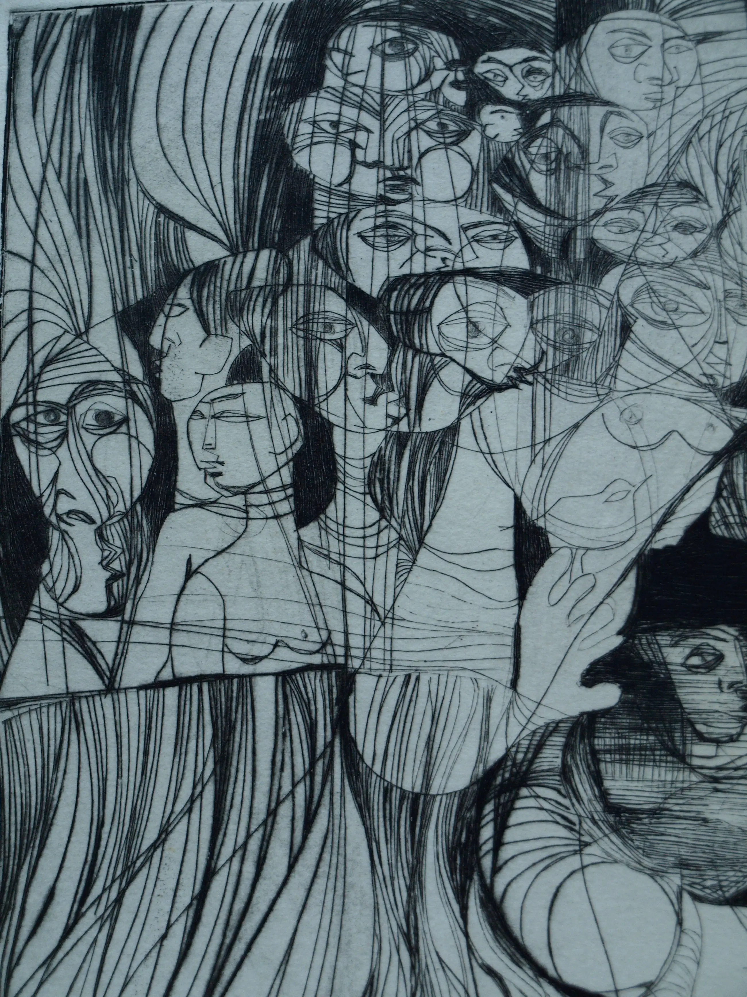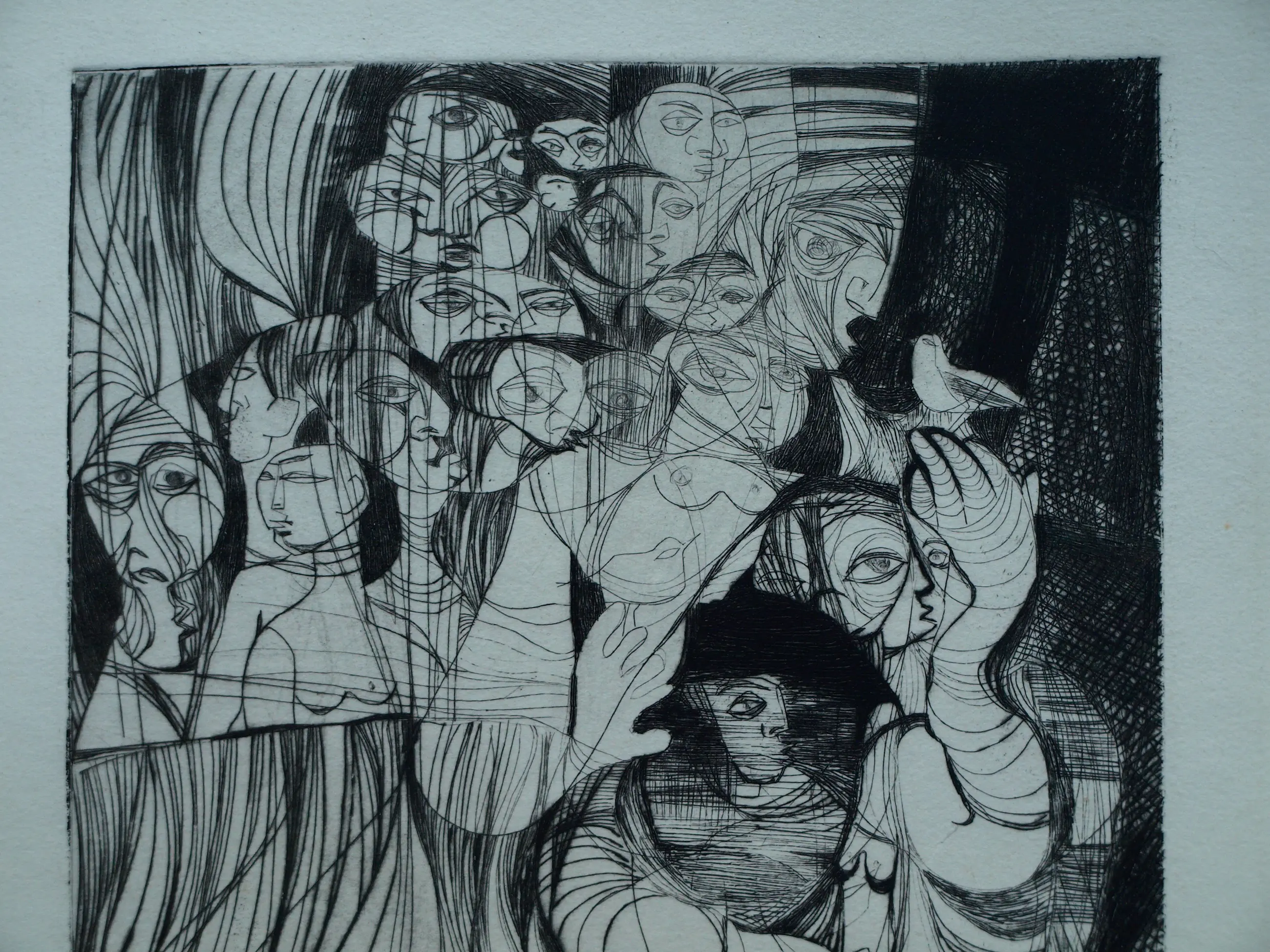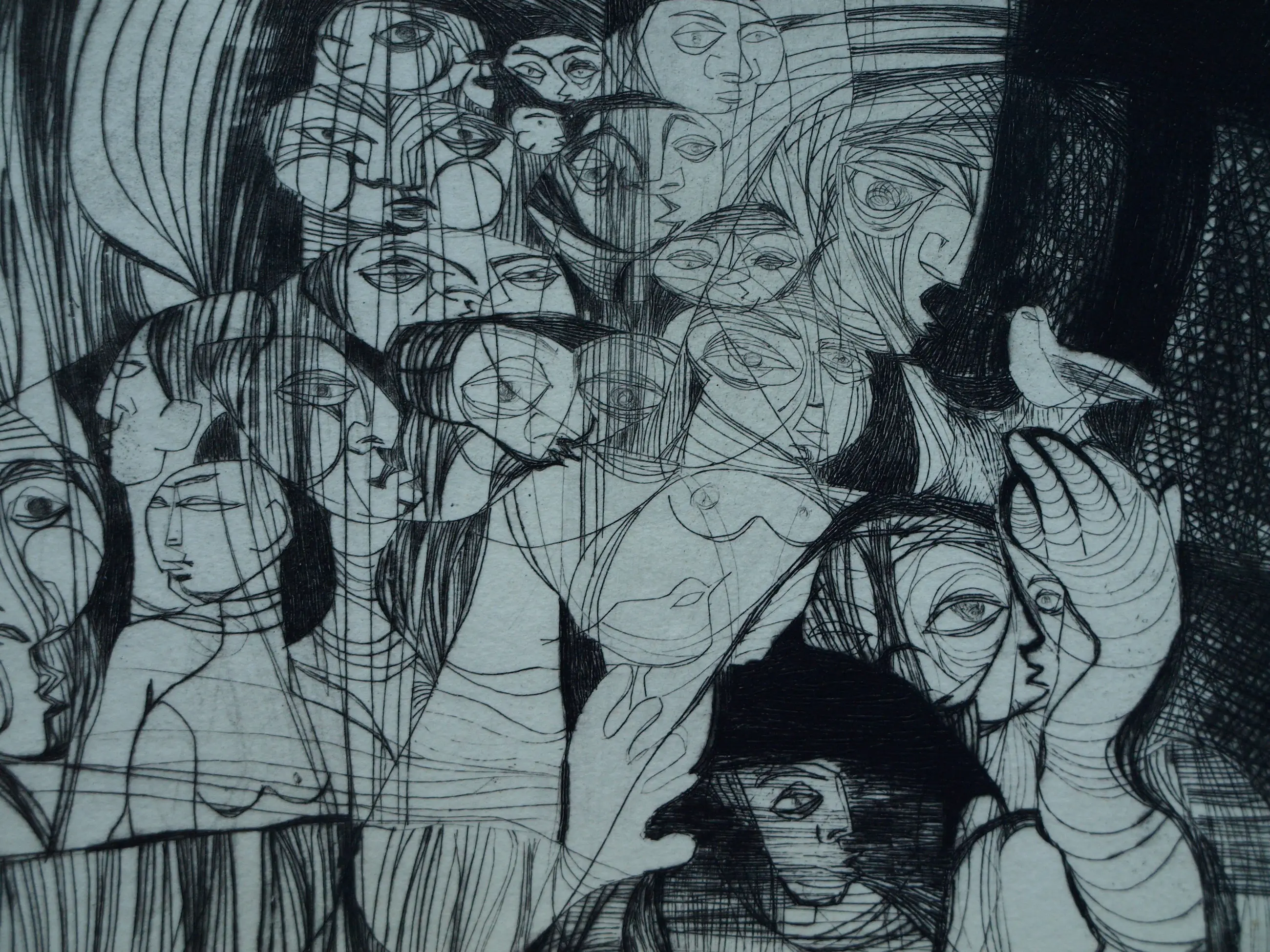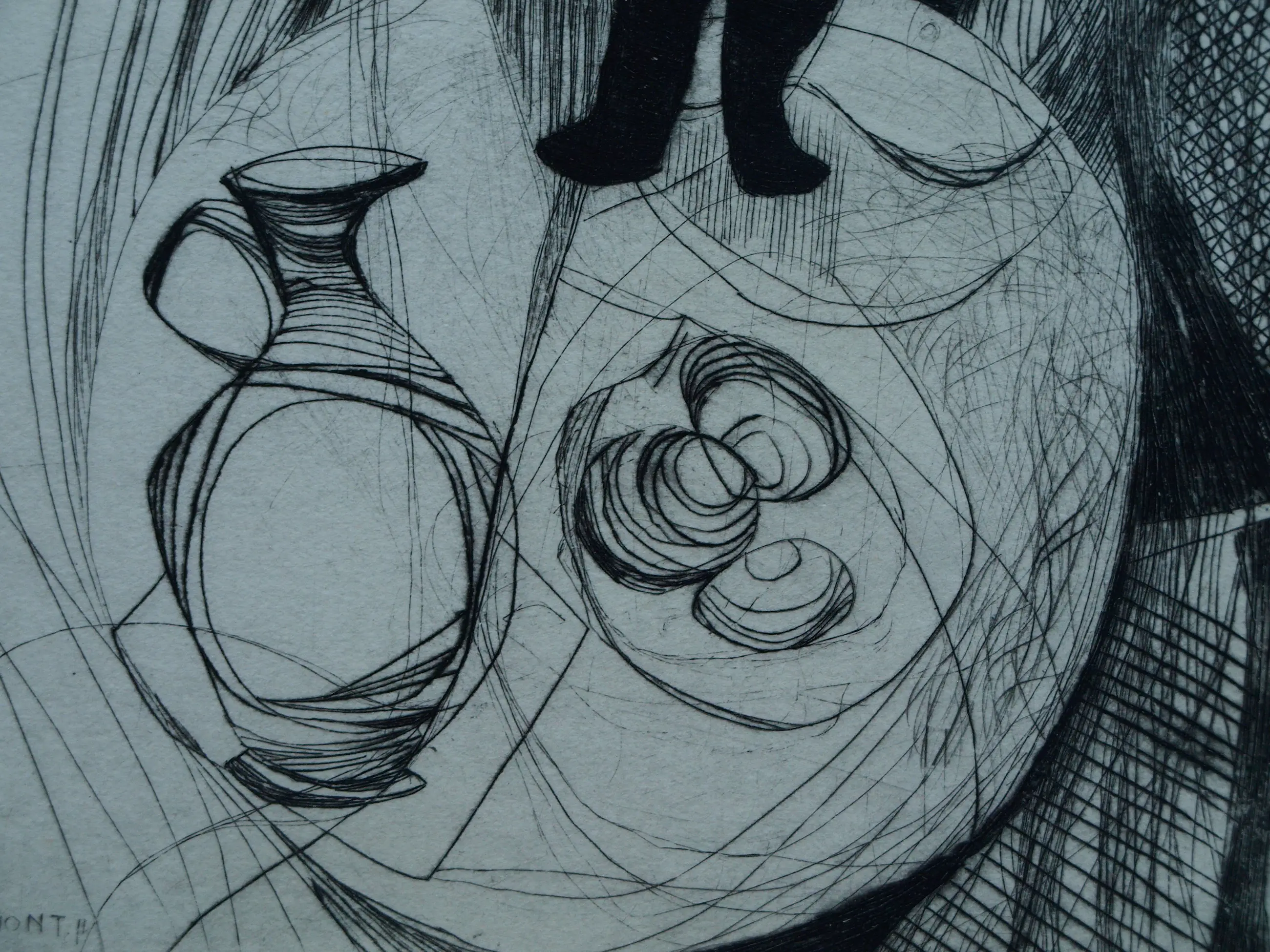 Een ets uit 1971 van de Belgische kunstenaar André Sprumont (1938), getiteld “Le Magicien”.