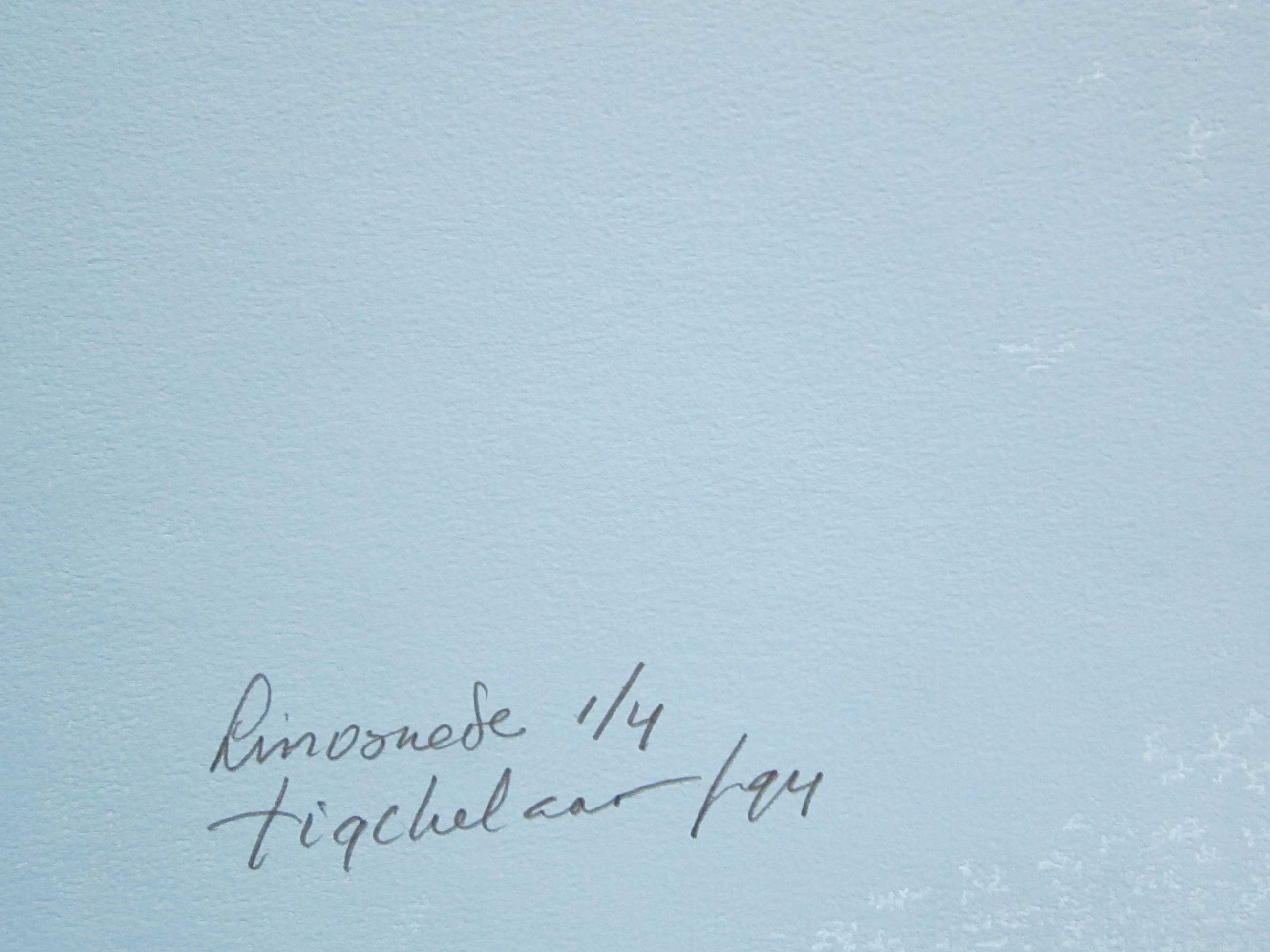 Deze vrouw heeft een afstandelijke houding en is daardoor heel intrigerend. Deze linosnede is door André Tigchelaar in 194 gemaakt in een oplage van 4 exemplaren. Dit is nr. 1 en tevens het laatste exemplaar. Het werk is rechtsonder gesigneerd en gedateerd. Deze linosnede komt rechtstreeks uit de nalatenschap van de in 2011 overleden kunstenaar.