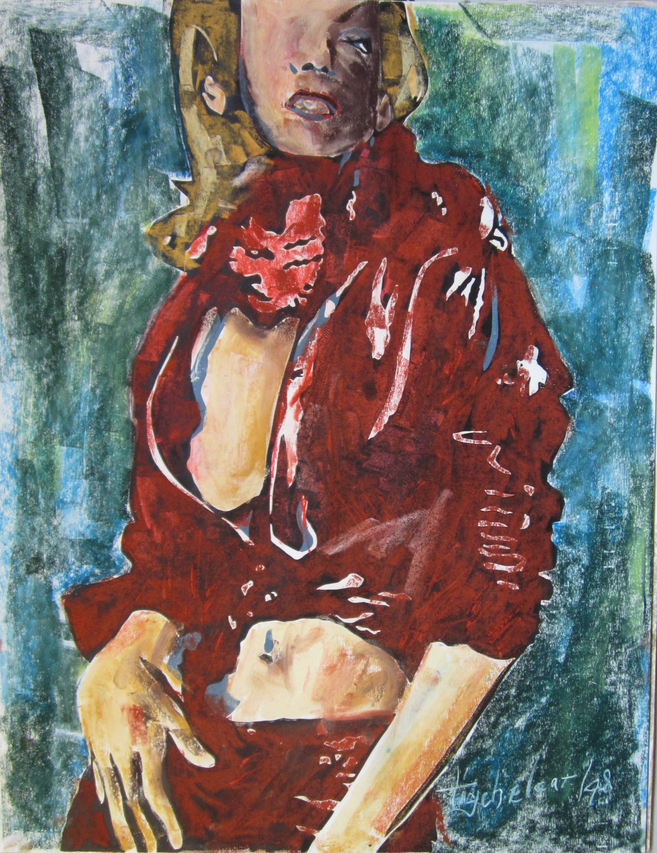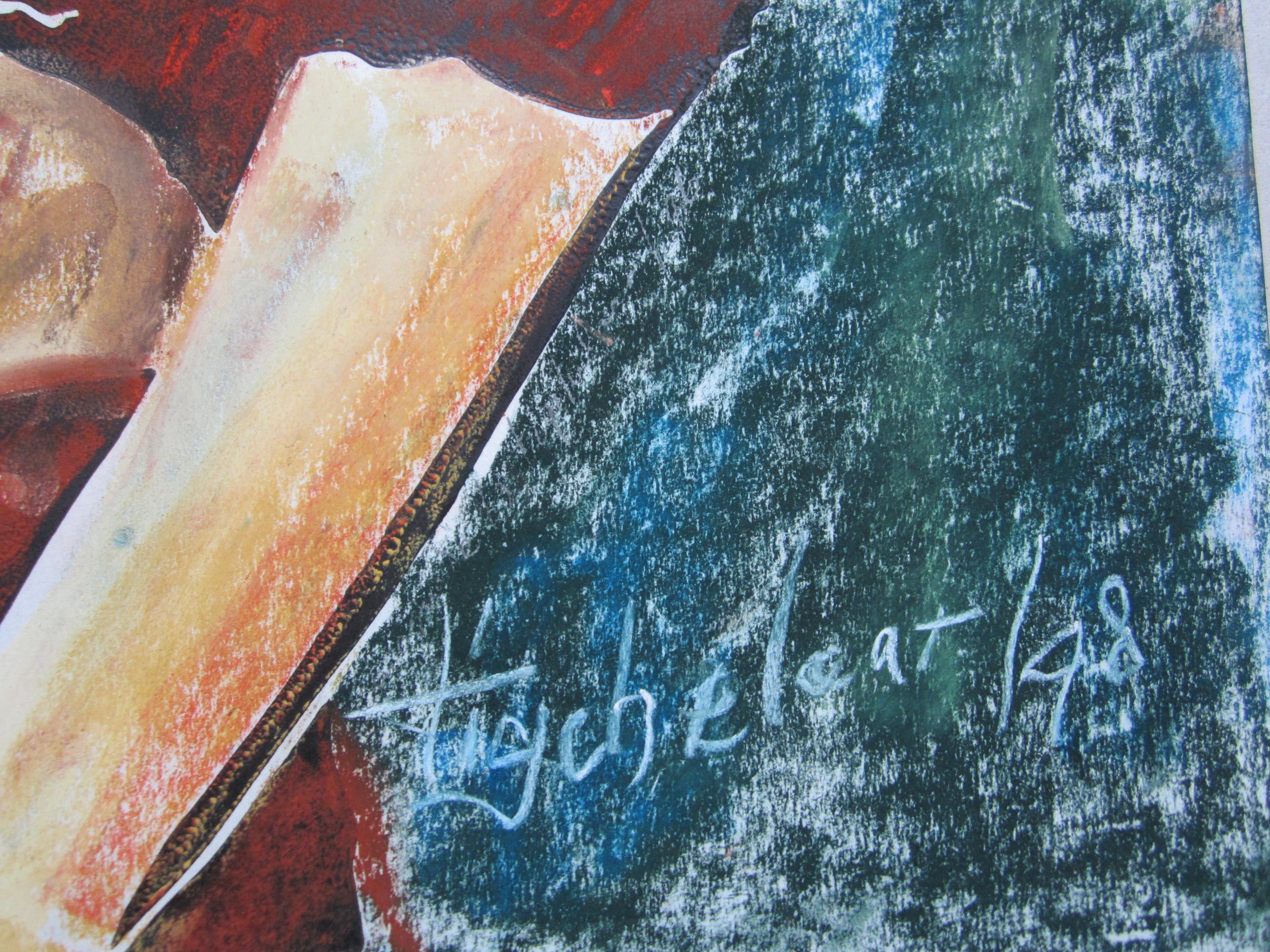 Deze pasteltekening van een vrouw is door André Tigchelaar in 1998 gemaakt. Het werk is rechtsonder gesigneerd en gedateerd. Dit werk komt rechtstreeks uit de nalatenschap van de in 2011 overleden kunstenaar,