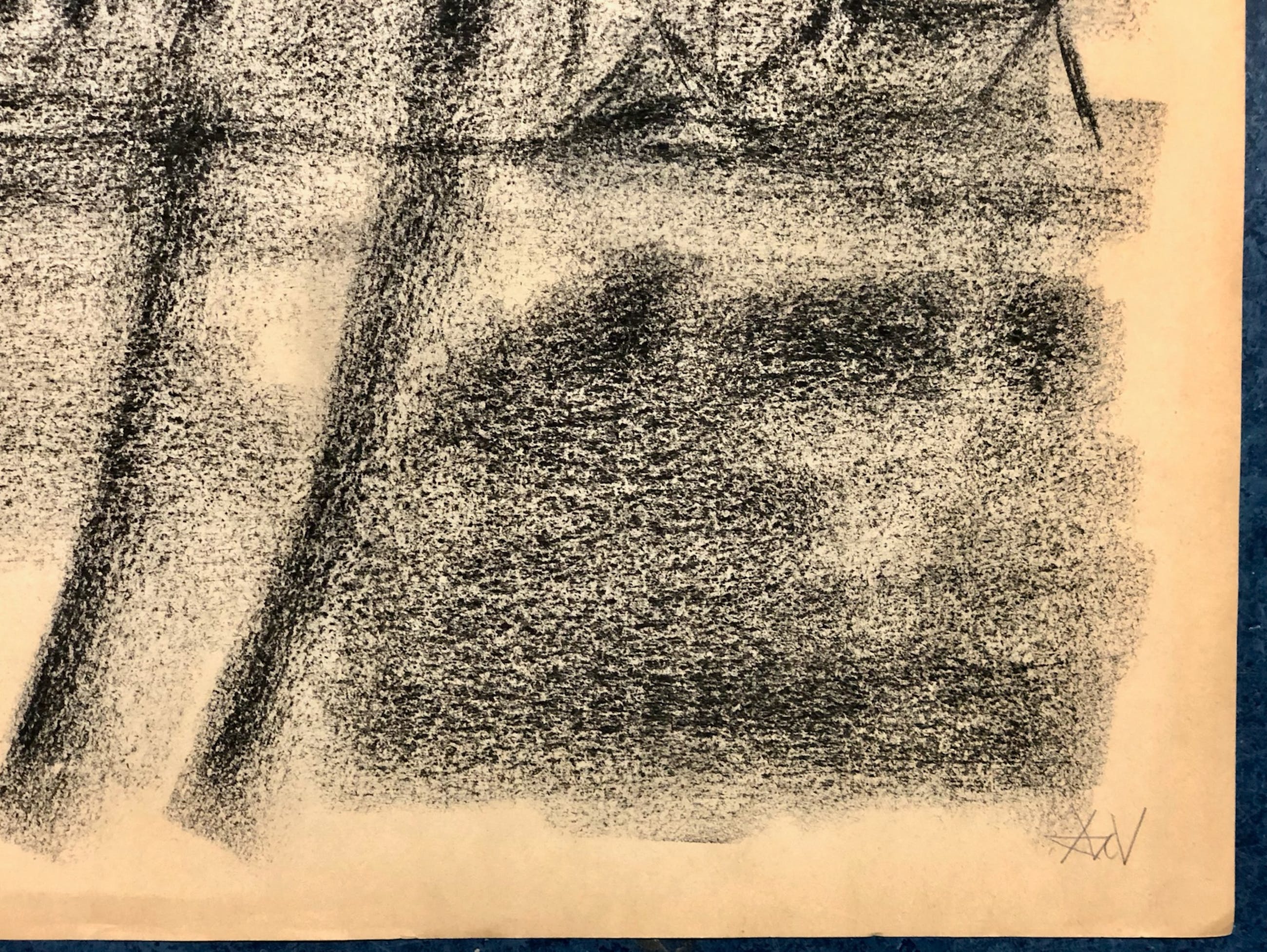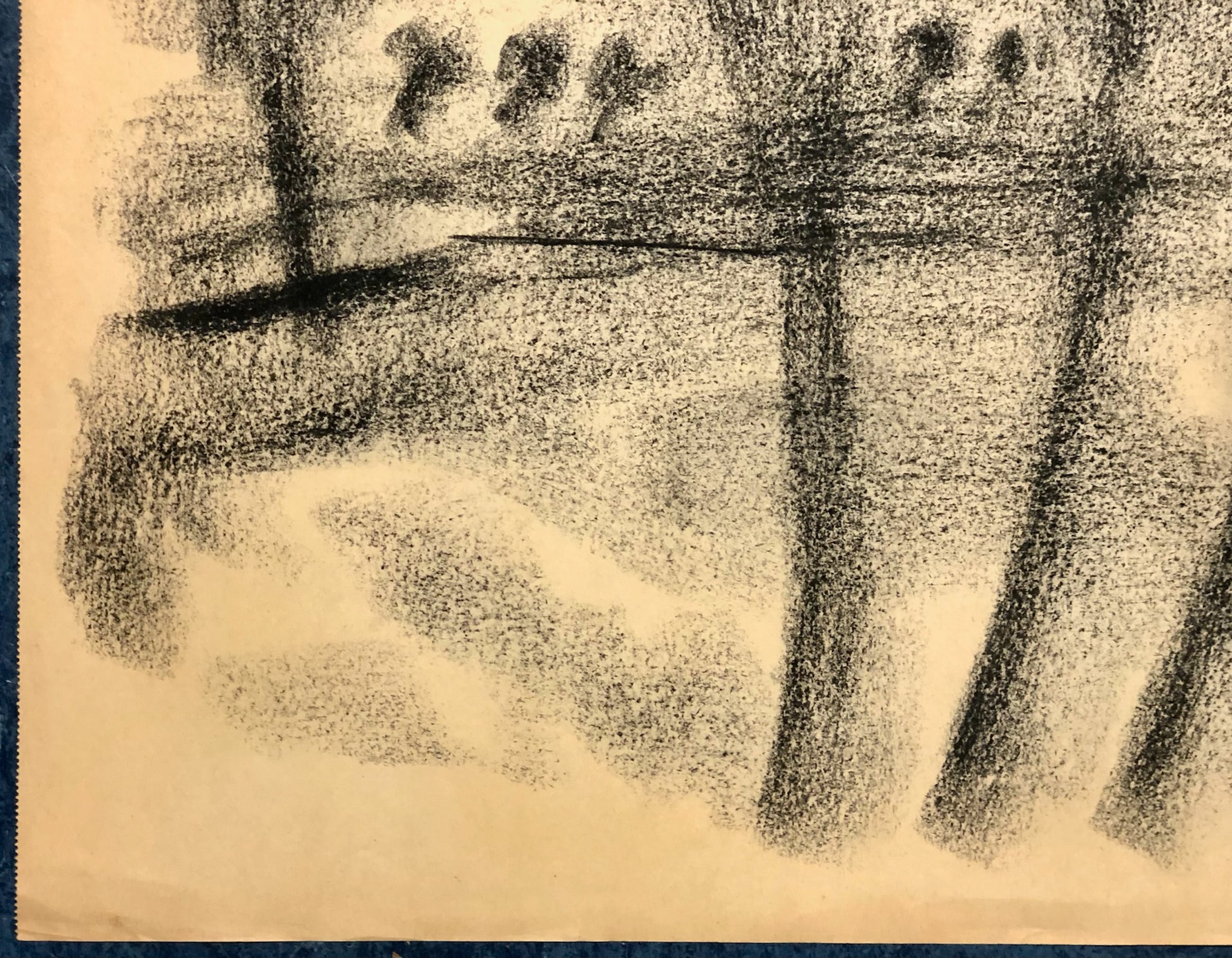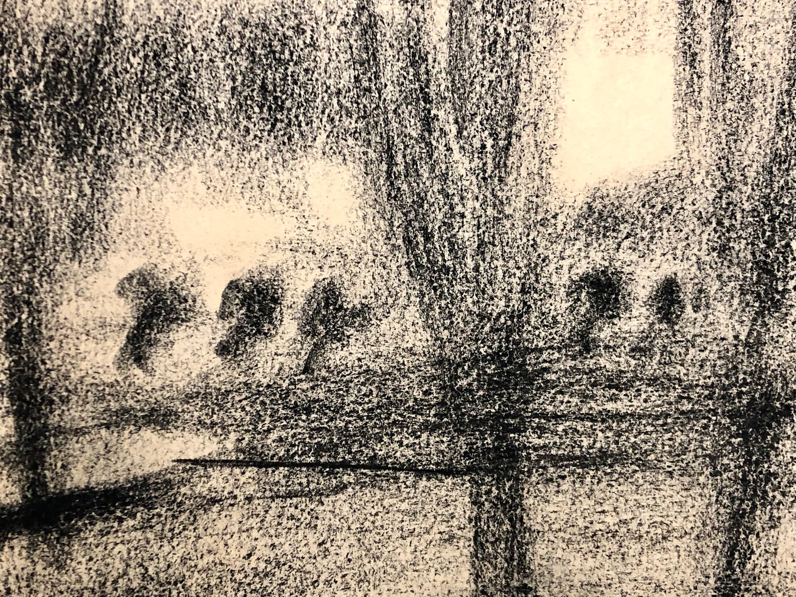 Fraai geabstraheerd landschap in zwart kleurkrijt door de kunstenaar Andre van der Vossen.