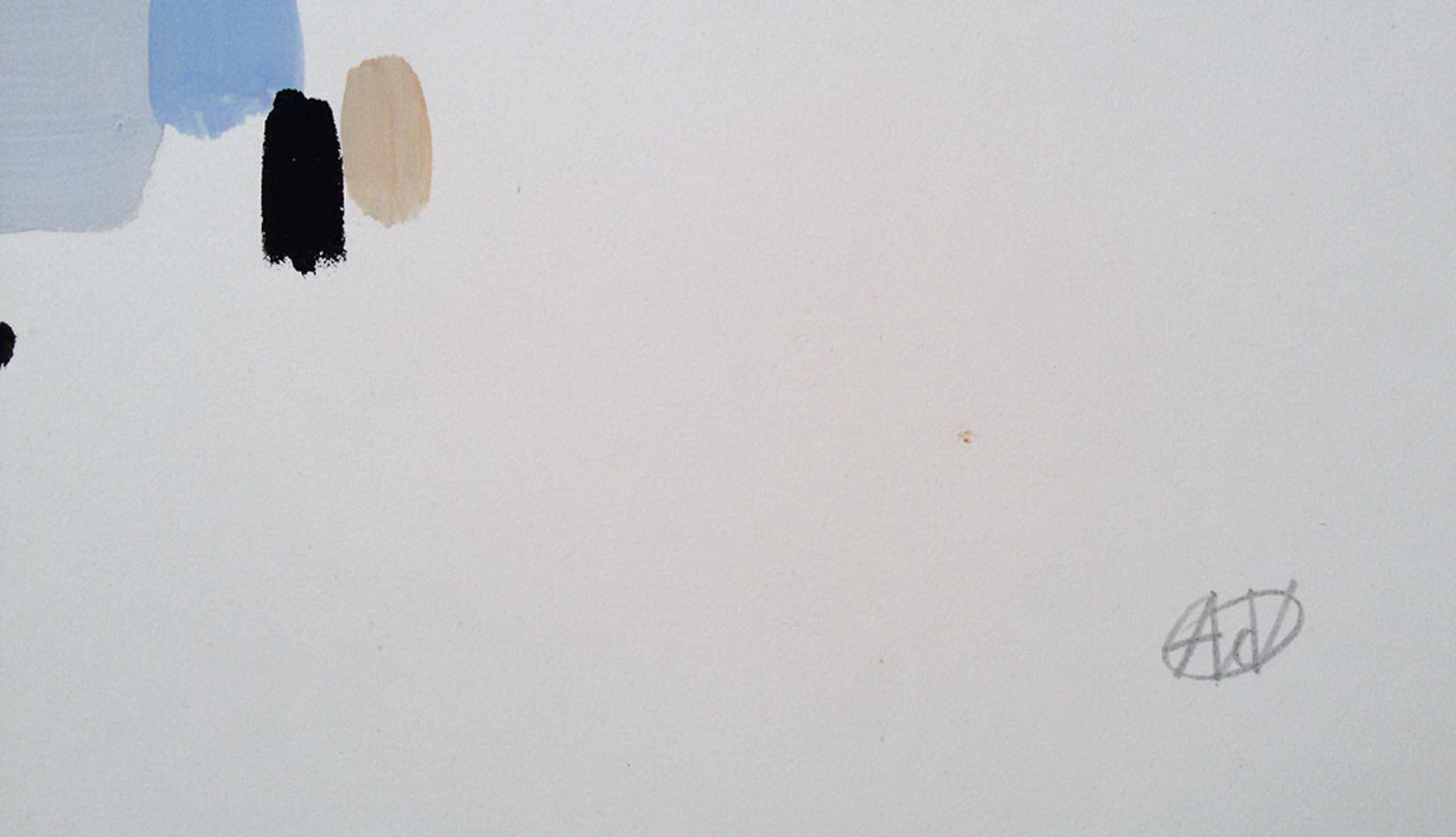 Prachtig abstract werk van Andre van der Vossen. Gouacheverf op papier, met potlood gemonogrammeerd rechtsonder. In zeer goede staat; enige wat er op het werk is aan te merken is het kleine geelbruine puntje tussen voorstelling en monogram (zie foto 3) en lichte kreukjes in de linkerbovenhoek van het blad. Beide totaal niet storend, het beeld is perfect. Op de foto’s lijkt het werk wat blauwig, maar in het echt heeft het totale werk, beeld en blad, een warmere uitstraling.
