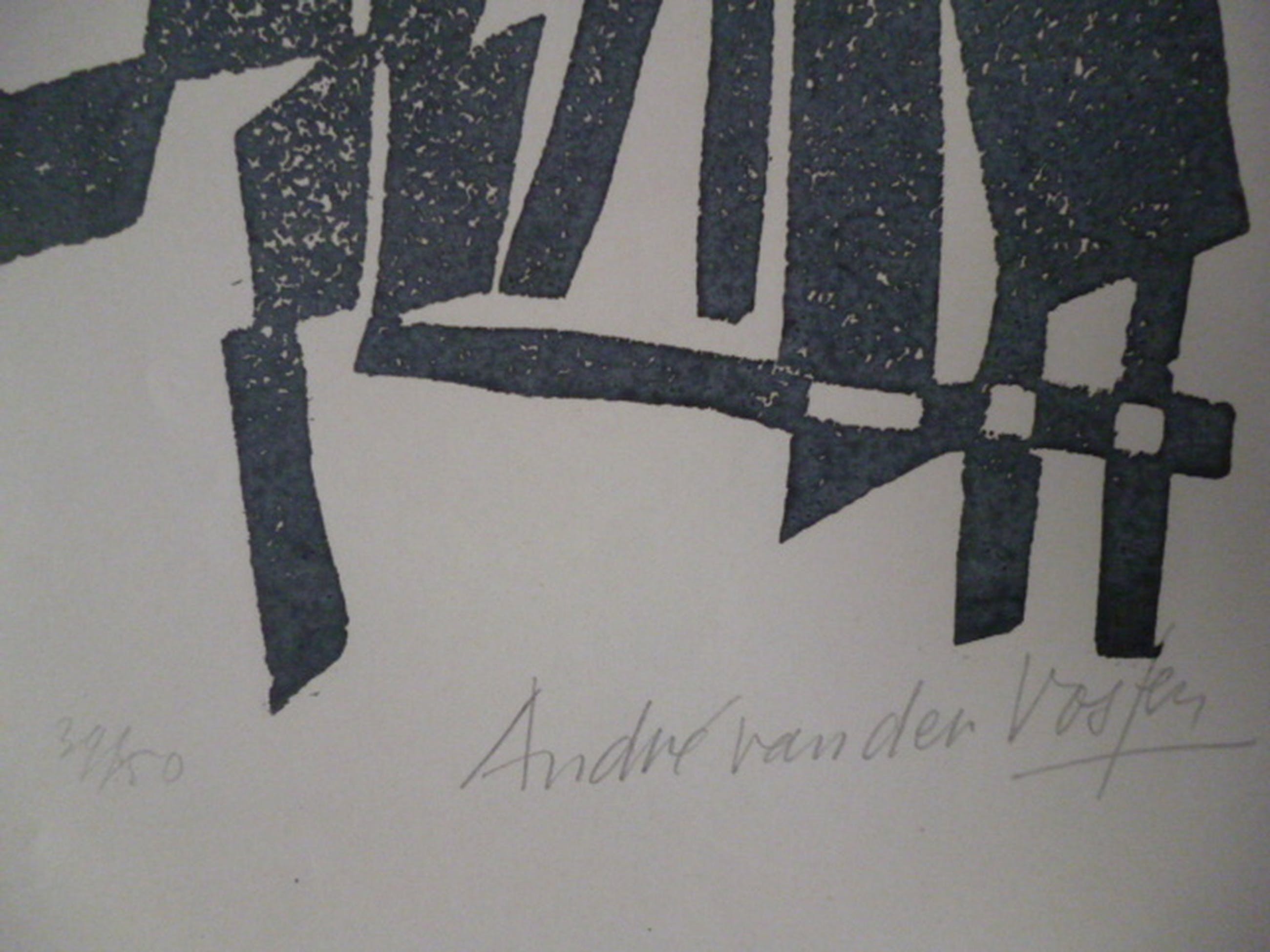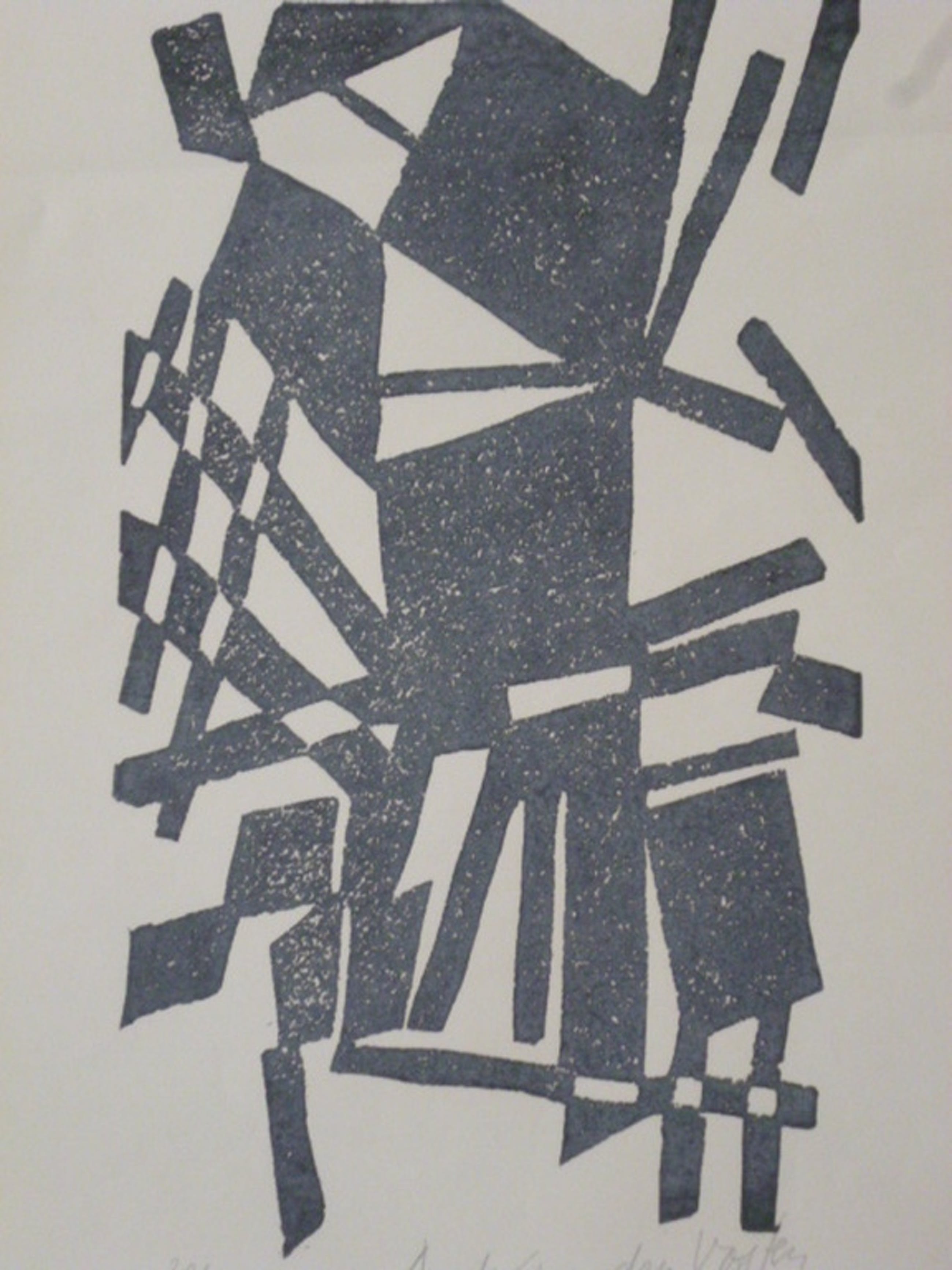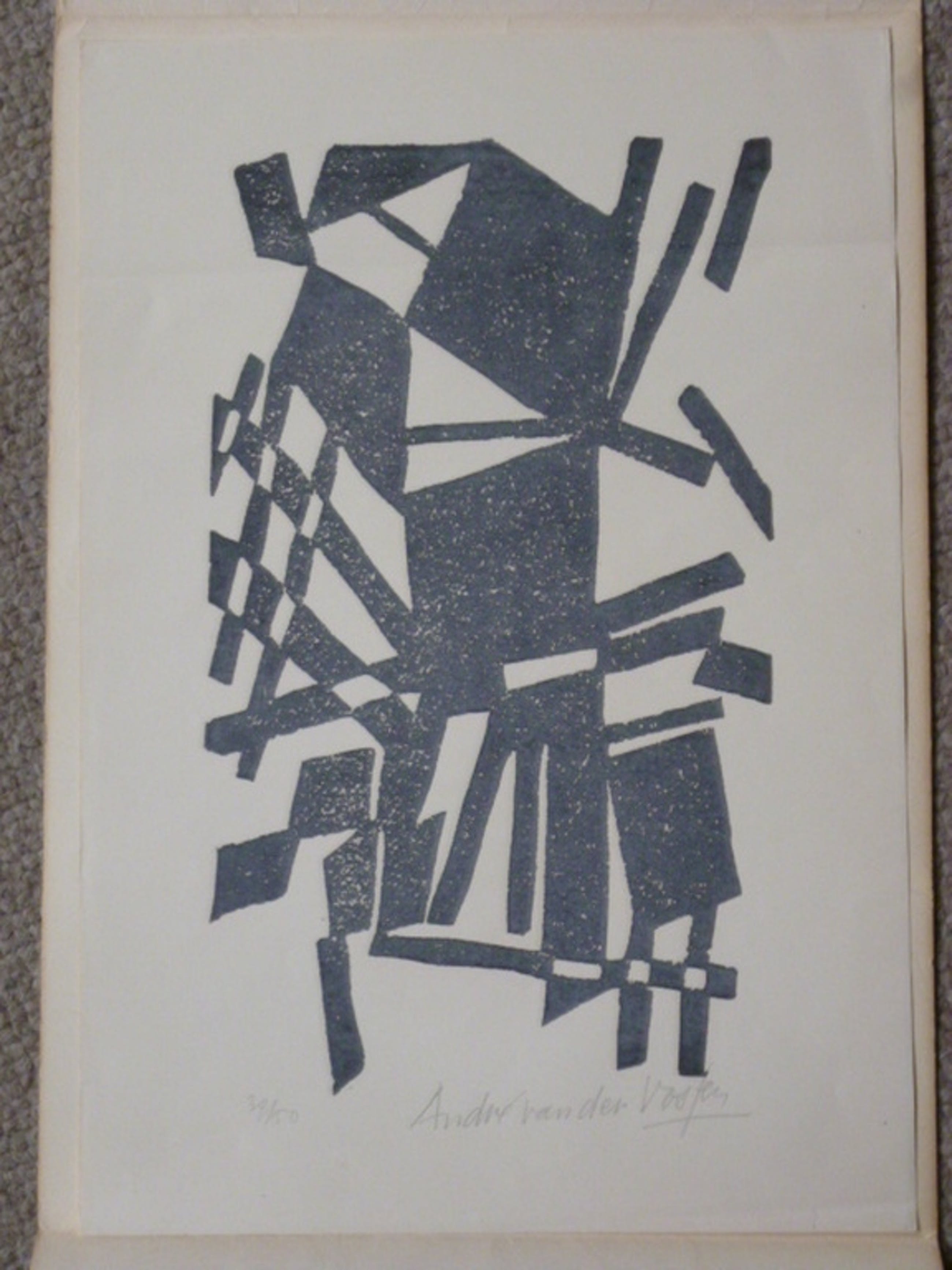 Linosnede in mapje. Potlood gesigneerd rechtsonder. Genummerd 39/50 linksonder.