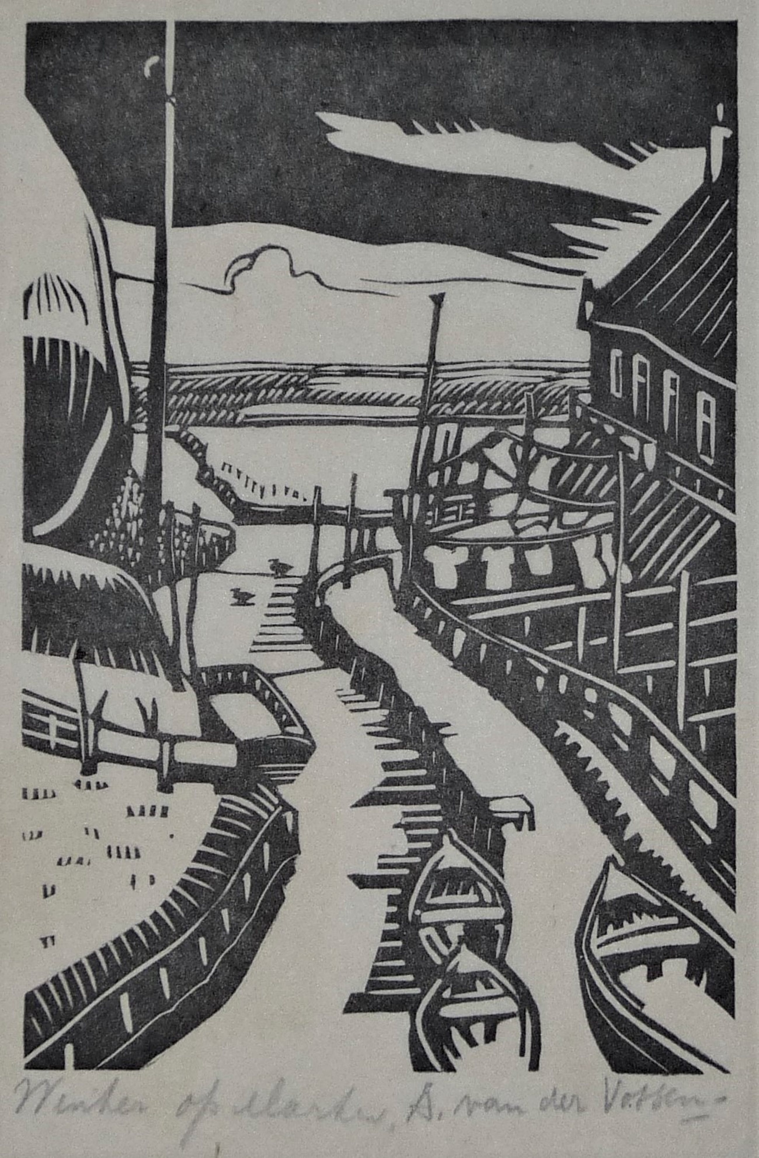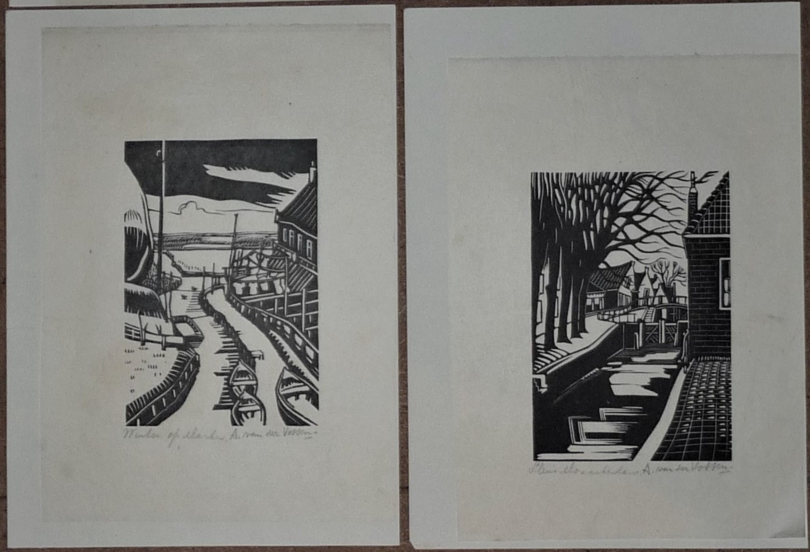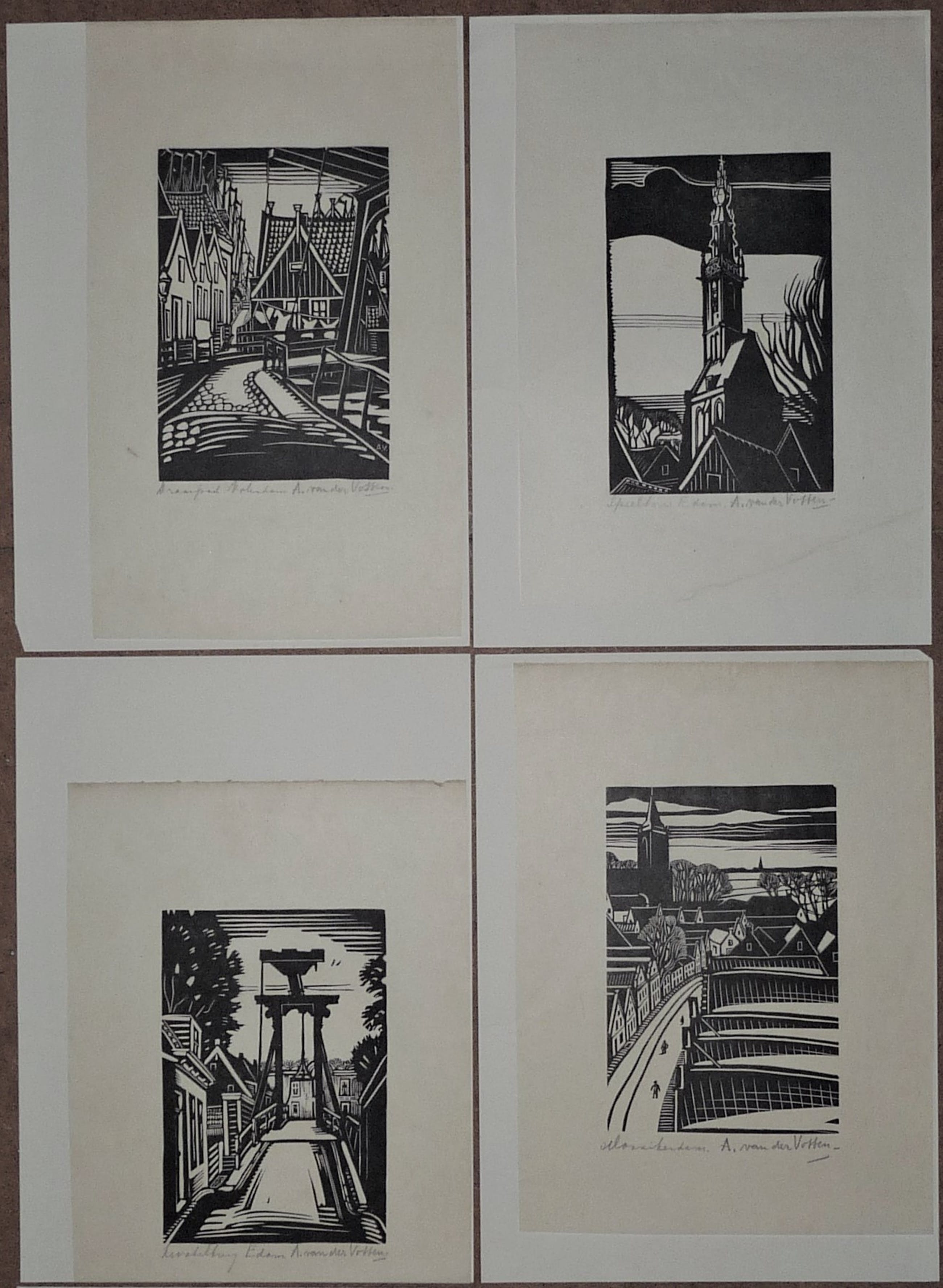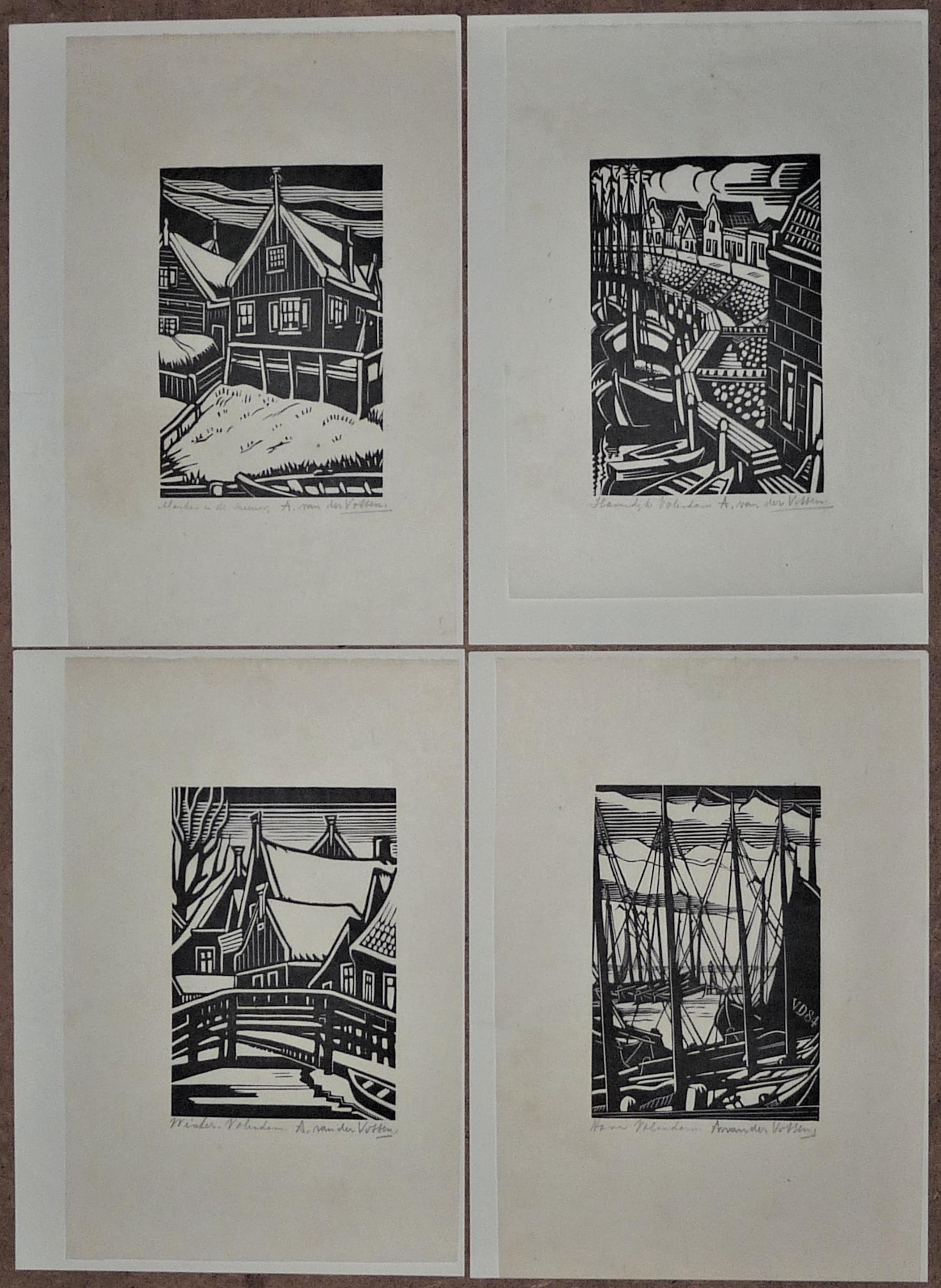 * De complete serie van 10 houtsnedes van vissersplaatsen in Nederland door de kunstenaar Andre van der Vossen. Deze houtsnedes worden vaak los verkocht, de gehele serie is inmiddels schaars geworden. * Alle houtsnedes zijn gesigneerd en de plaats erbij benoemd in potlood. * Papiermaat 27 x 19 cm. Beeldmaat ong. 15,5 x 10,5 cm. * Authenticiteit wordt volledig gegarandeert.