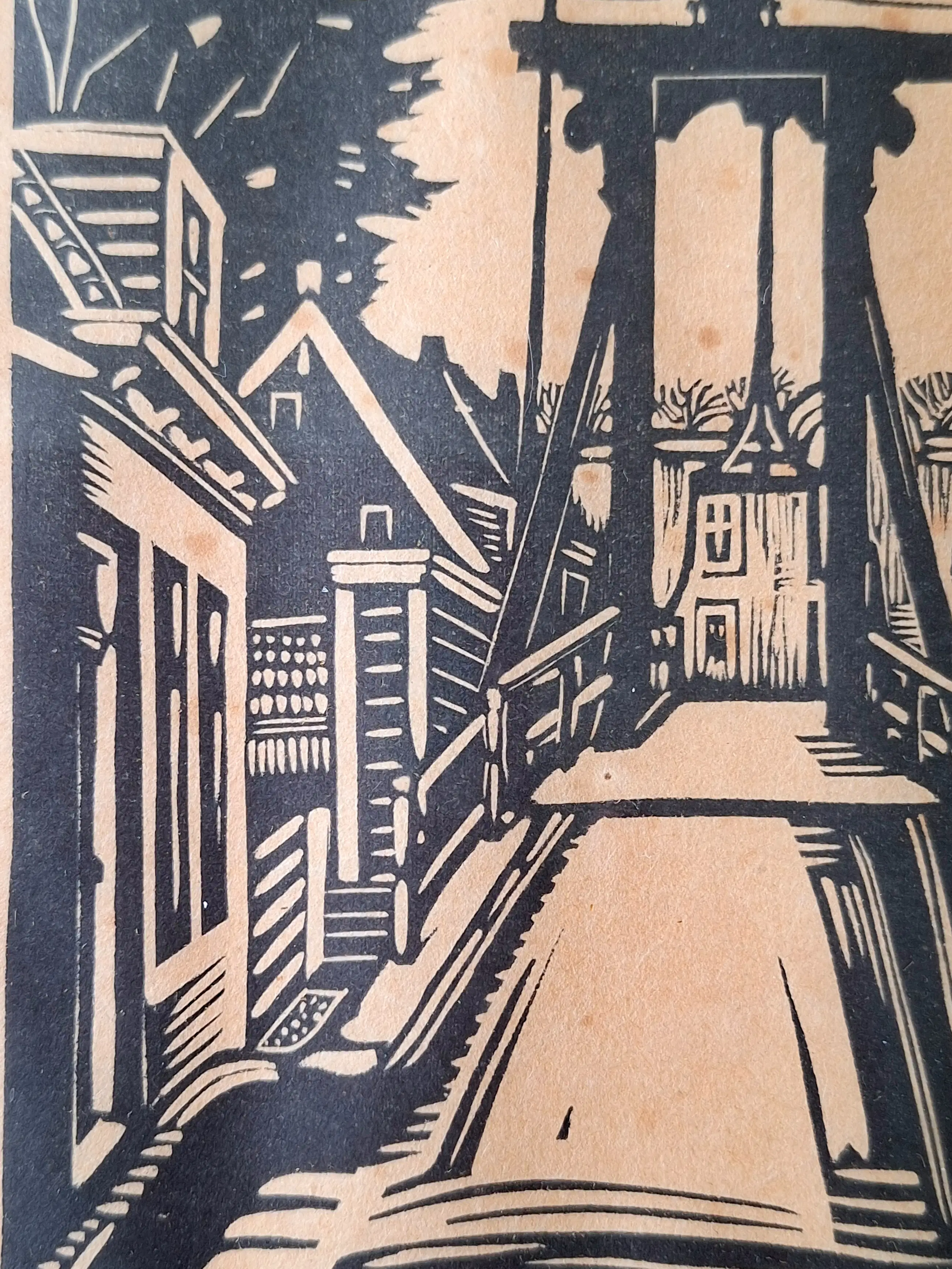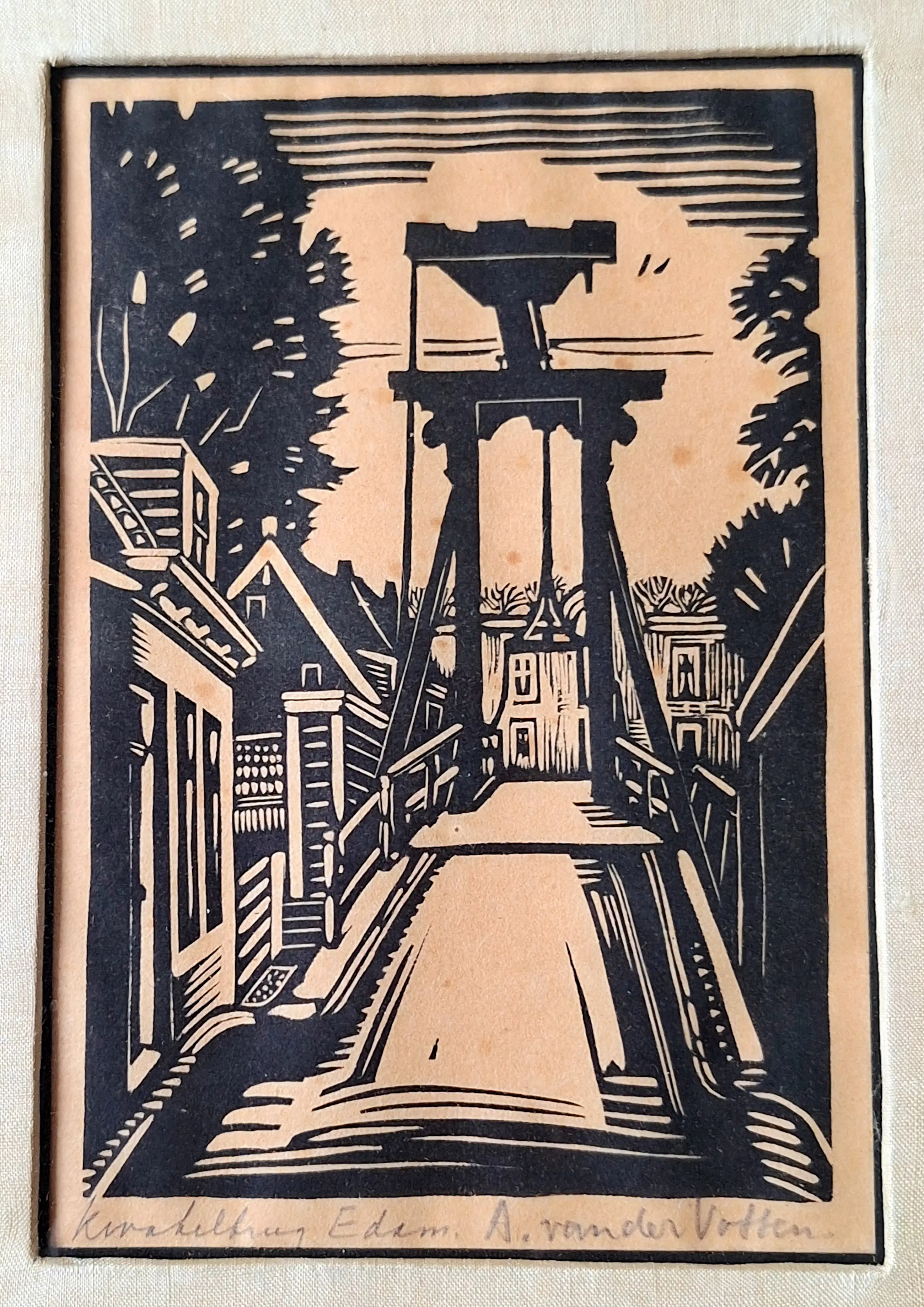 Andre van der Vossen - houtsnede 'Kwakelbrug, Edam'
