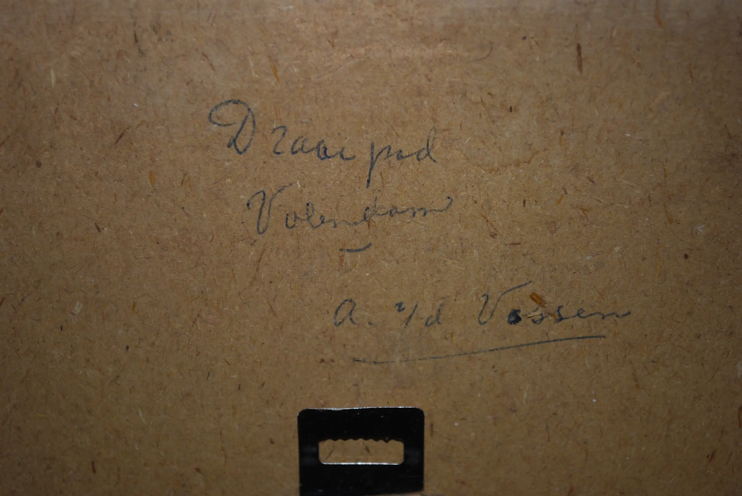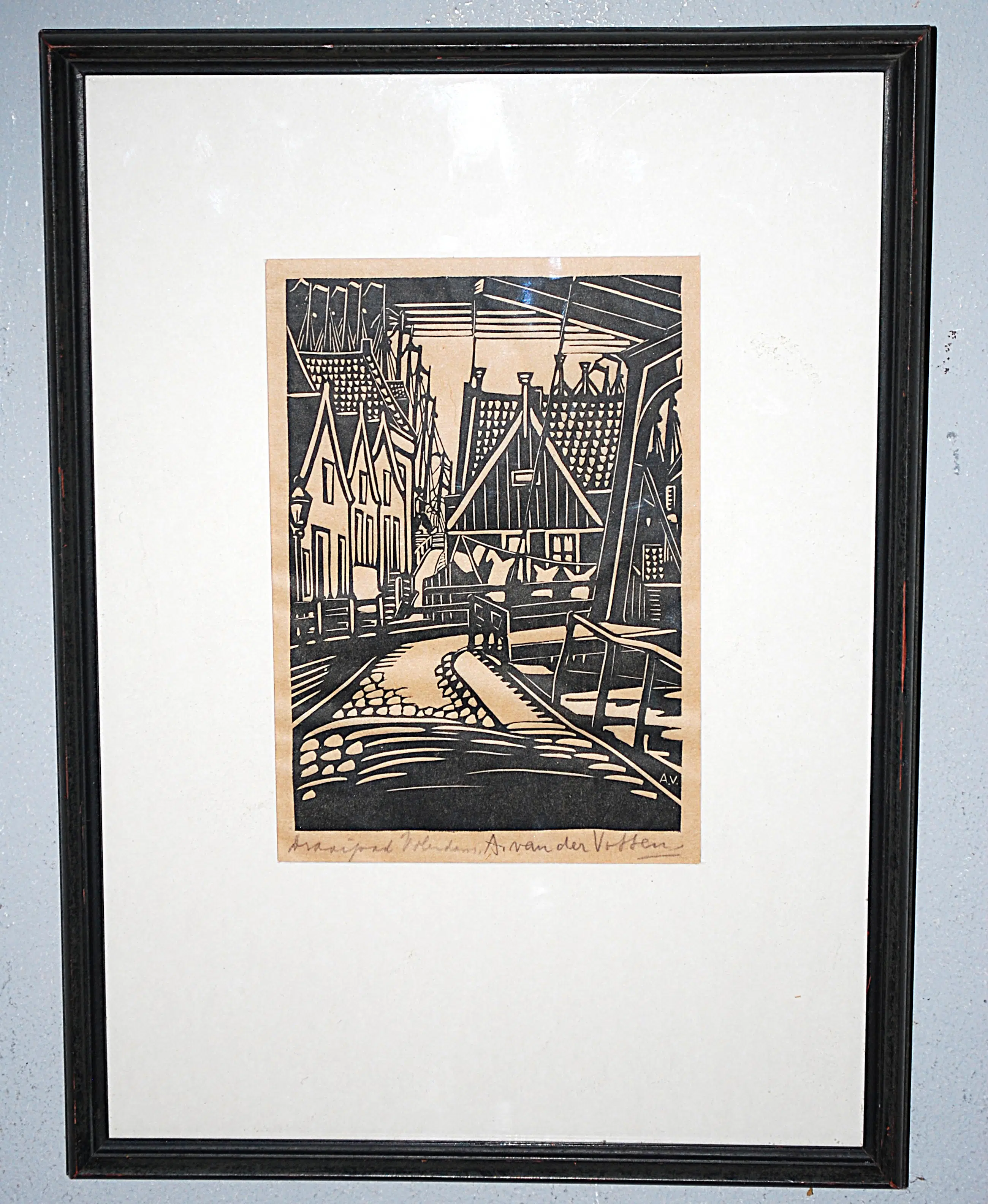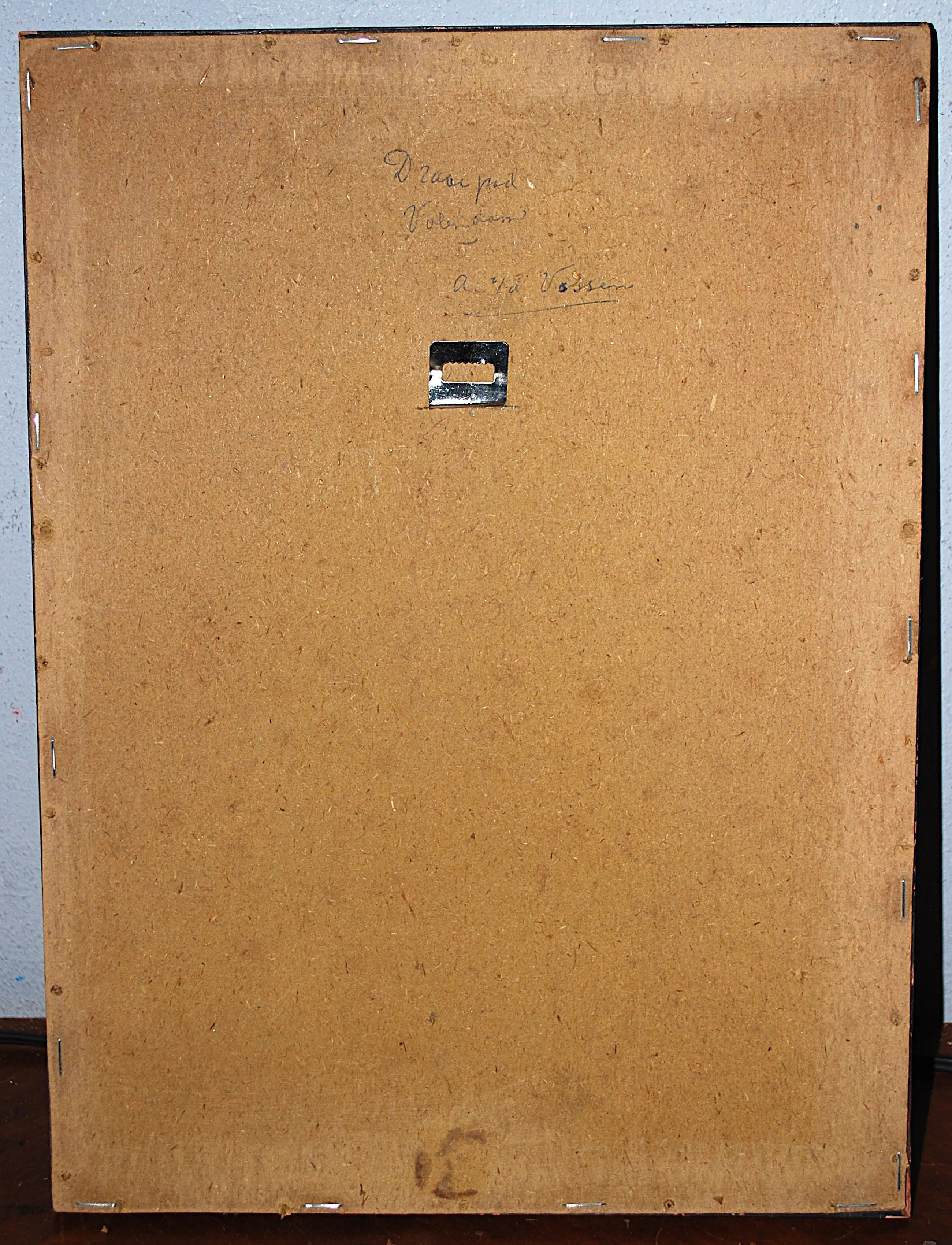 Beeldmaat 15.5x10.5 cm. Achter passepartout en glas, in een houten lijst. Ook op het achterkarton gesigneerd.