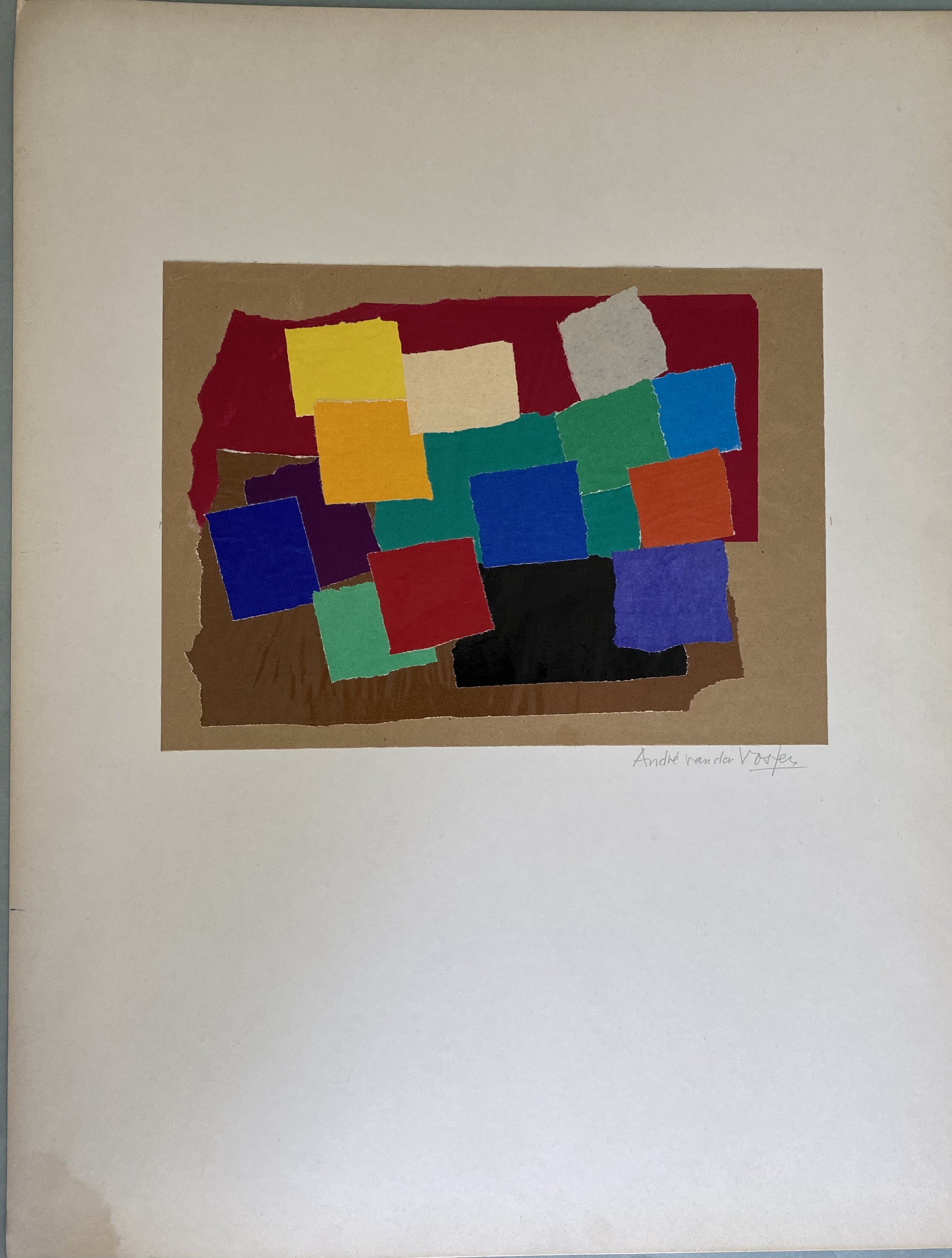 One of the earliest examples of Art Informal in the Netherlands was Andre van der Vossen. Impressed bij the exhibitions of Vasily Kandinsky and Paul Klee held at the Stedelijk Museum Amsterdam in 1947 and 1948 respectively, Van der Vossen started experimenting with various abstract styles, beginning with French-like all over composition of small, rhythmic brushstrokes in earth tones. Fields of subdued colors are shot through strokes in other dull hues. In the end, he arrived at a more moderate lyrical abstraction with color patches scattered on white ground and connected by linear patterns. In all these works, an expressive rhythm emanates from the composition giving it a certain indefinable feel.