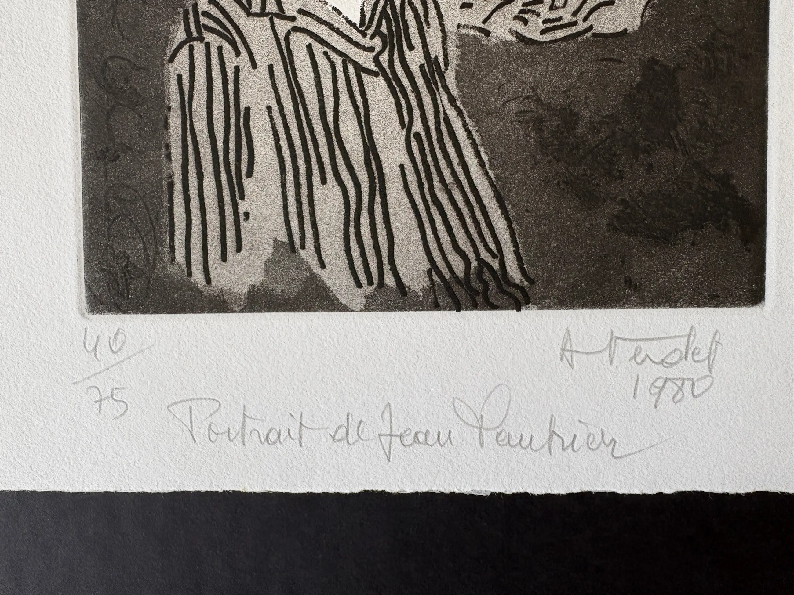 Andre Verdet - Portret van Jean Fautrier, origineel, gesigneerd en gedateerd 1980.