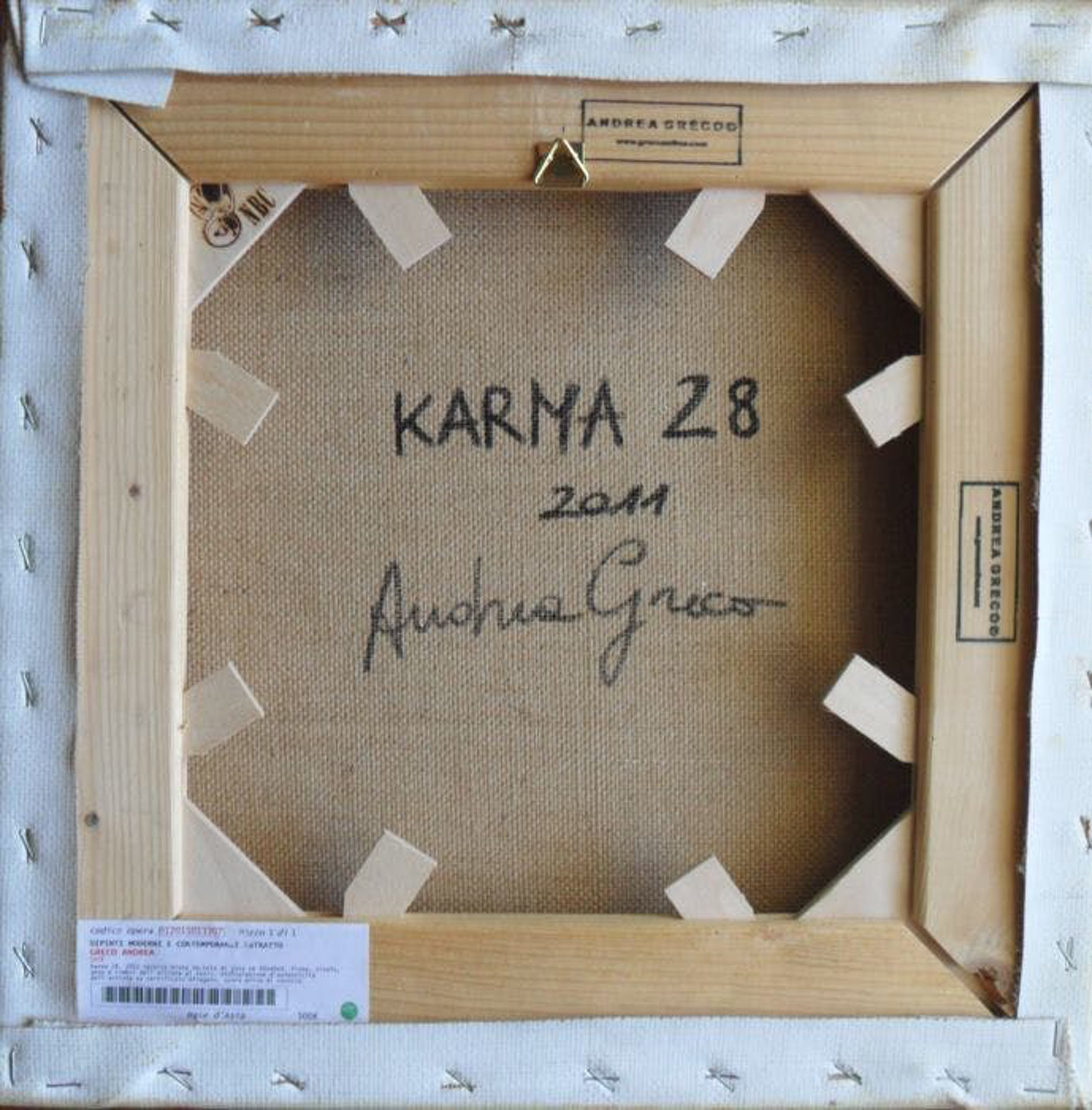 Original and unique artwork by the artist Andrea Greco (Mozzate 1978) with mixed media on a jute canvas made in 2011. Signature, title, year and stamps of the artist on the verso with artist’s label. Artwork dimensions: 40 x 40 x 4 cm without frame.