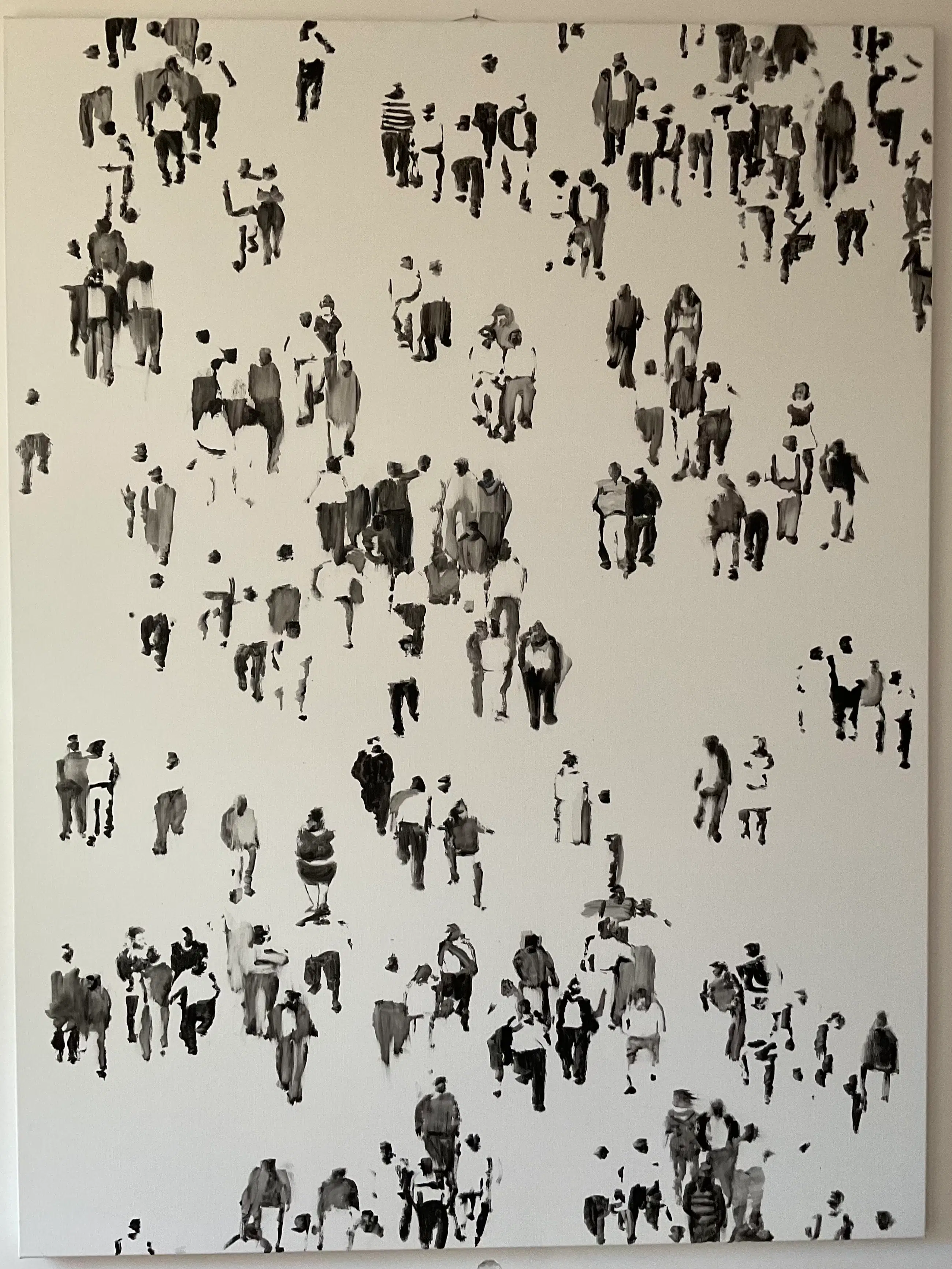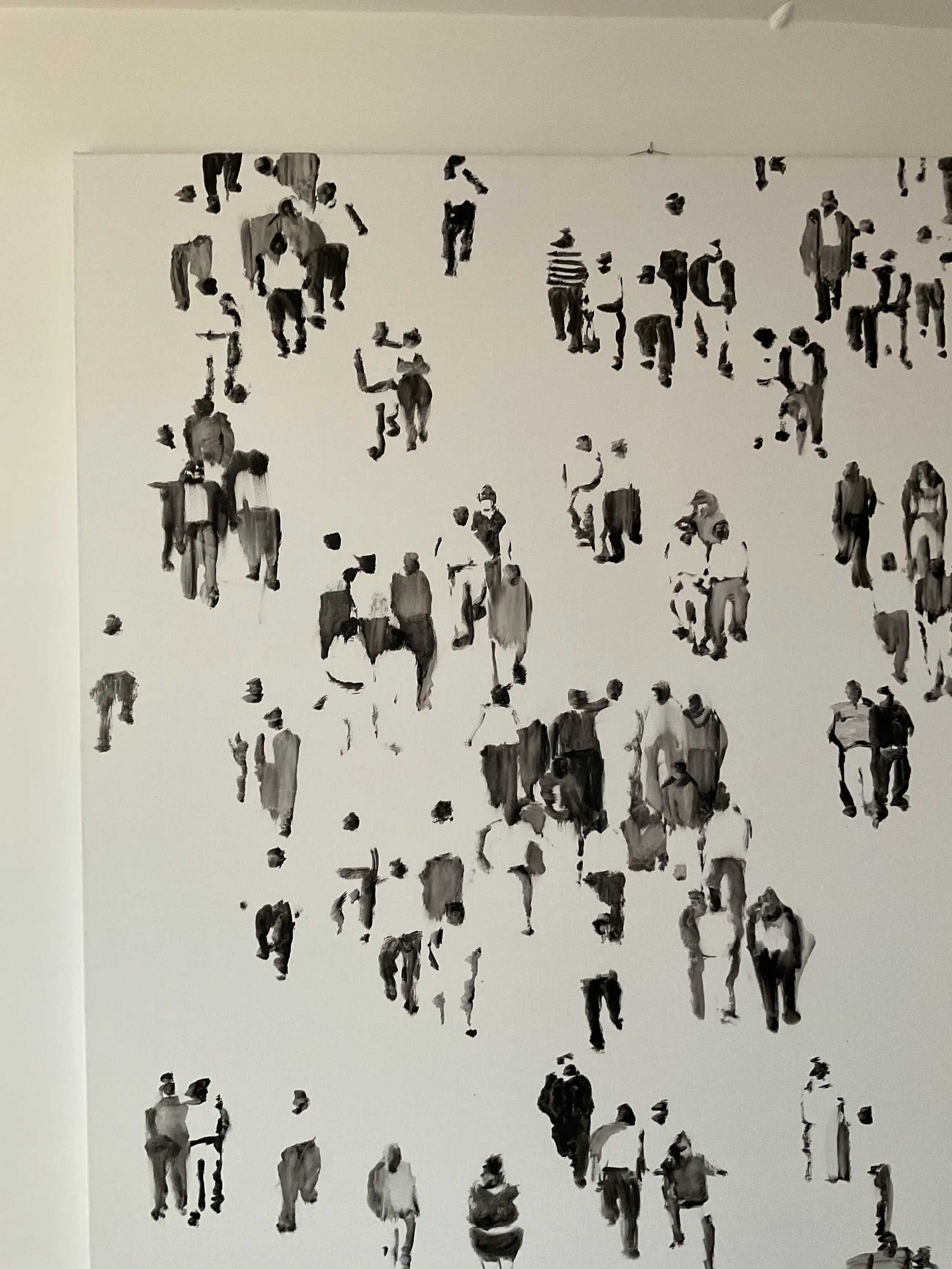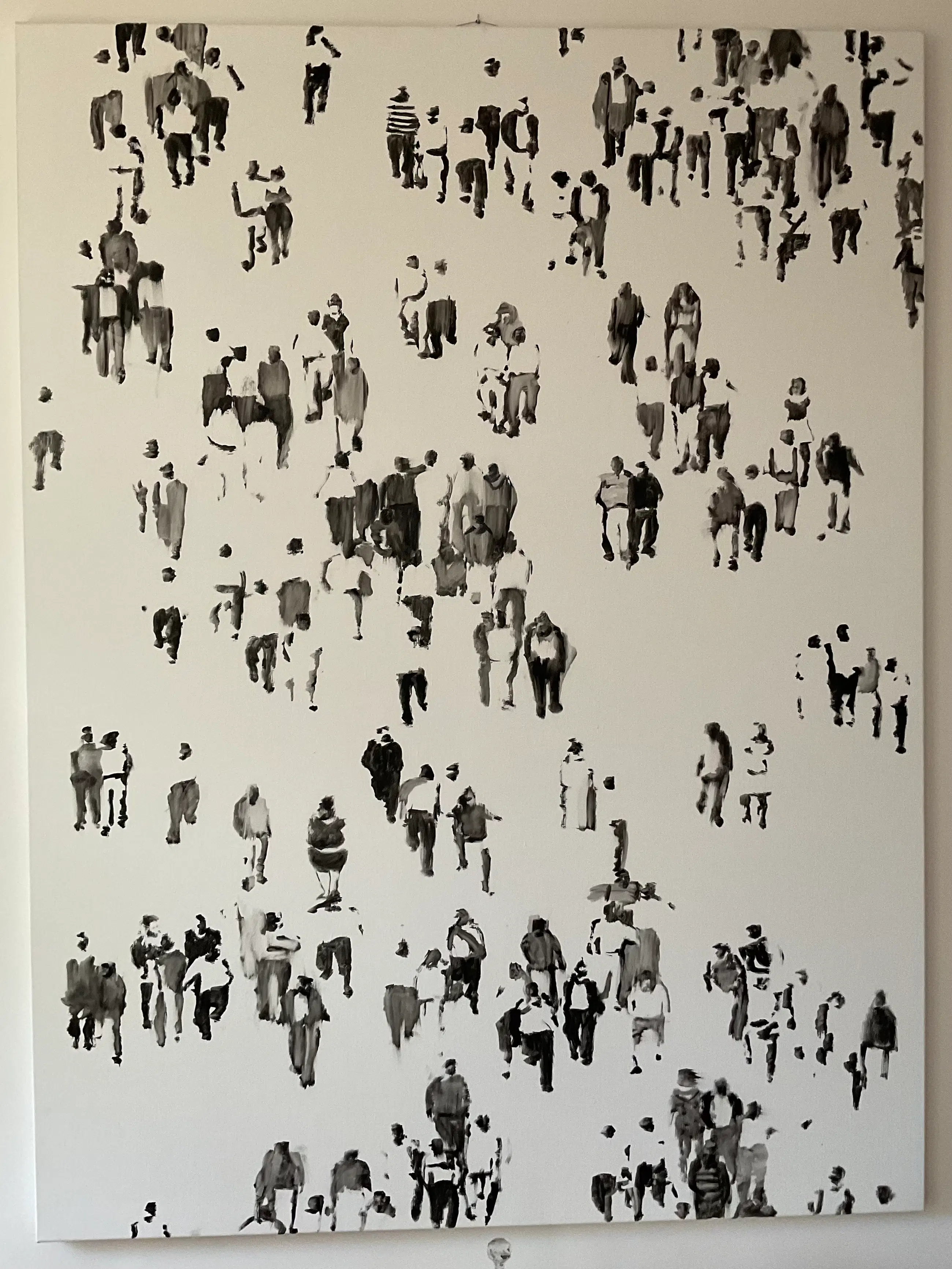 De Nederlands-Hongaarse kunstenaar Andrea Radai, opgeleid aan de Groningse kunstacademie Minerva en de Ecole Nationale Superieur des Beaux-arts in Parijs, maakte in 2017 een serie kunstwerken onder de titel Crowd, waarop groepjes mensen in beweging te zien zijn. Uit de serie, met opeenvolgende nummers, worden Crowd XII en Crowd XIII aangeboden door Saatchi Art voor resp. €10.081 en €5291. Crowd X toont een mensenmassa die een trap - niet zichtbaar - afdaalt. Er zijn patronen in te zien, zoals ook op de andere werken uit de serie, herhalend, bijna zoals op behang, reden waarom Radai er ook een aantal op rollen behangpapier uitvoerde.