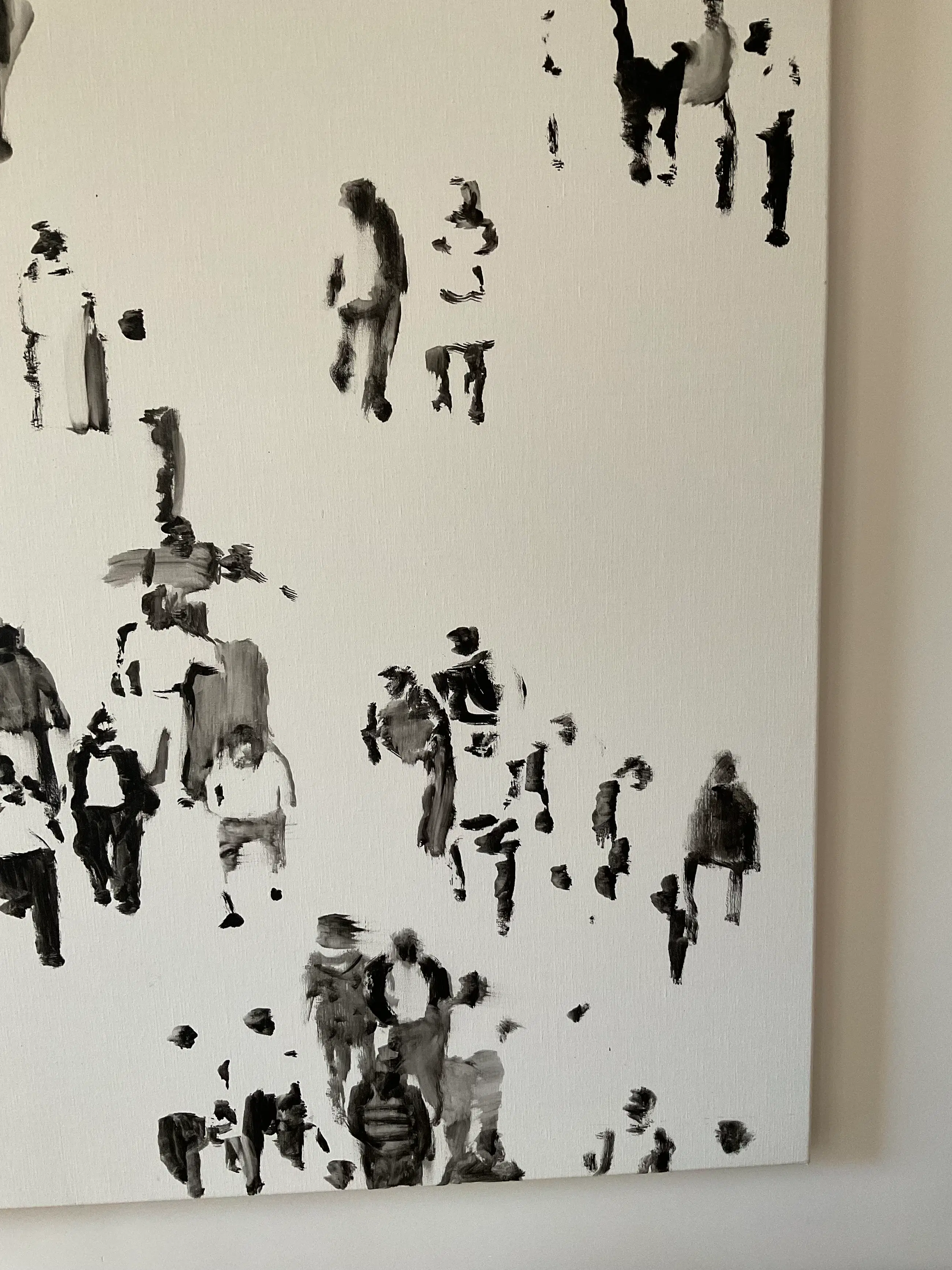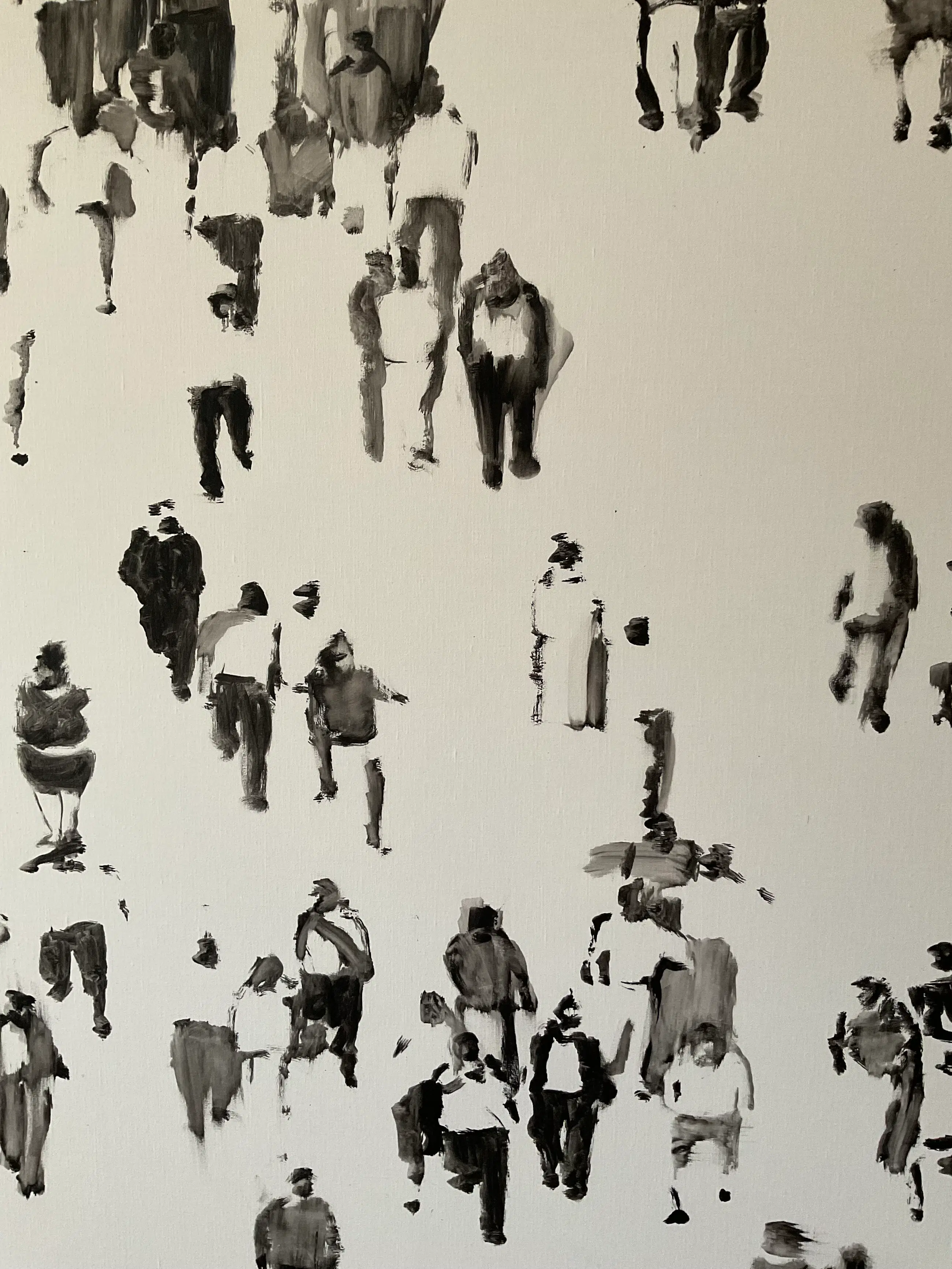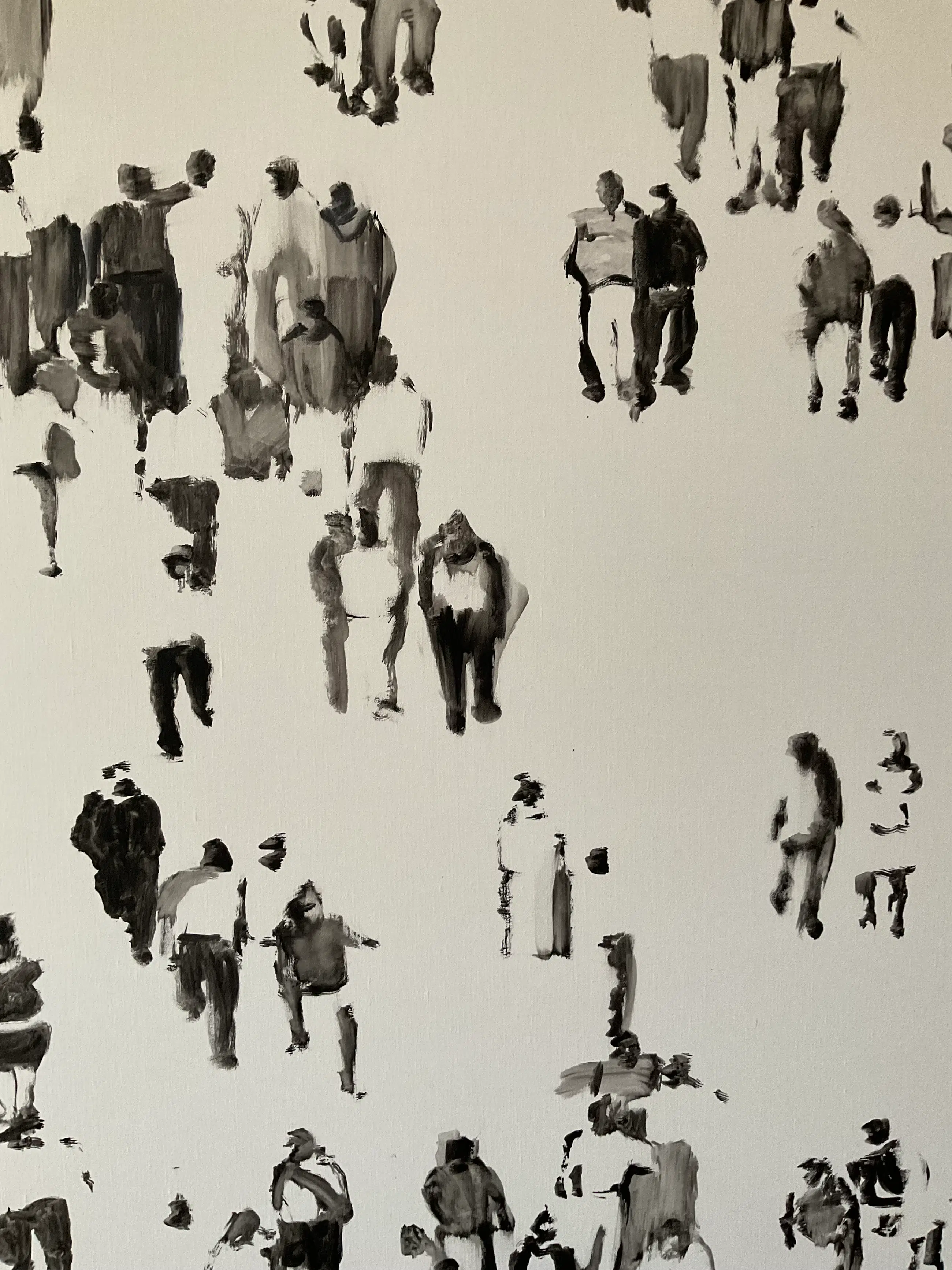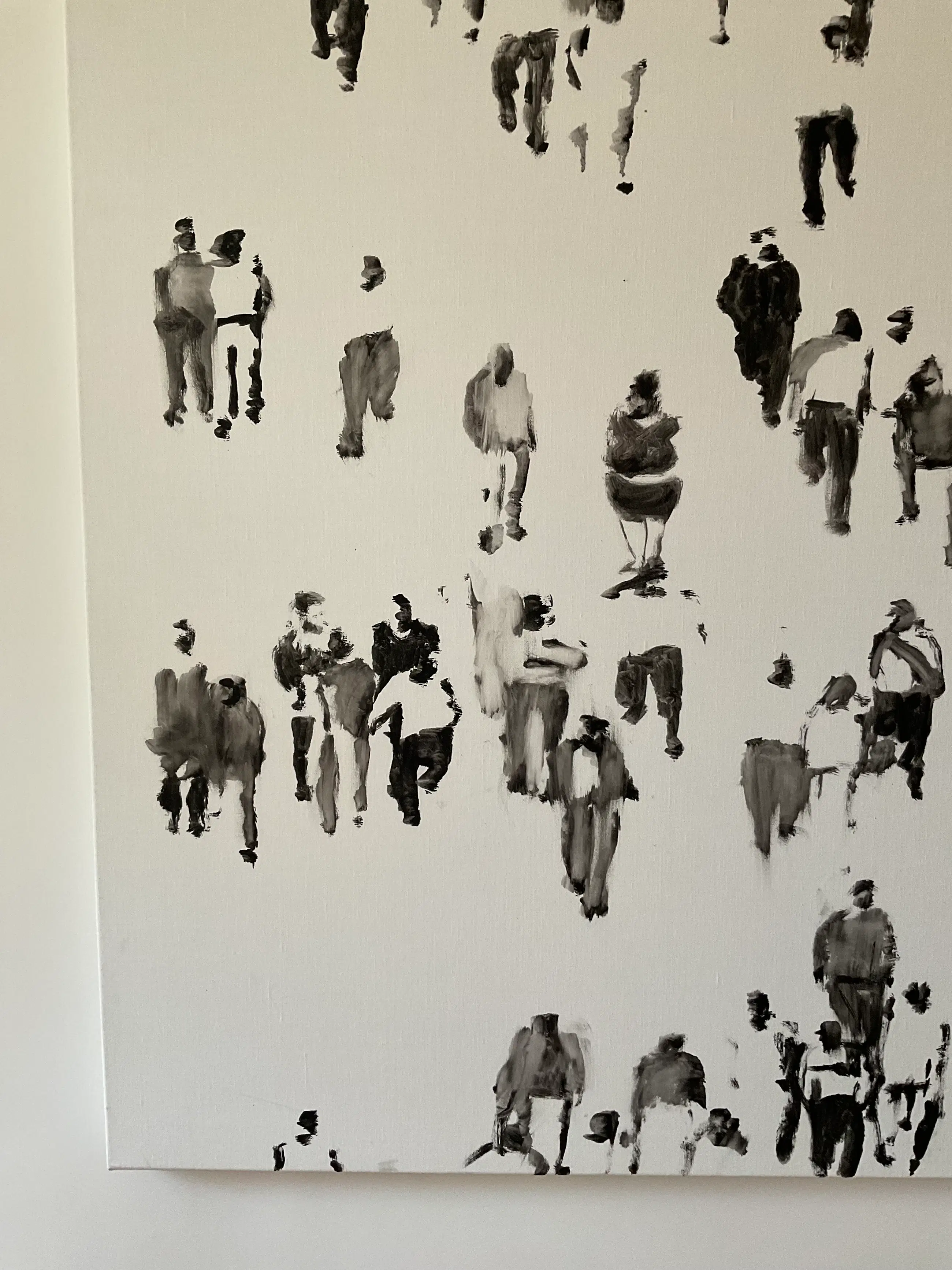 De Nederlands-Hongaarse kunstenaar Andrea Radai, opgeleid aan de Groningse kunstacademie Minerva en de Ecole Nationale Superieur des Beaux-arts in Parijs, maakte in 2017 een serie kunstwerken onder de titel Crowd, waarop groepjes mensen in beweging te zien zijn. Uit de serie, met opeenvolgende nummers, worden Crowd XII en Crowd XIII aangeboden door Saatchi Art voor resp. €10.081 en €5291. Crowd X toont een mensenmassa die een trap - niet zichtbaar - afdaalt. Er zijn patronen in te zien, zoals ook op de andere werken uit de serie, herhalend, bijna zoals op behang, reden waarom Radai er ook een aantal op rollen behangpapier uitvoerde.