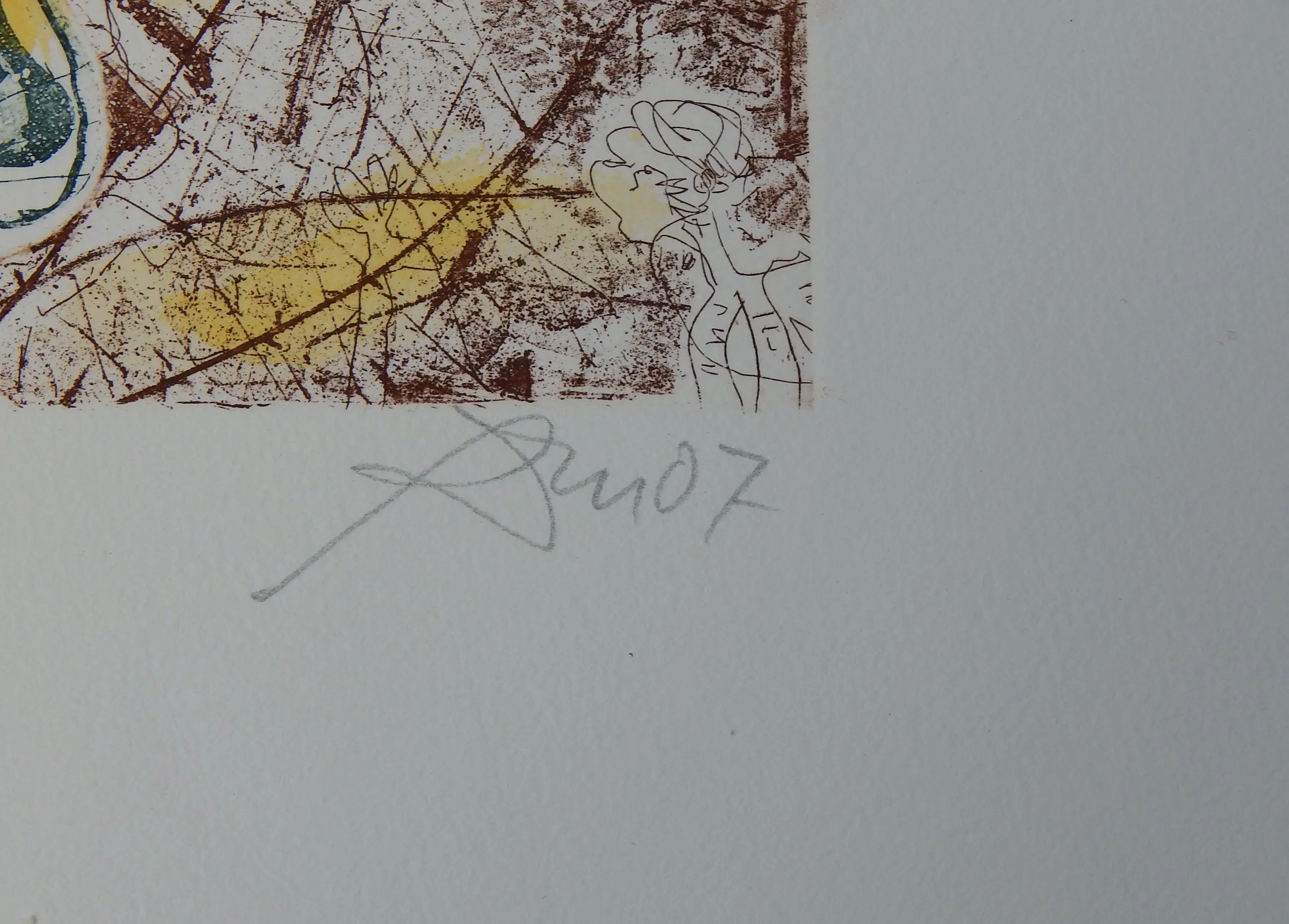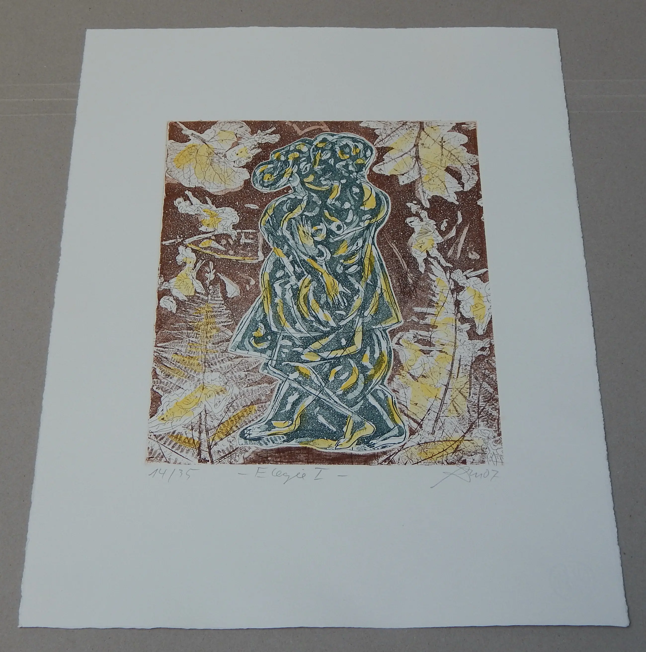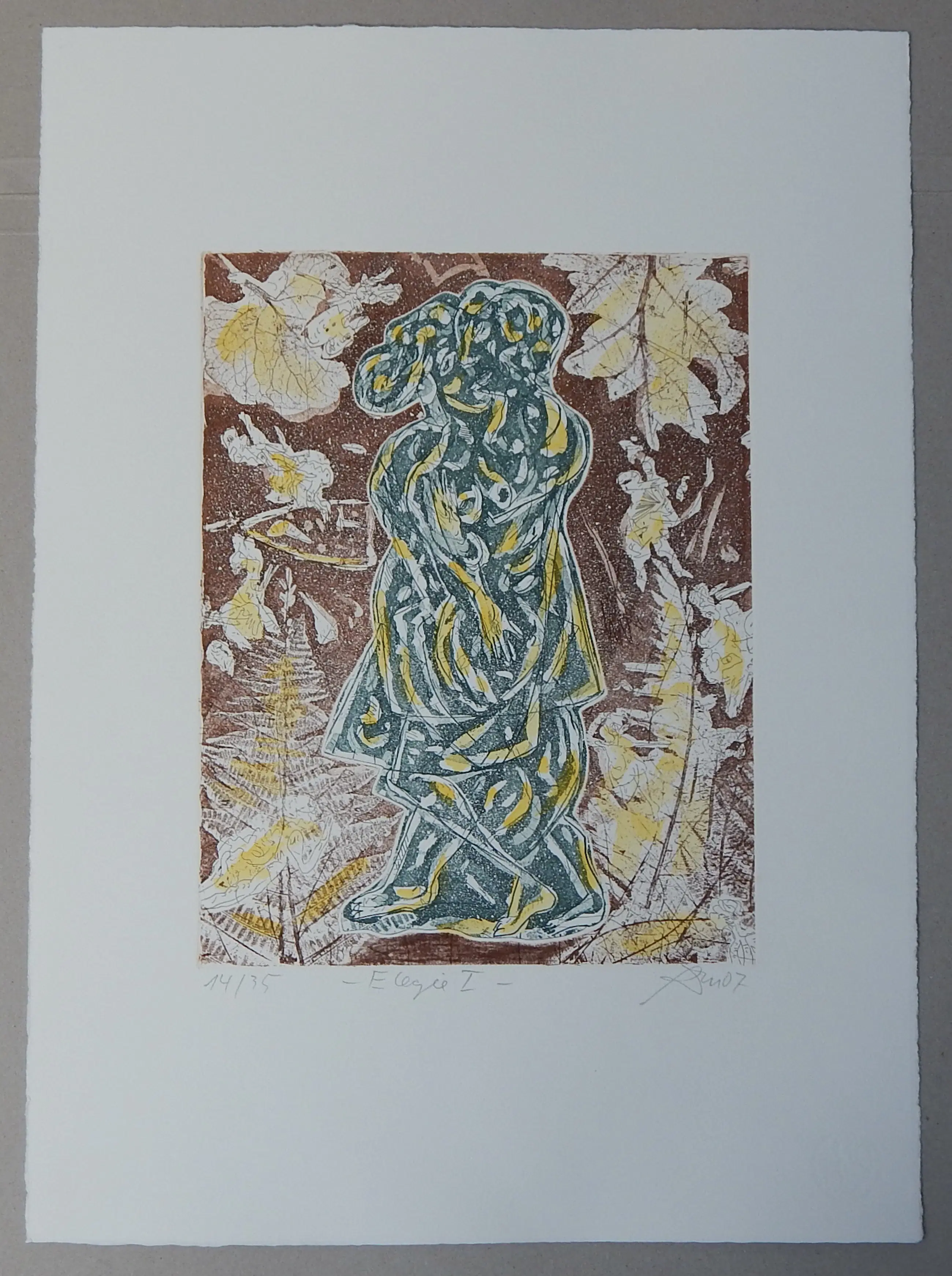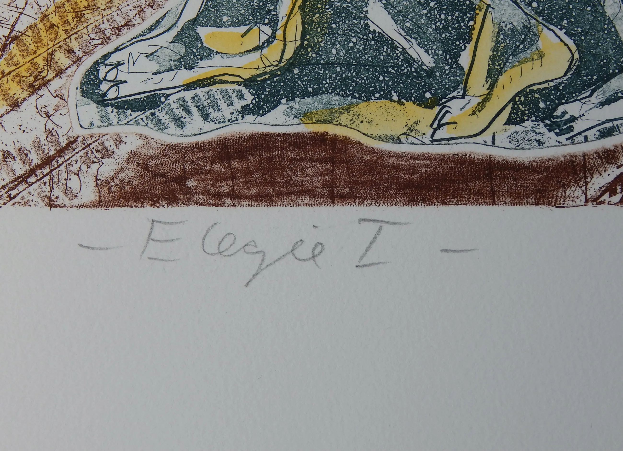 Unieke ets, oplage van slechts 35 exemplaren, gedrukt op Hahnemühle-handgeschept papier en vervolgens met de hand ingekleurd met waterverf. Afmetingen afbeelding: 32 x 24,5 cm op een vel van 54 x 39 cm, genummerd links onder de afbeelding, getiteld in het midden en rechts met de hand gesigneerd en gedateerd in potlood.