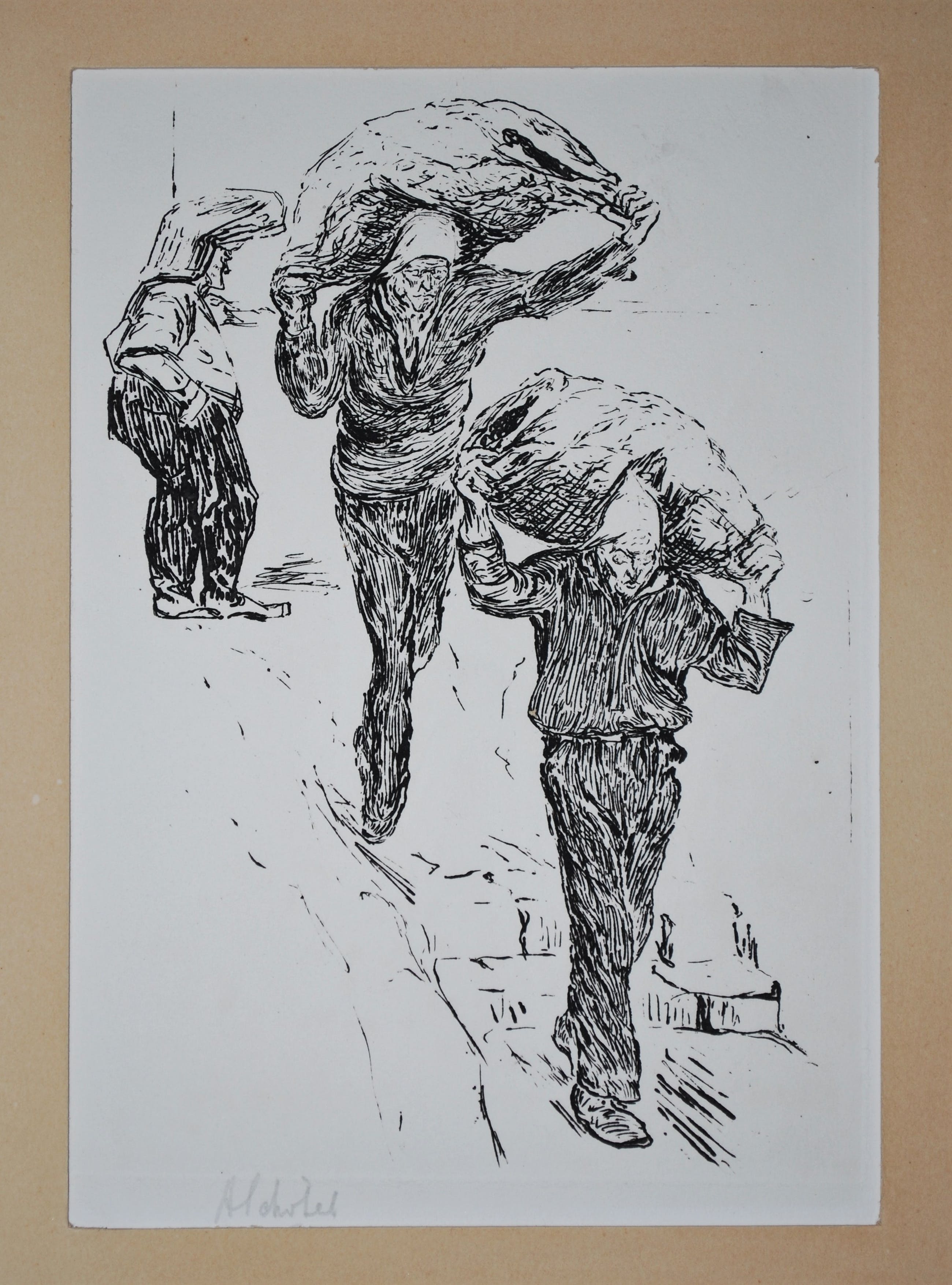 Bladmaat ca 25x20 cm, plaatrand ca 22x15.5 cm. Met potlood l.o. gesigneerd. Oplage niet bekend, mogelijk betreft het een unica.